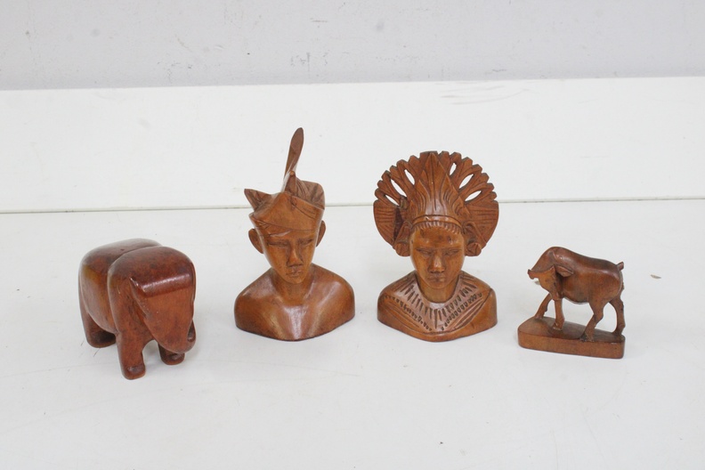 Set van 4 Balinees Houtsnijwerk Beelden