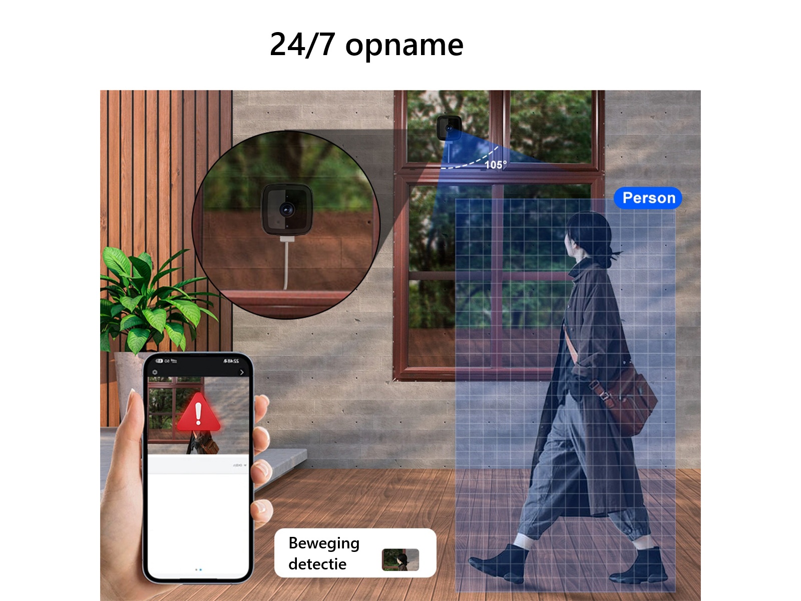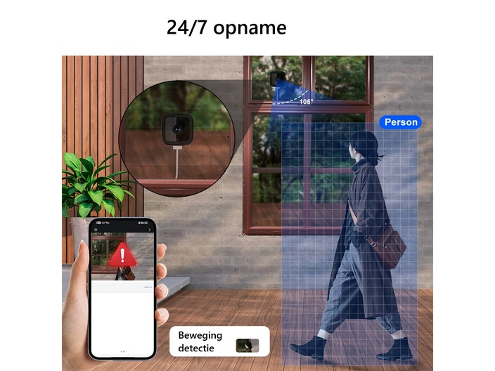 Veilige 24/7 constante opname Bescherm je herinneringen en je huis met onafgebroken opname. Kies tussen lokale opslag op een SD-kaart of veilige cloudopslag, beide ondersteund door strikte privacy maatregelen.