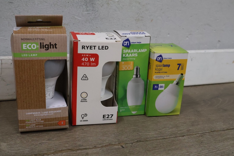 Mix van ledlampen, spaarlampen en Halogeenlampen