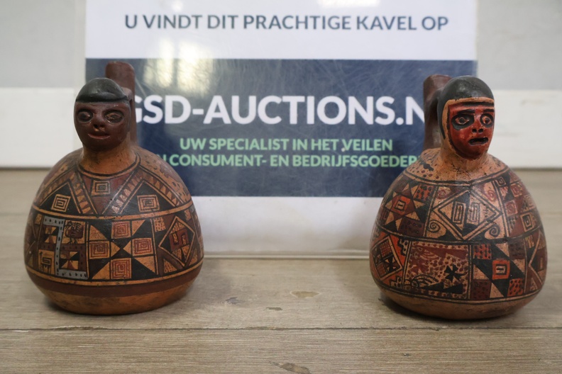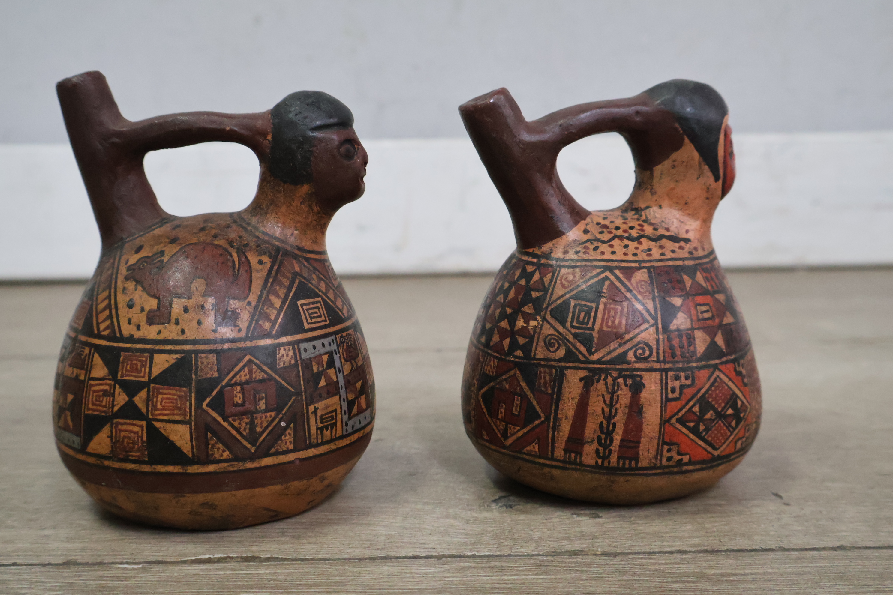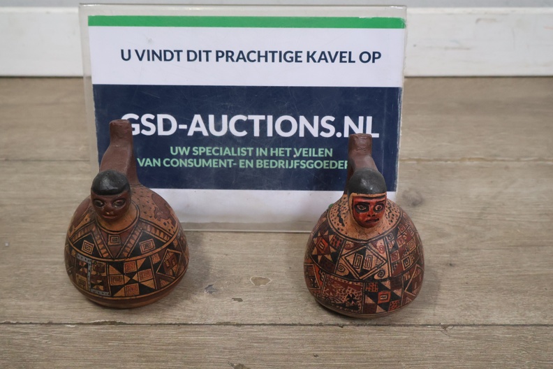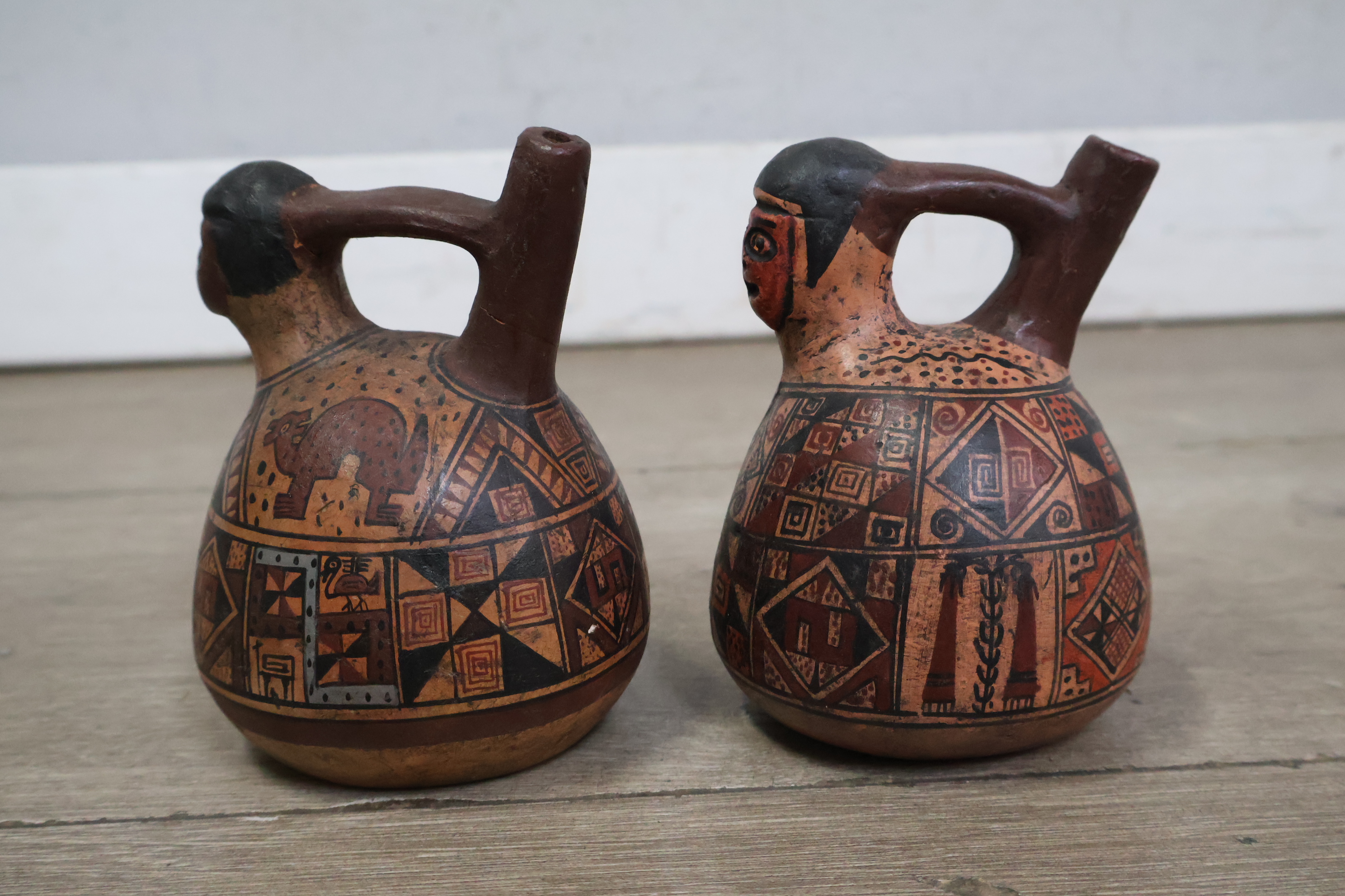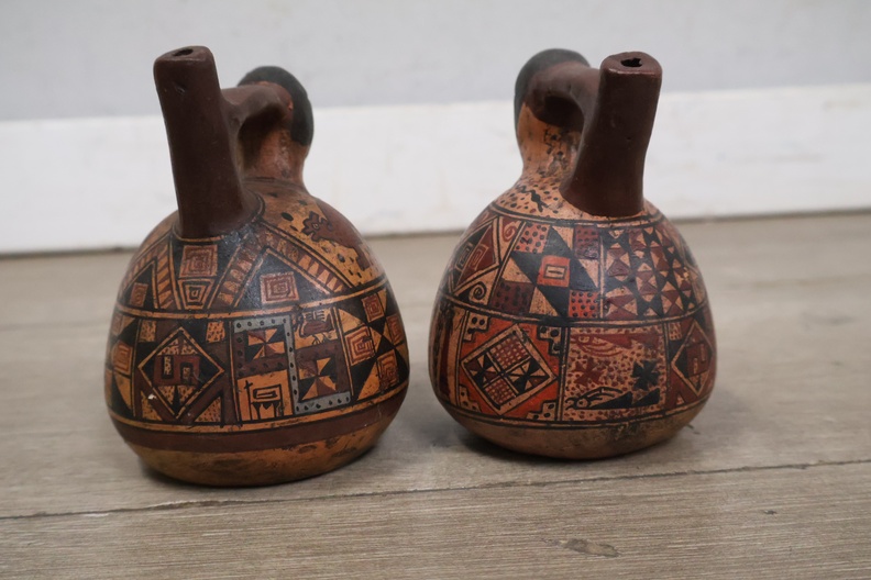 Handgeschilderde aardewerk kruiken uit Peru 2 stuks