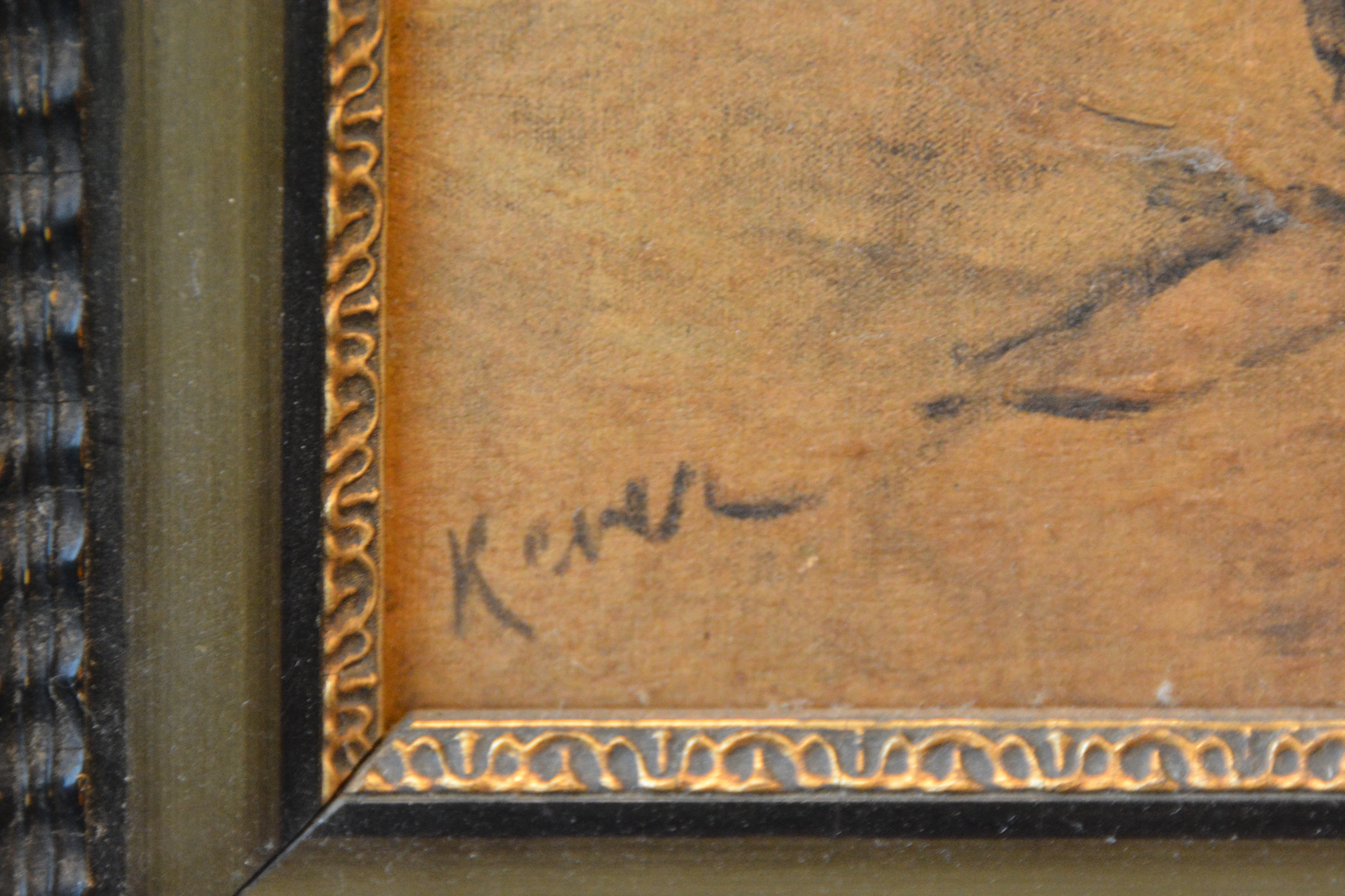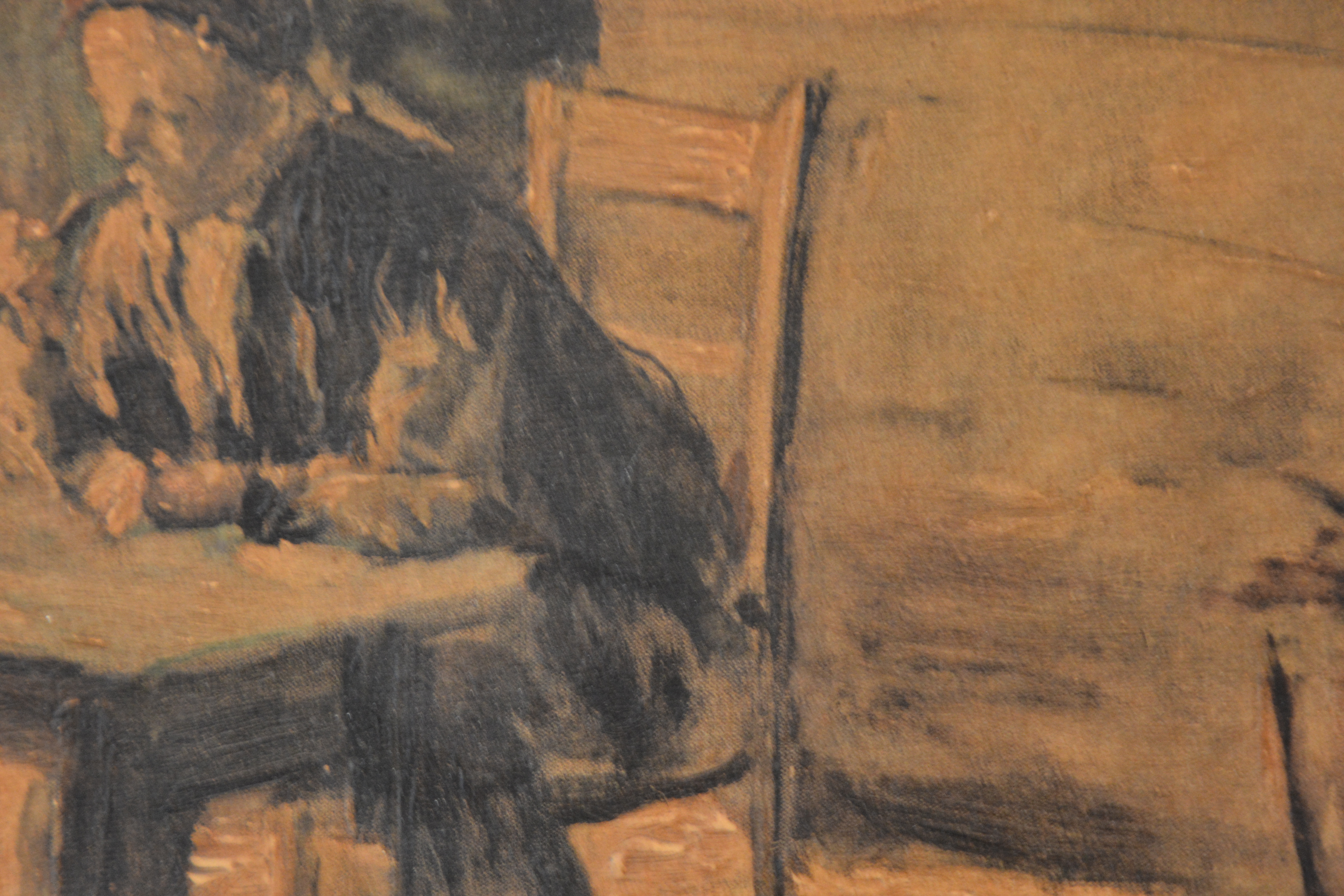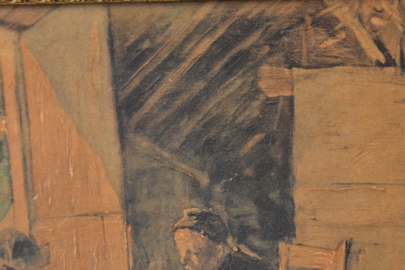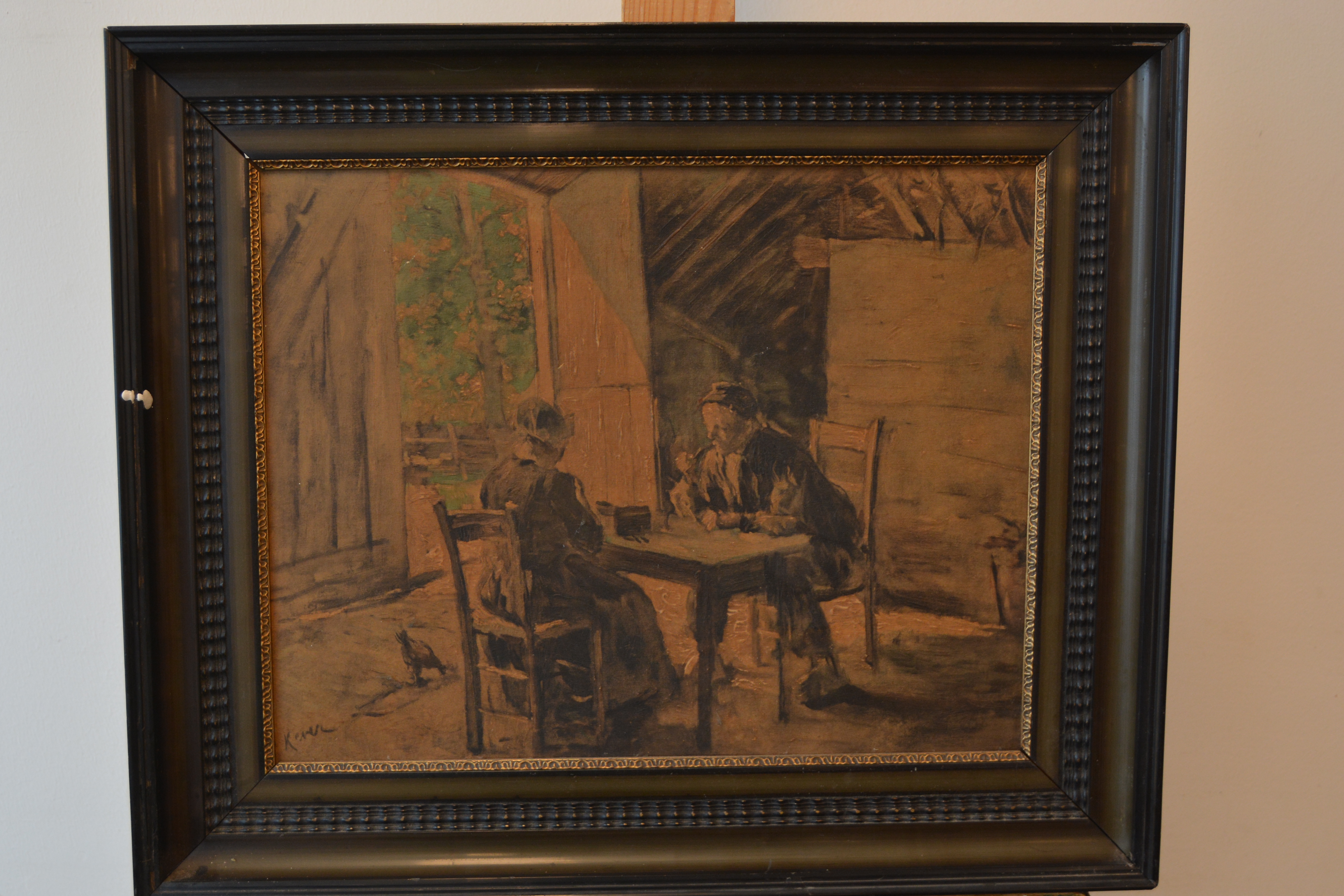 Ingebrand op paneel. Boerenechtpaar aan tafel zittend. Jacob Simon Hendrik 'Hein' Kever was een Nederlands kunstschilder. Hij wordt tot de Larense School gerekend. Geboren: 19 juni 1854, Amsterdam overleden: 29 april 1922, Laren
