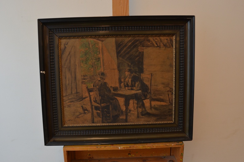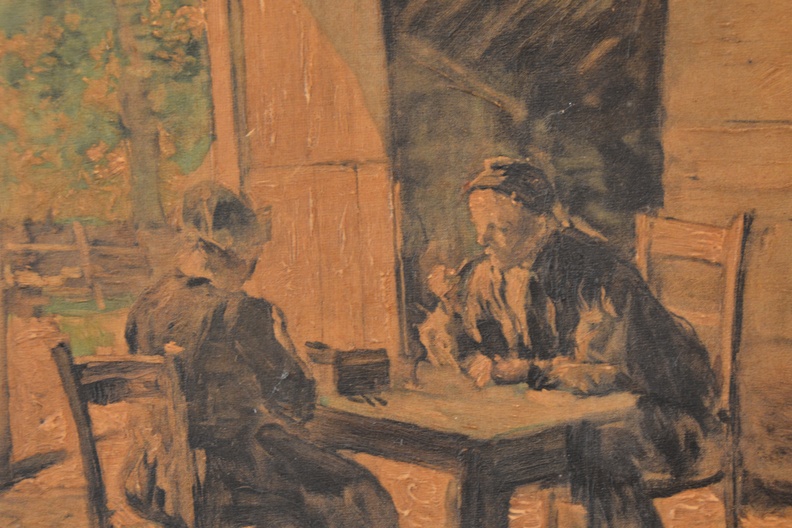 Ingebrand schilderij van Hein Kever: Boerenechtpaar aan tafe