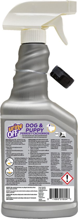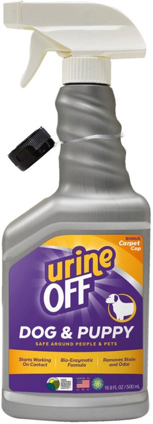 Urine Off Dog & Puppy Formula is een door dierenartsen aanbevolen product voor het verwijderen van urinegeur en vlekken van honden. Urine Off Dog & Puppy Formula maakt gebruik van bio-enzymatische technologie om de urinevlekken en -geuren van jouw hond of puppy permanent van vrijwel elk oppervlak te verwijderen. De combinatie van micro-organismen en hun enzymen in onze niet-pathogene bacteriën werkt samen om het urinezuur af te breken dat het scherpe aroma van urine produceert en het ureum dat aan het oppervlak kleeft, waardoor alle componenten van de urine effectief worden verwijderd, wanneer het volgens de instructies wordt gebruikt. Urine Off is een door de USDA gecertificeerd biologisch product en heeft het keurmerk van het Carpet and Rug Institute. Urine Off is veilig te gebruiken in de buurt van huisdieren en mensen.