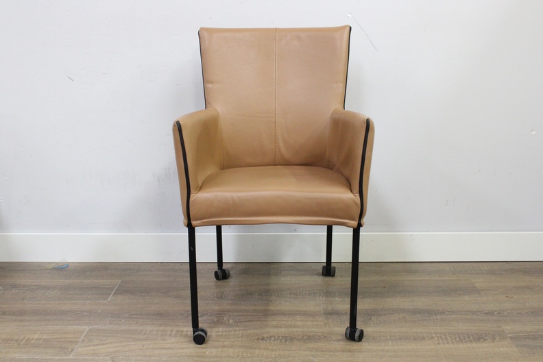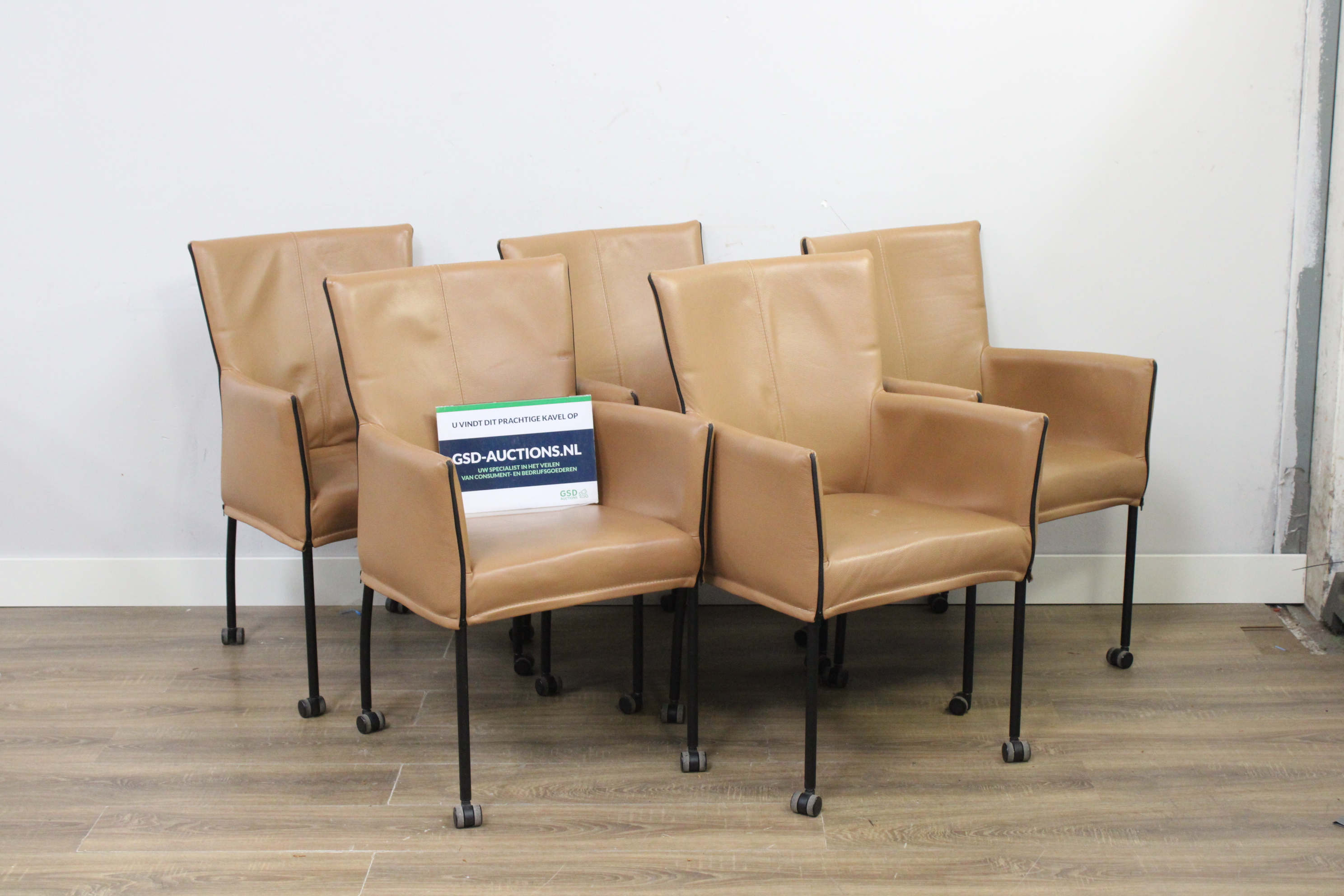 Set van 5 Bruin Leren Goossens Funk Eetkamerstoelen''