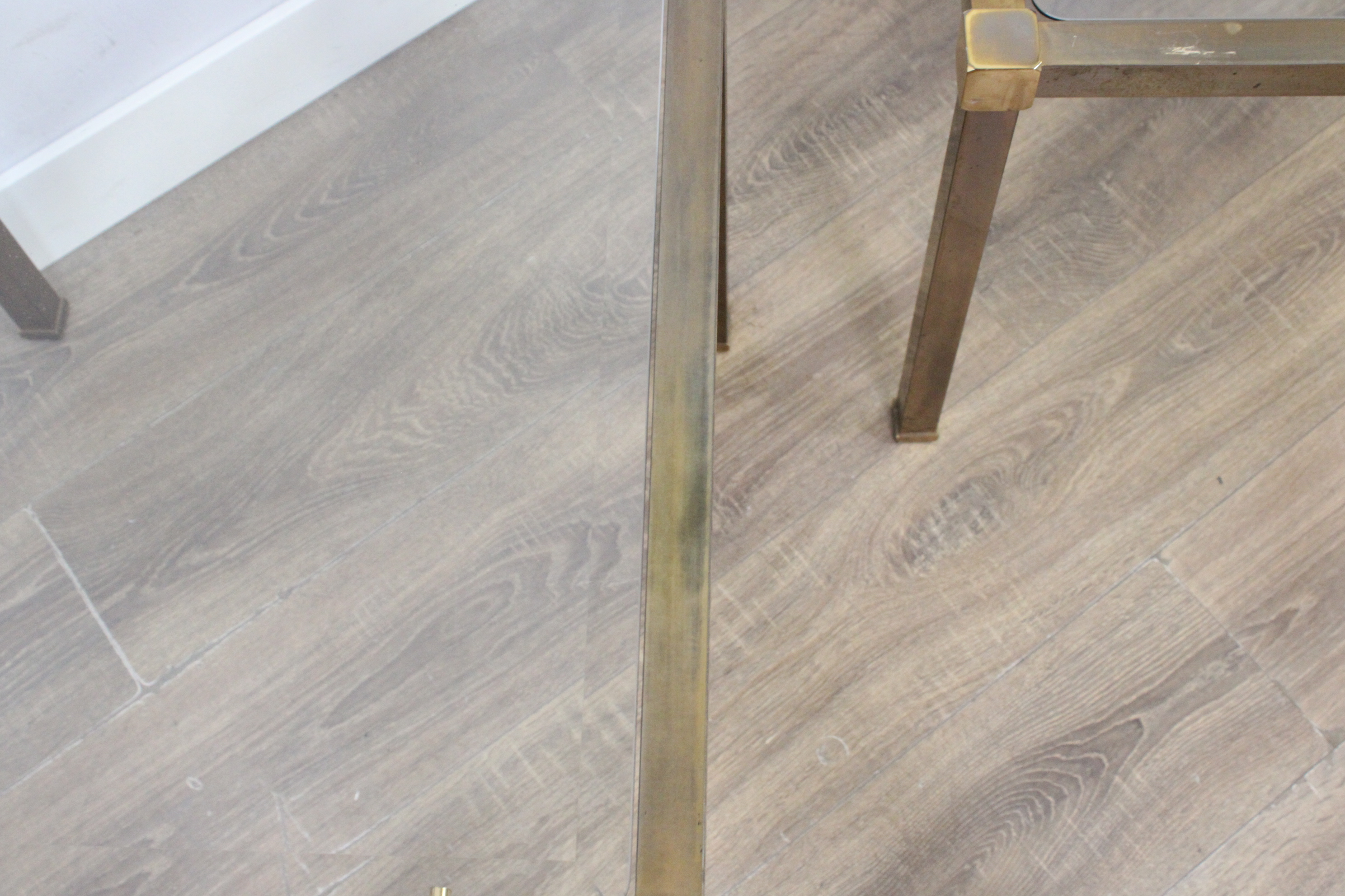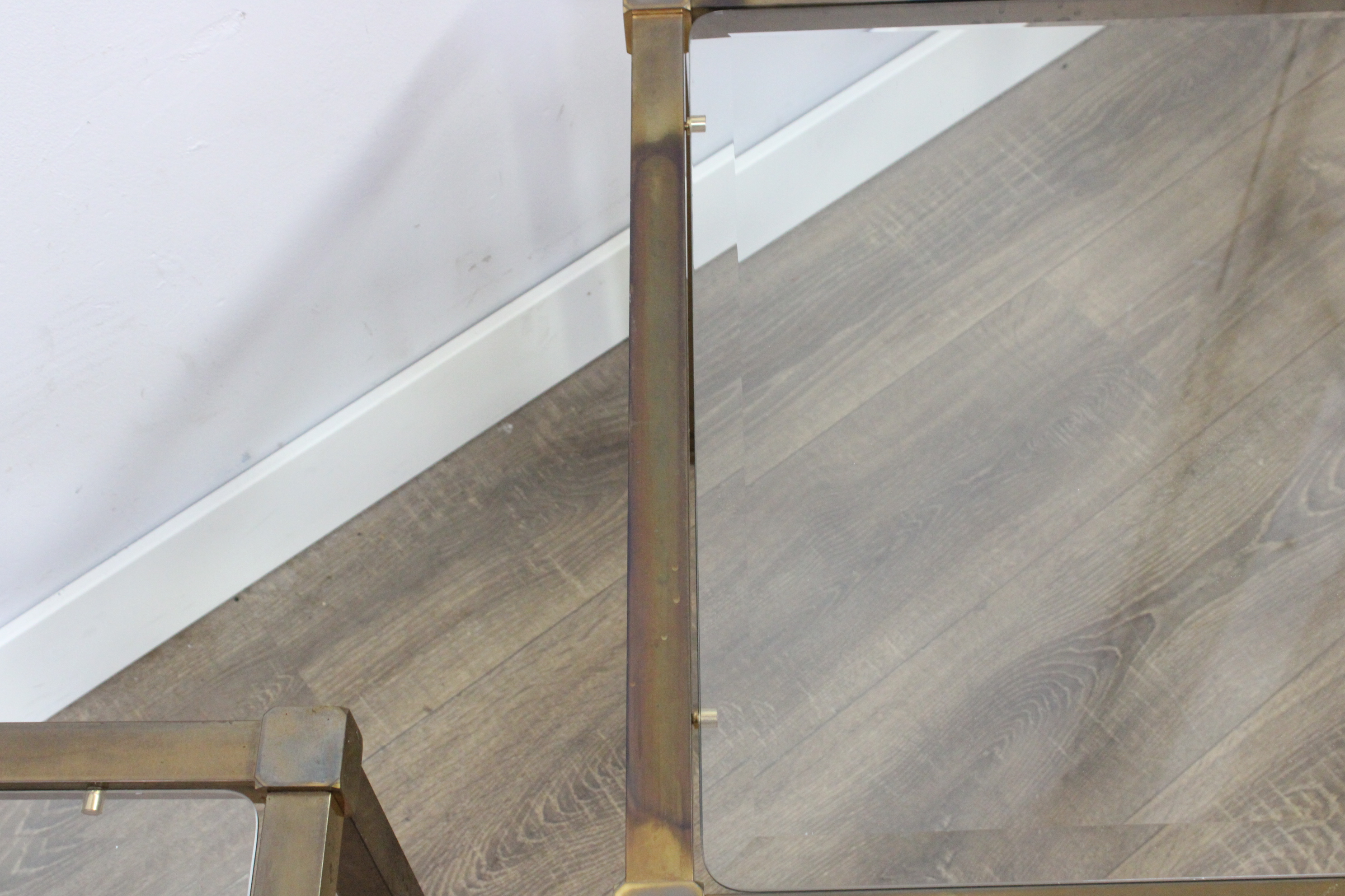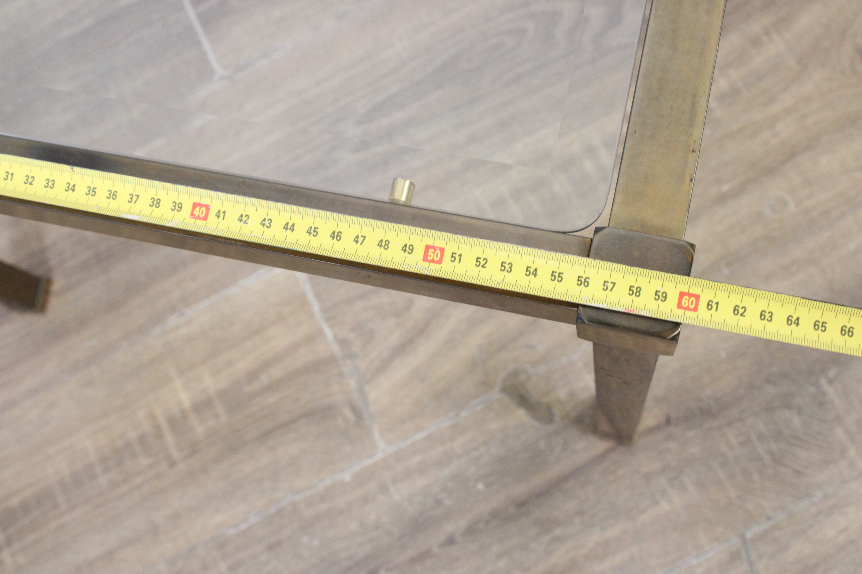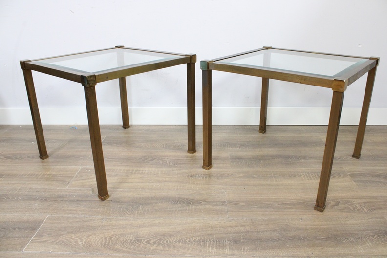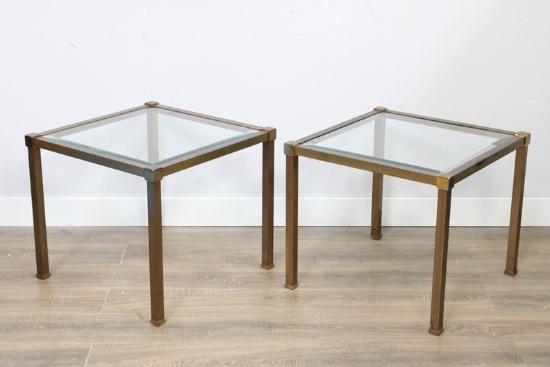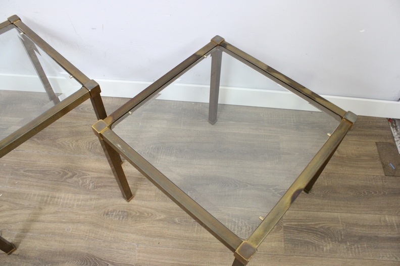 Set van 2 Vintage Metalen Salontafels met Glazen Blad''