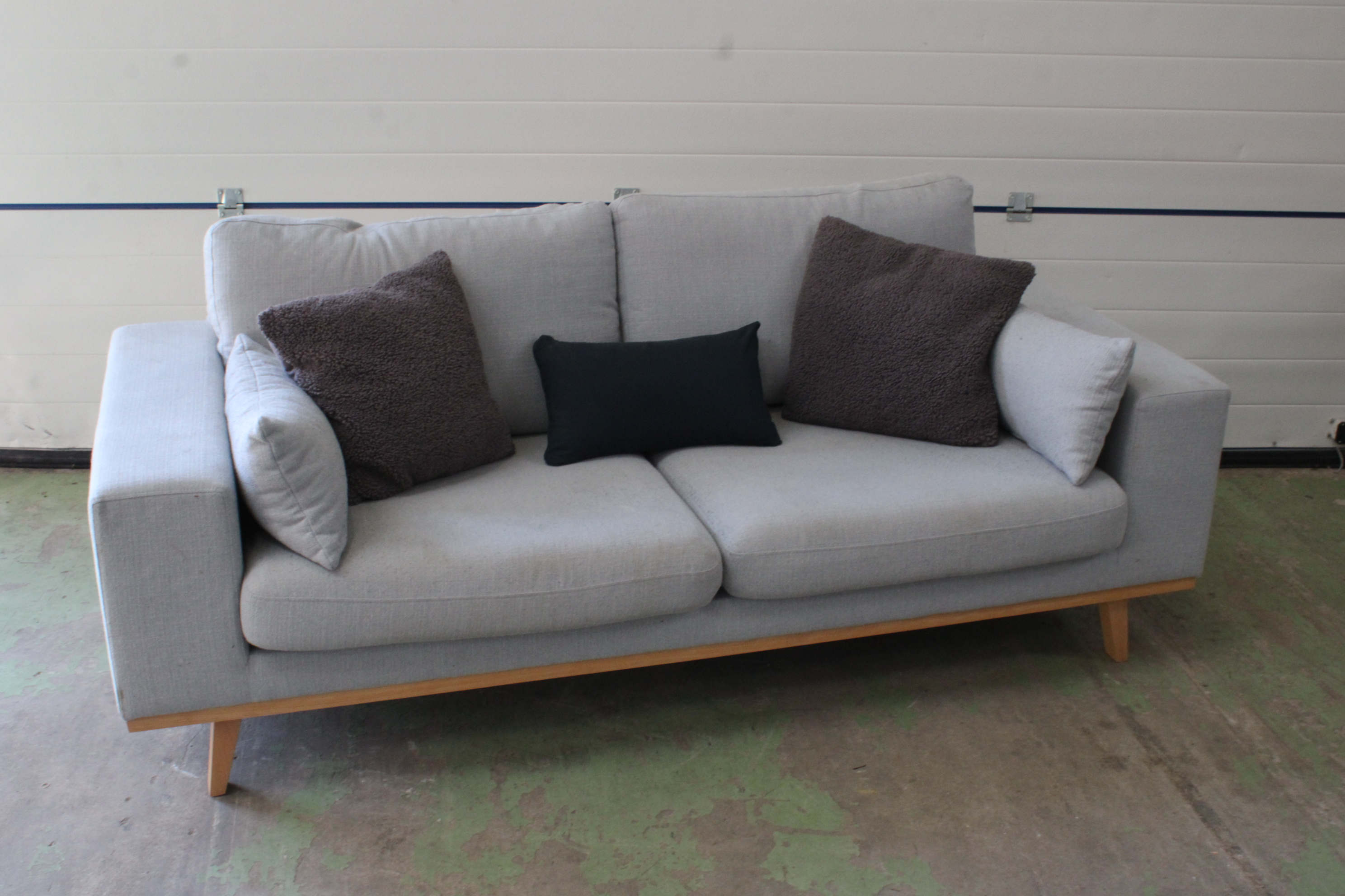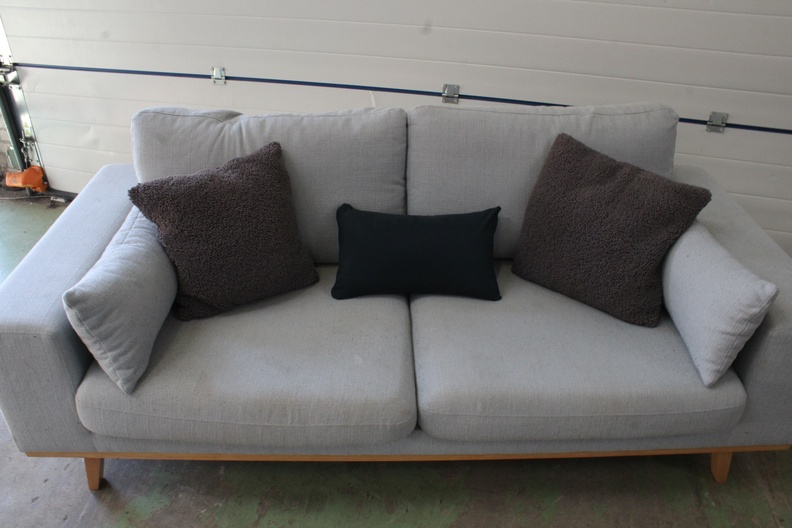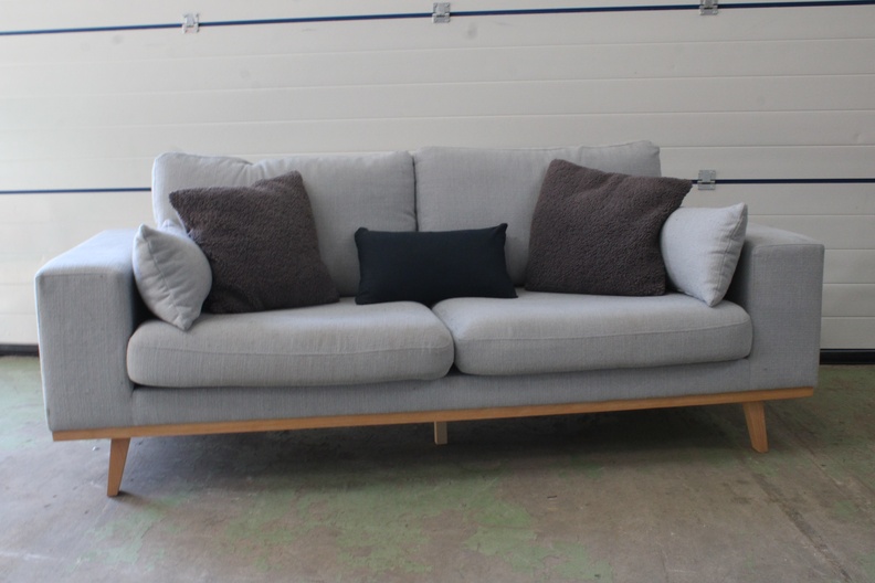 Grijs Gestoffeerde 2-Zitsbank met Houten Onderstel''