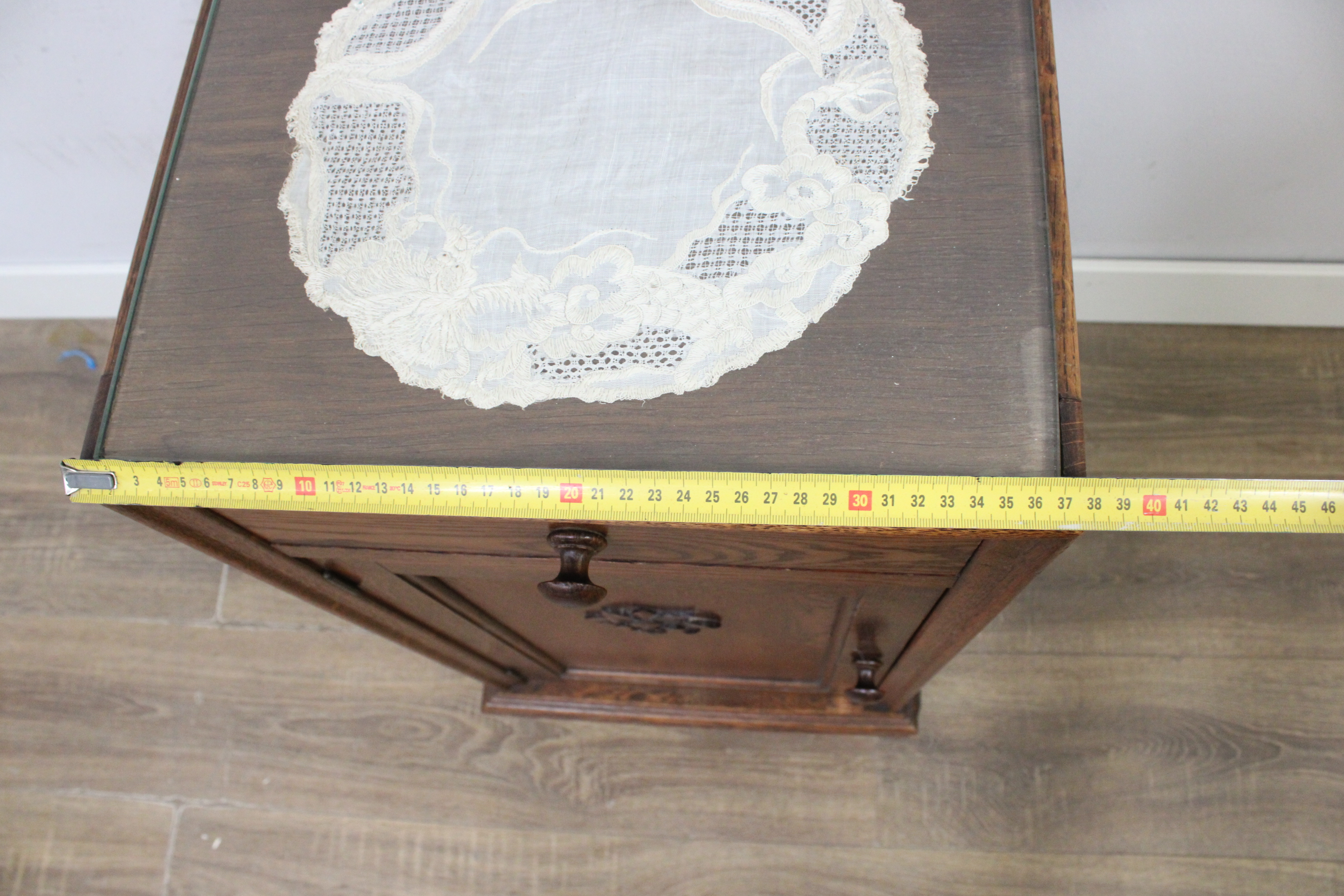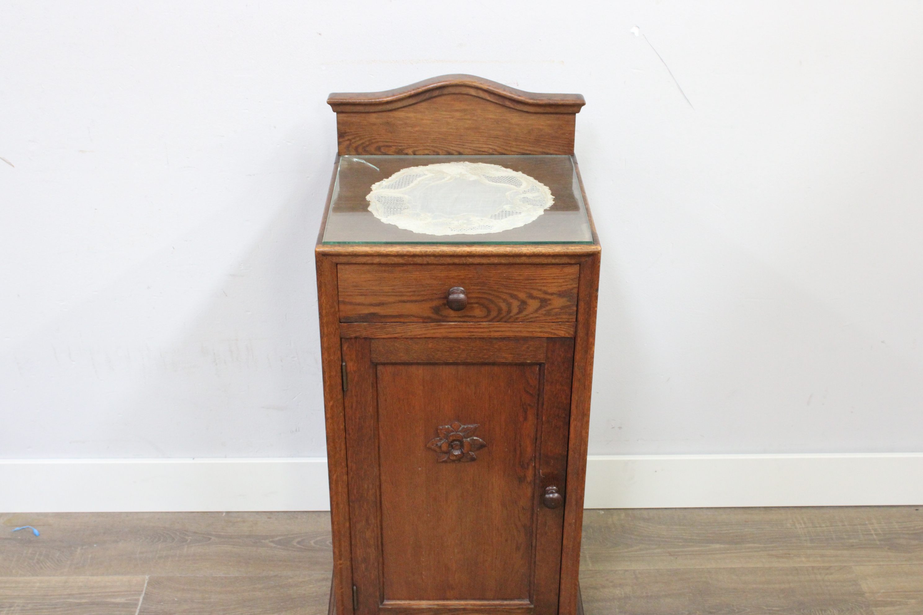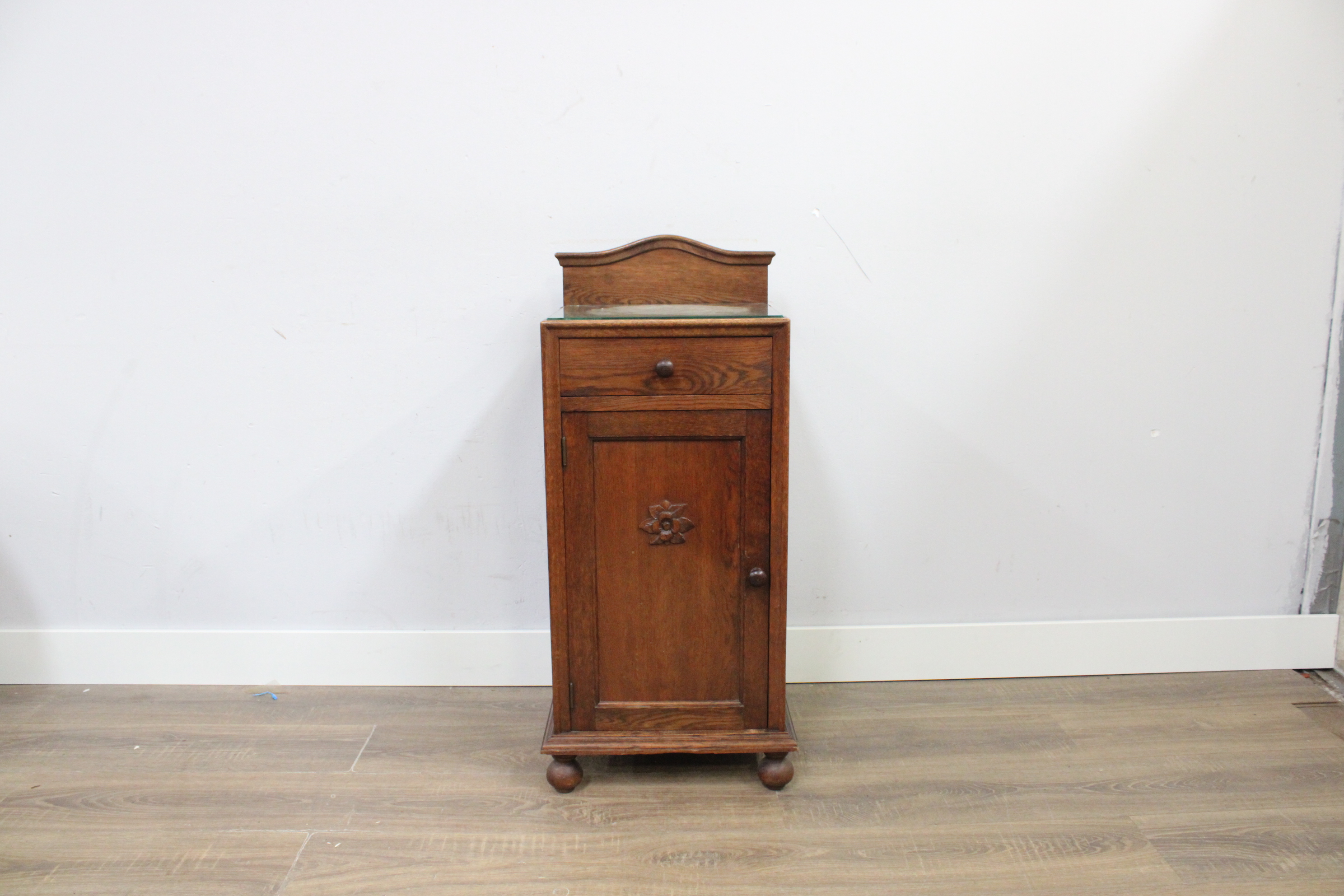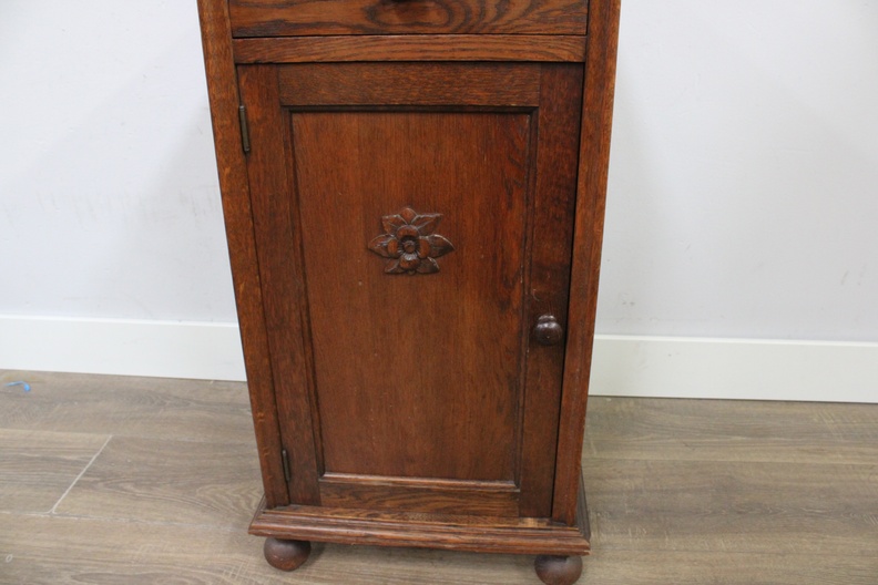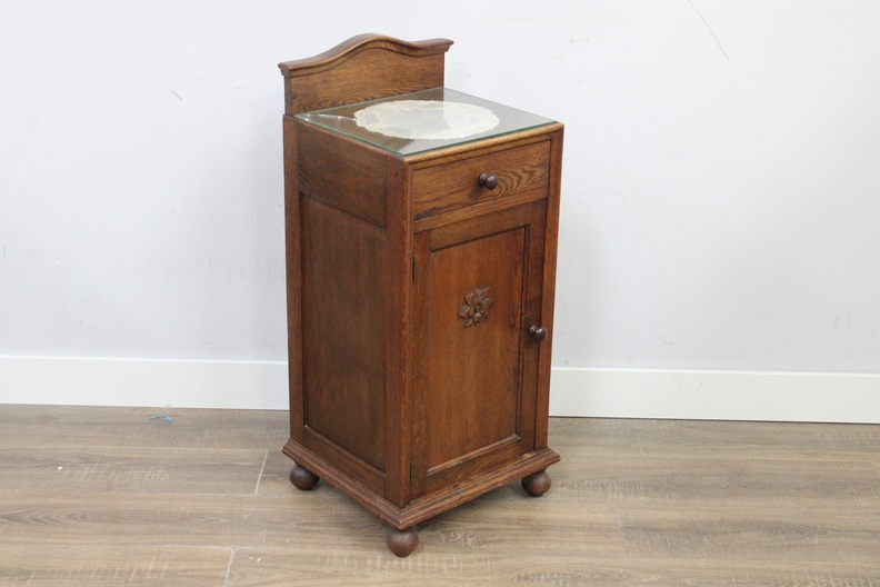 Antiek Eikenhouten Nachtkastje met Glazen Blad''