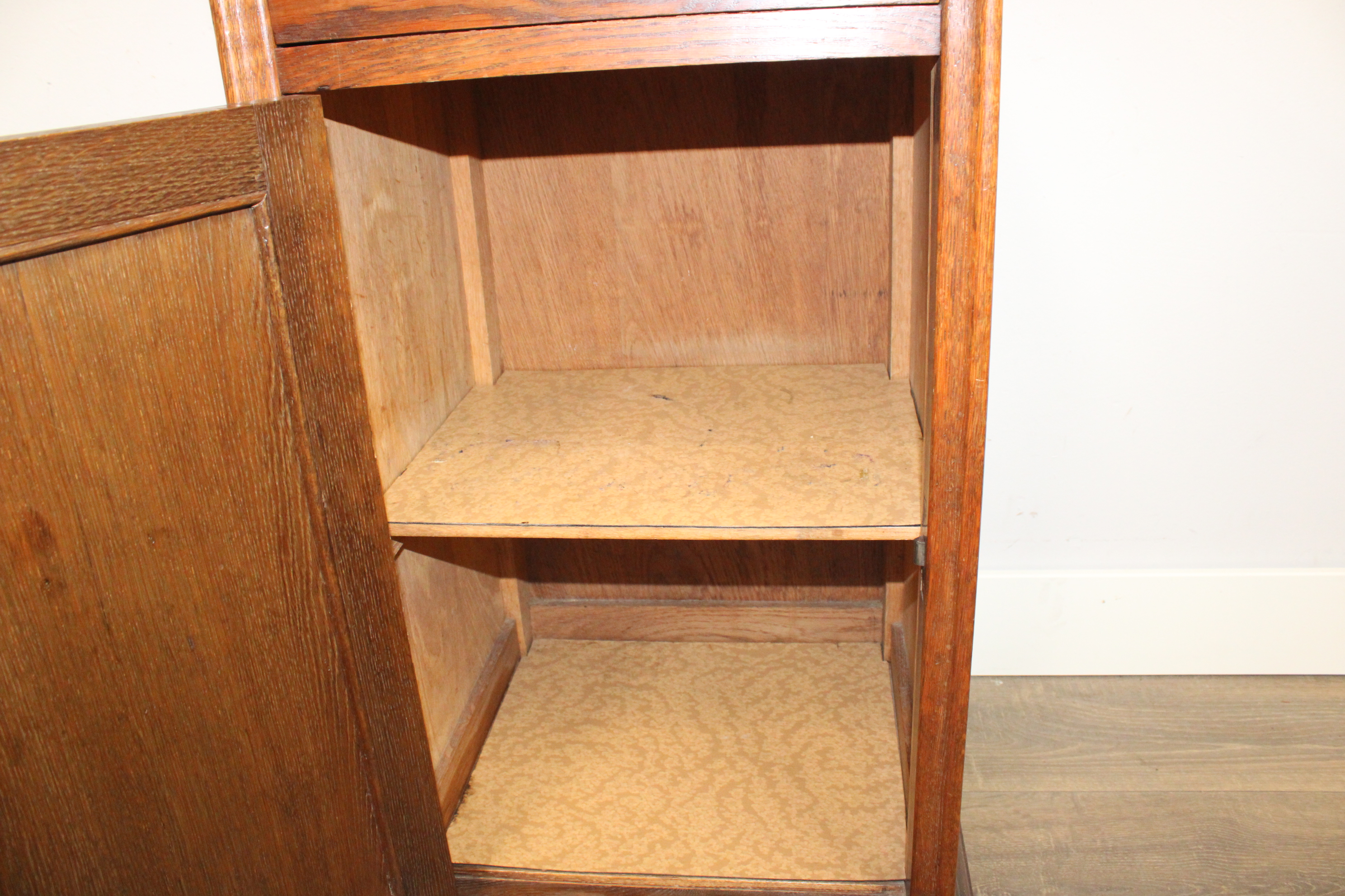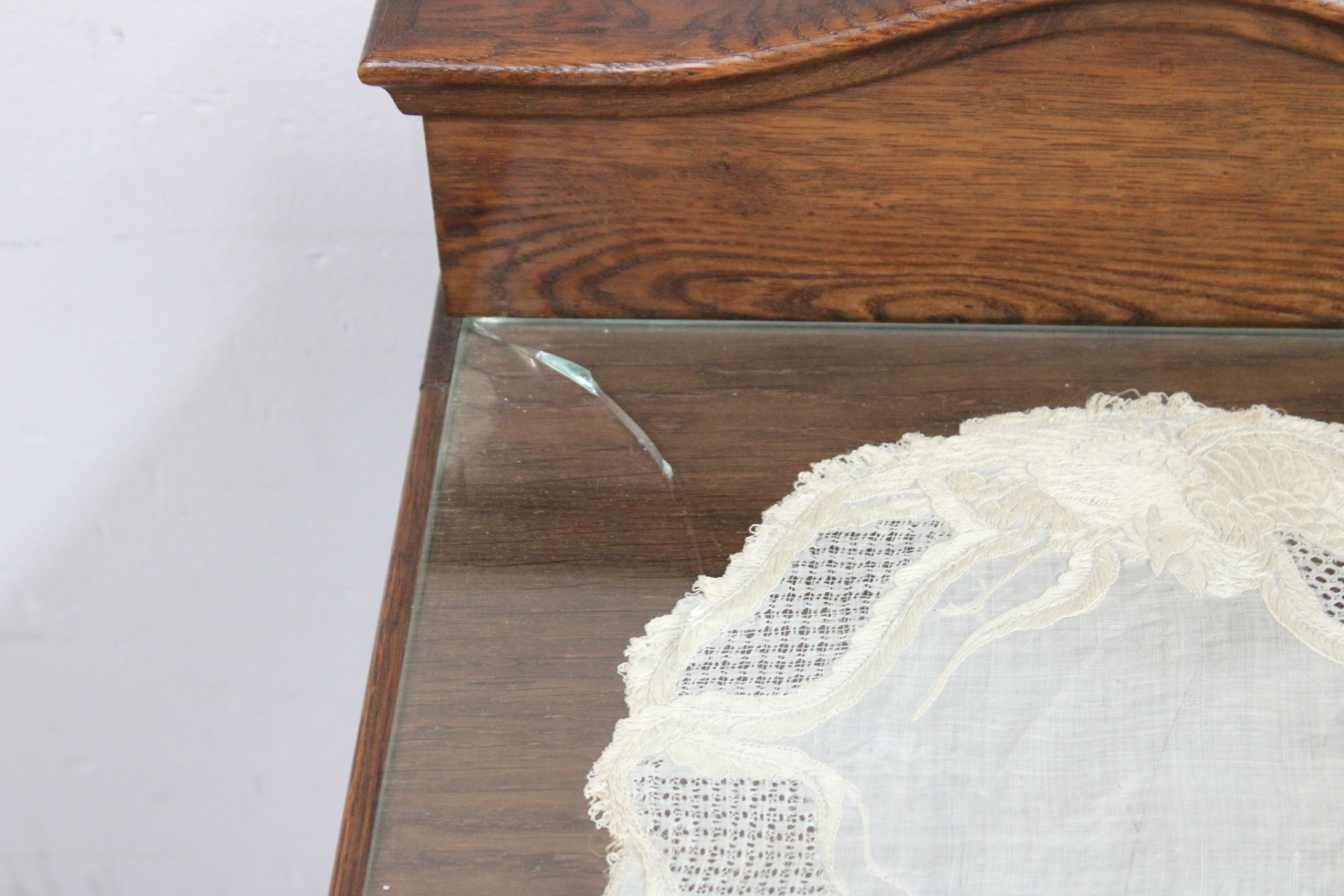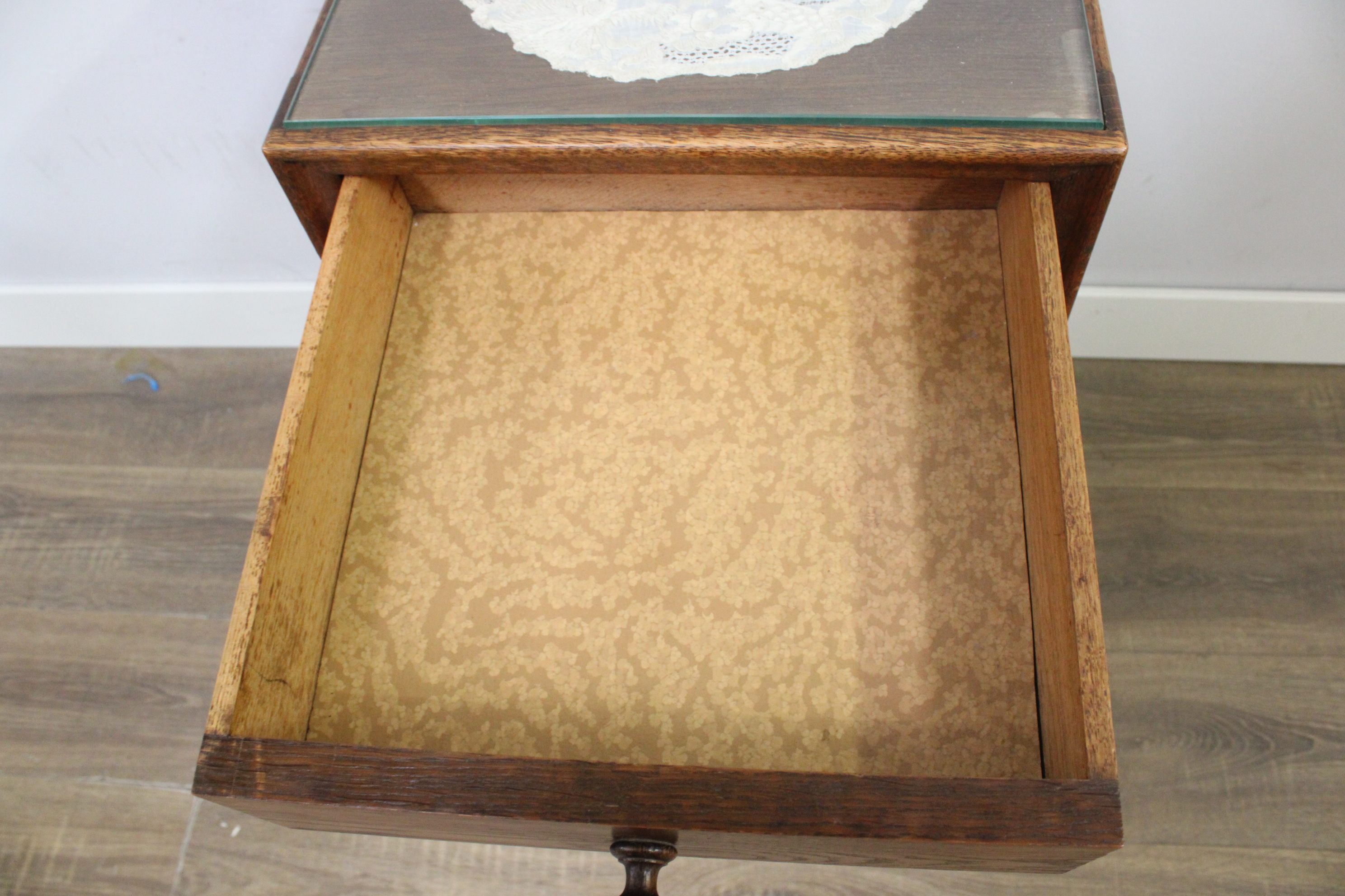 Antiek Eikenhouten Nachtkastje met Glazen Blad''