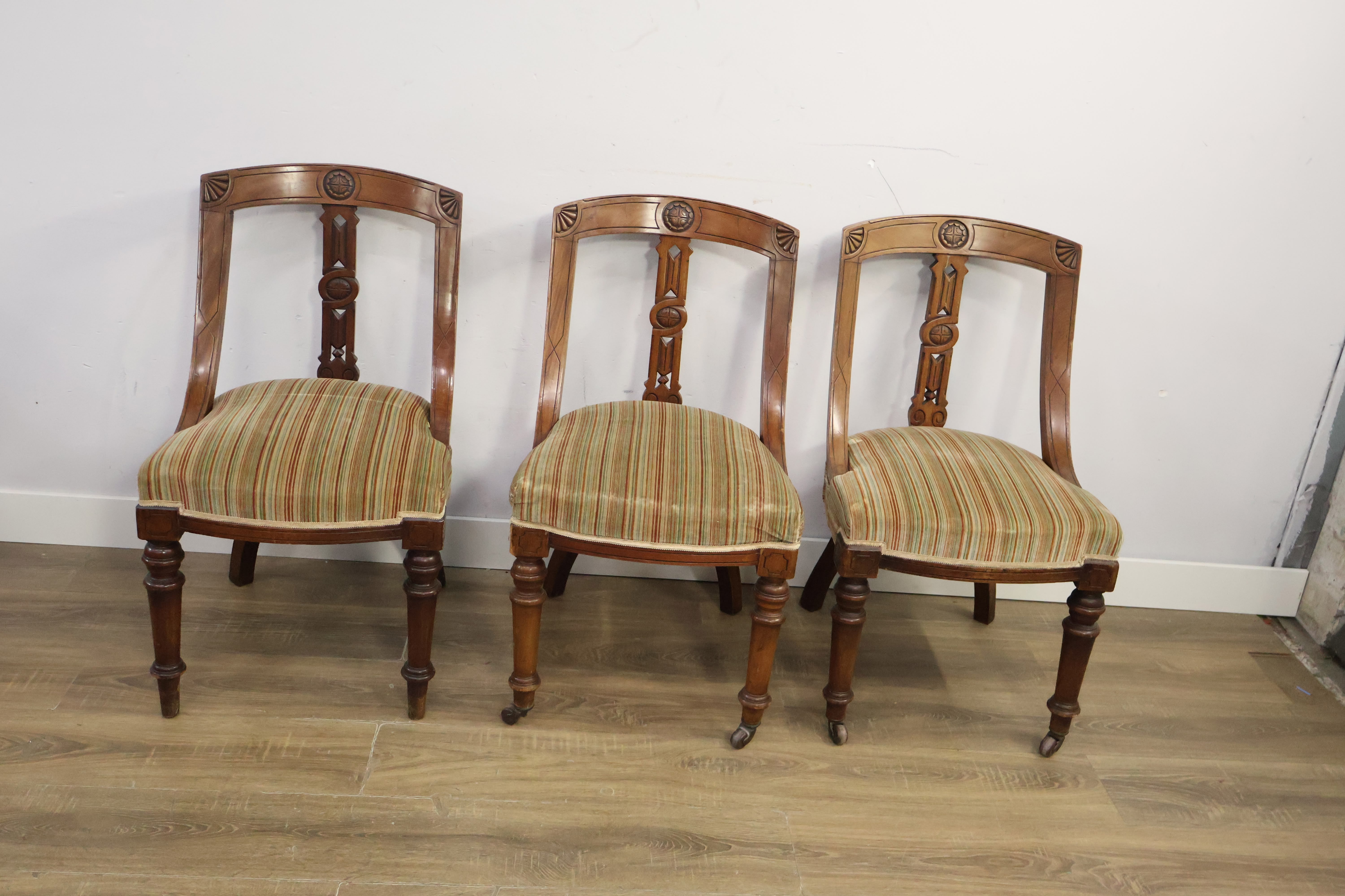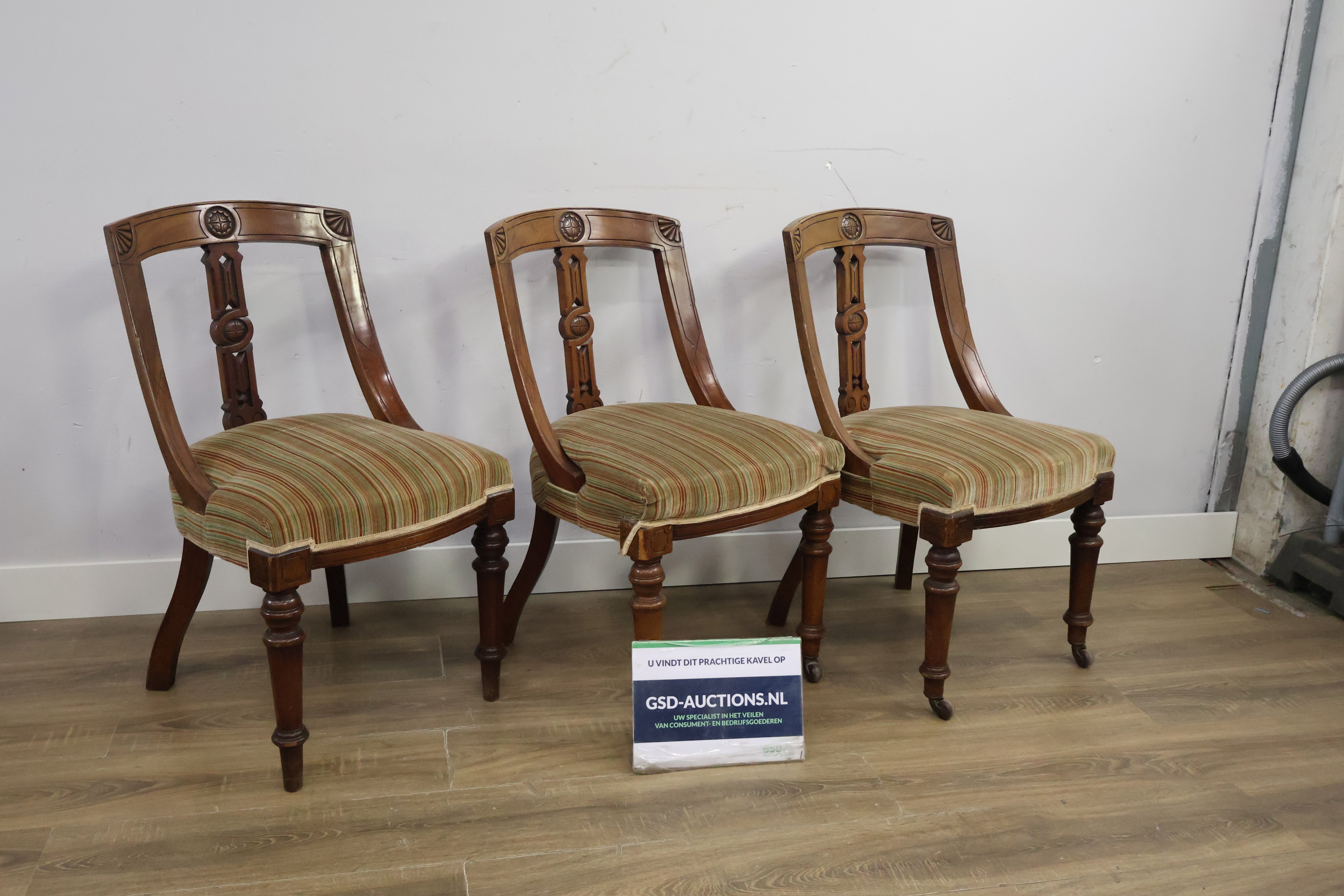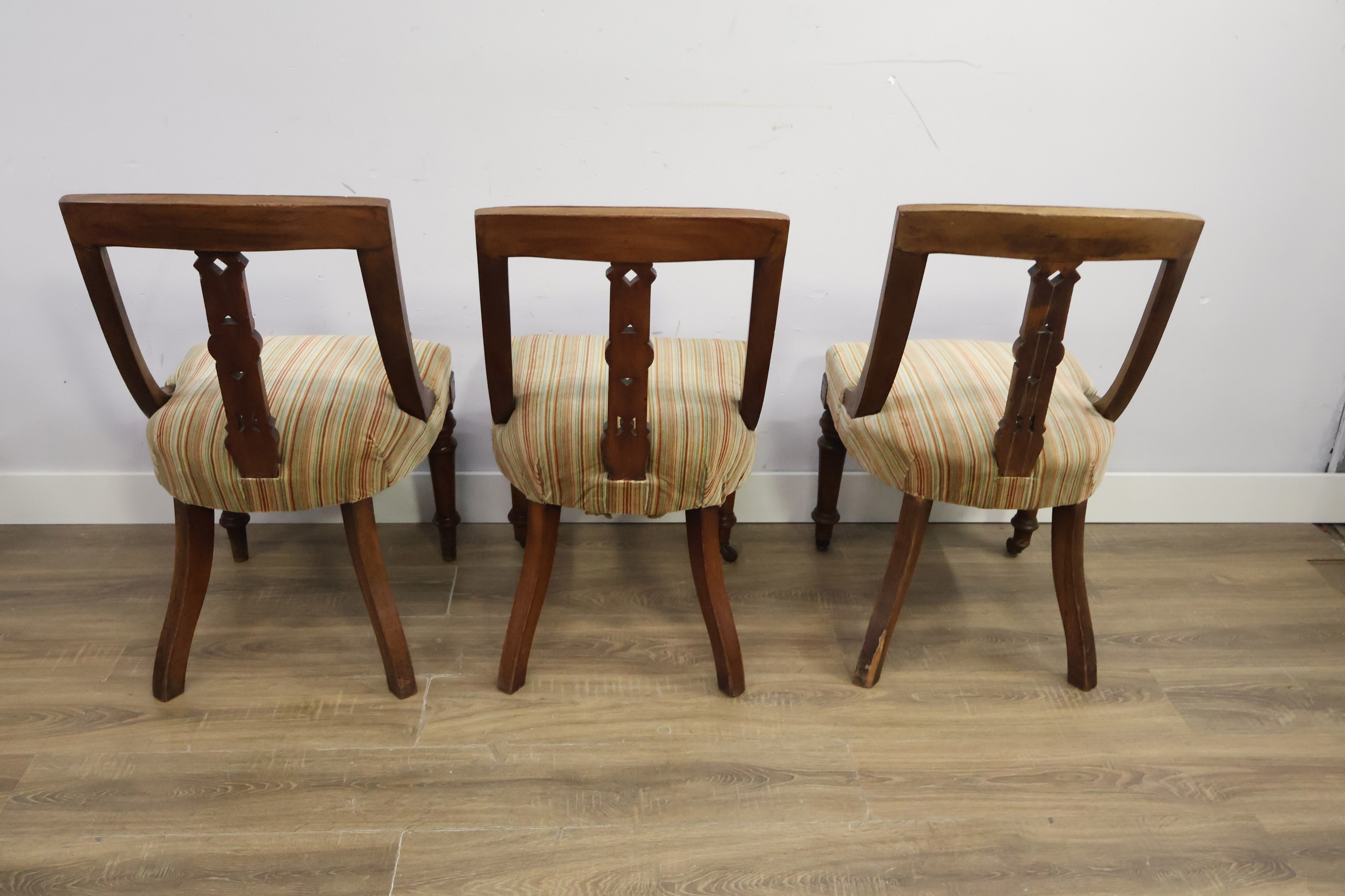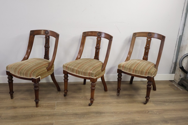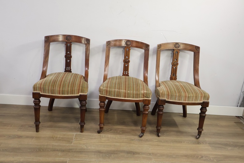 Set van 3 Antiek Victoriaanse Eetkamerstoelen