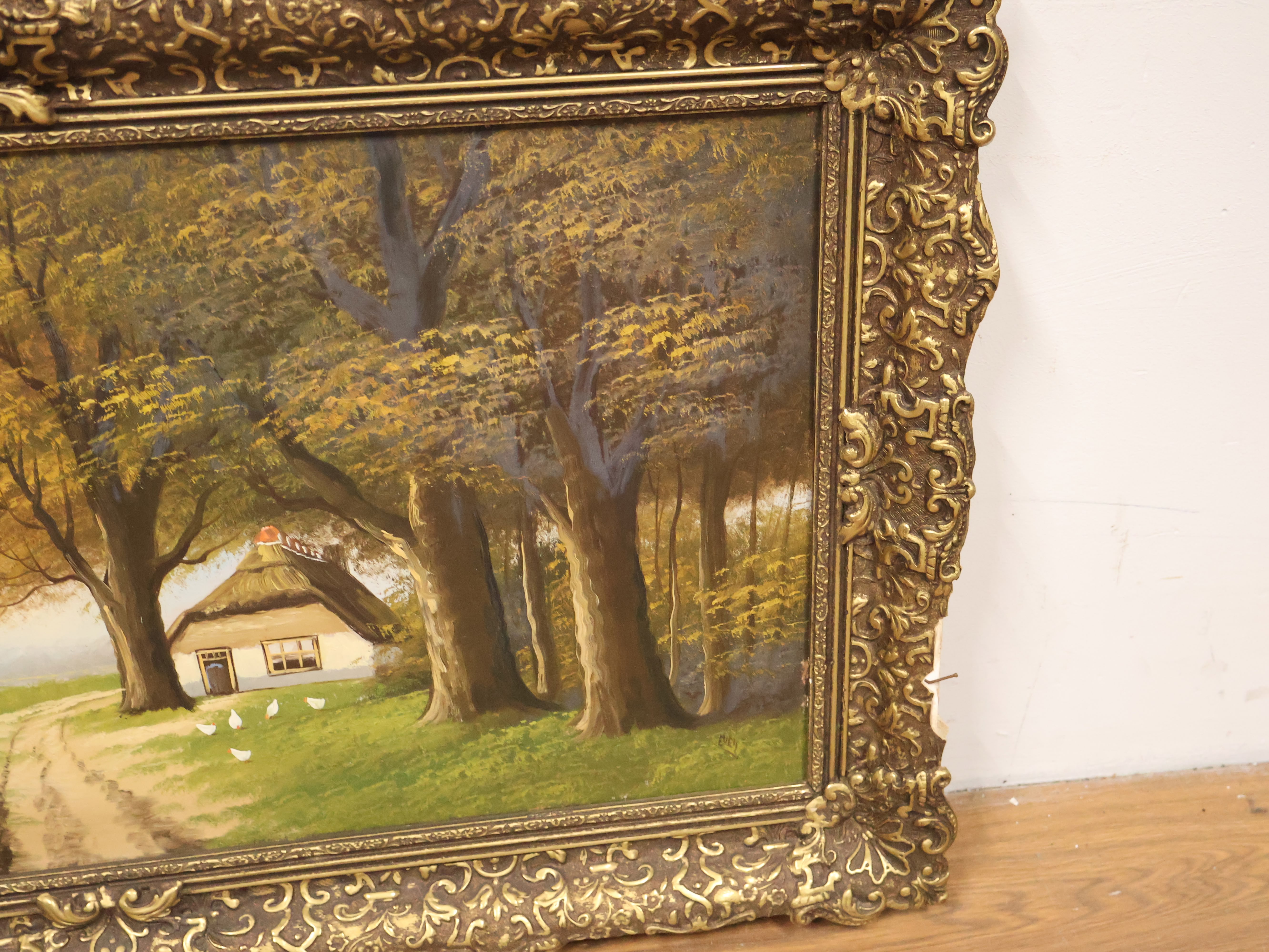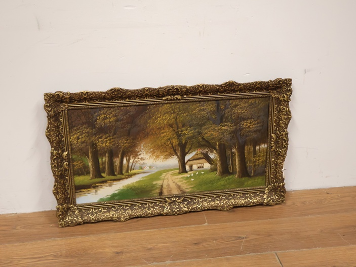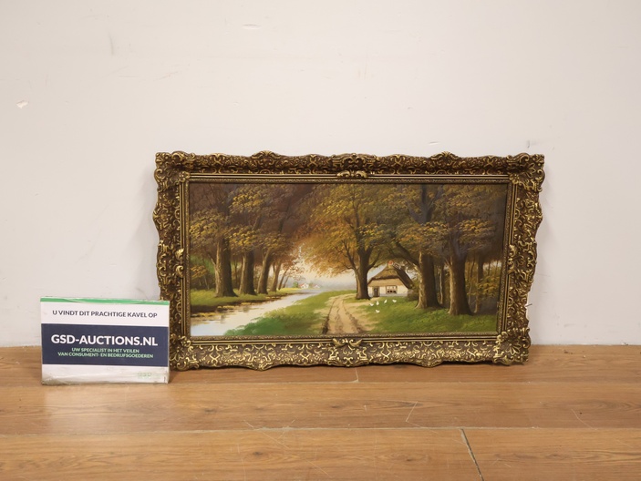 Olieverf op Paneel - Bos Aanzicht - In Keurige Lijst