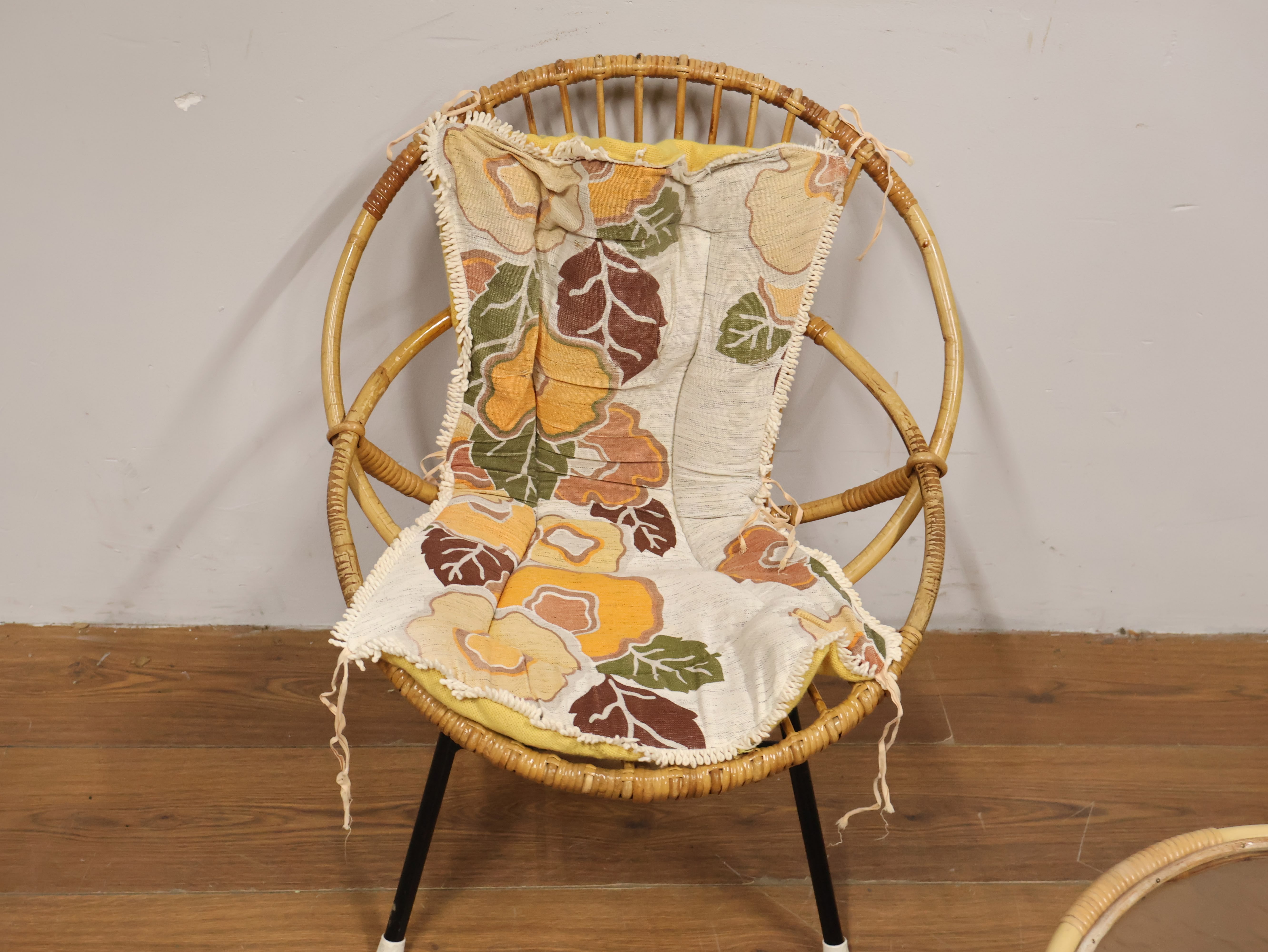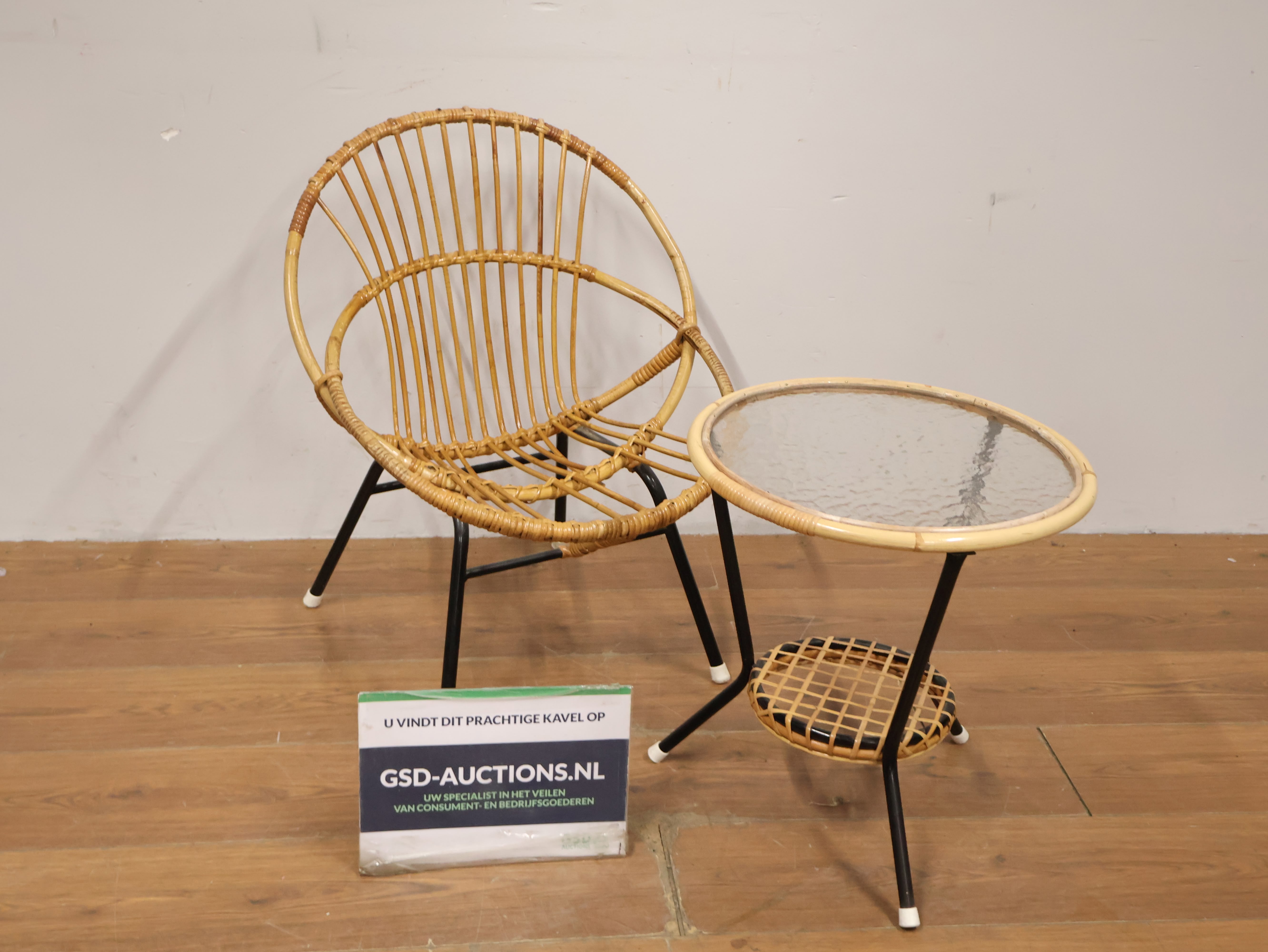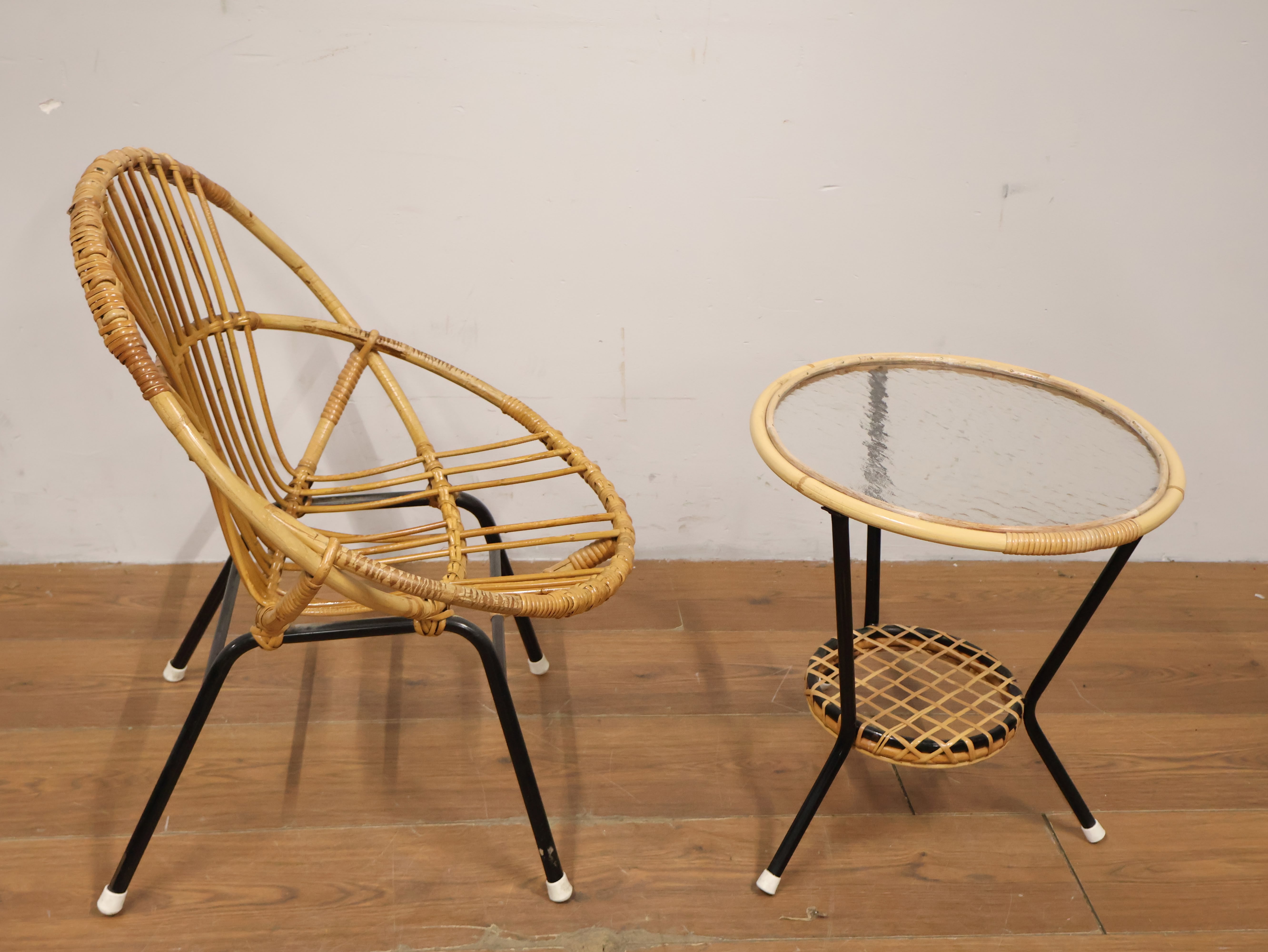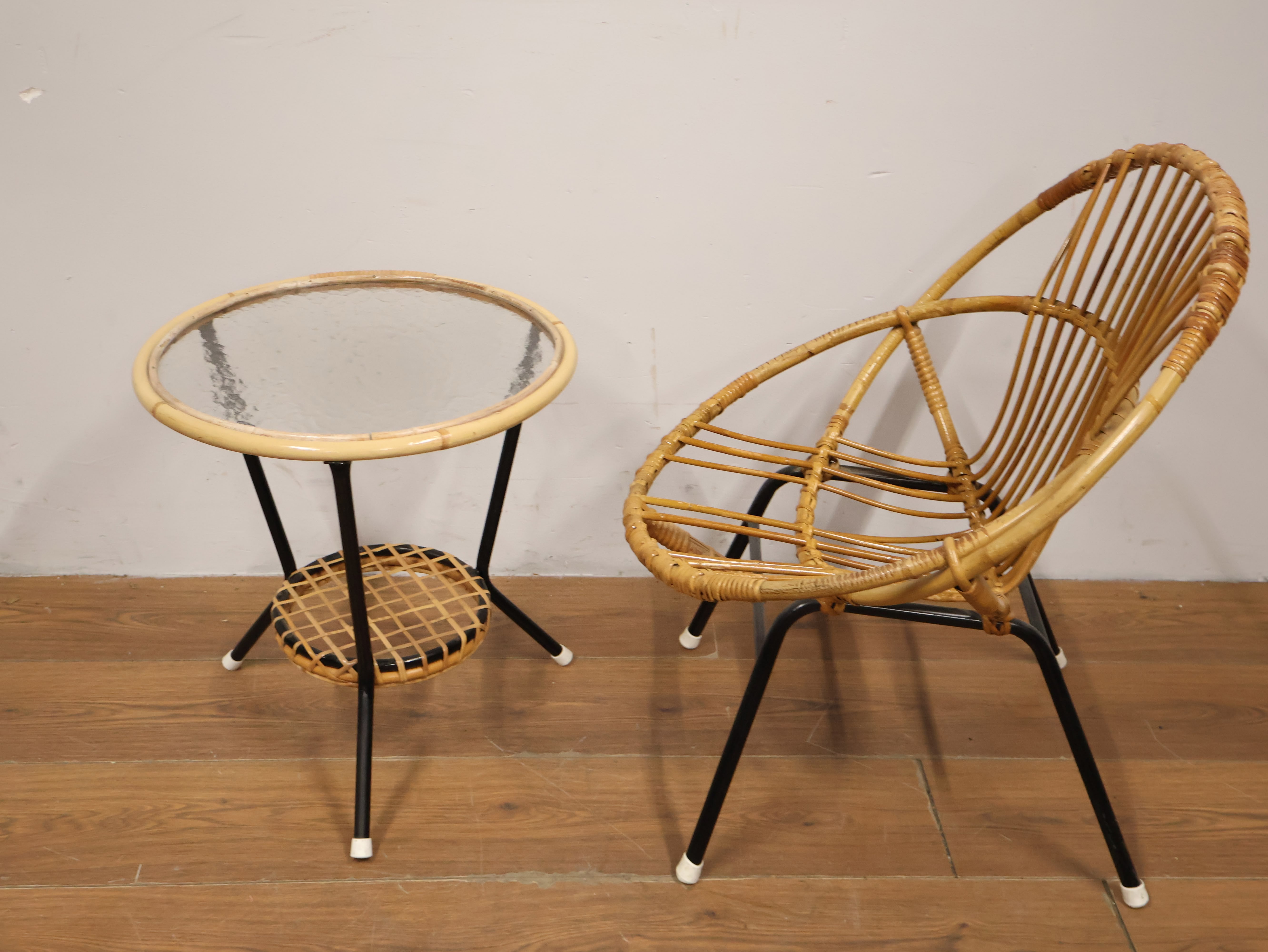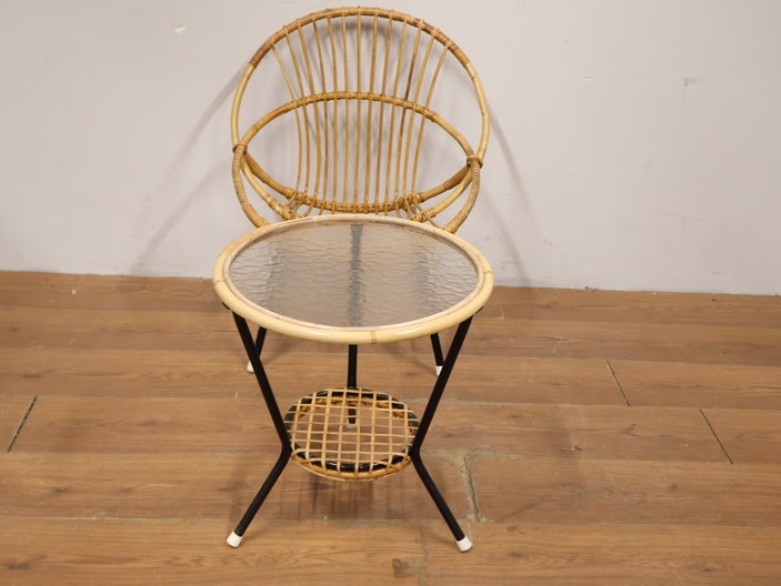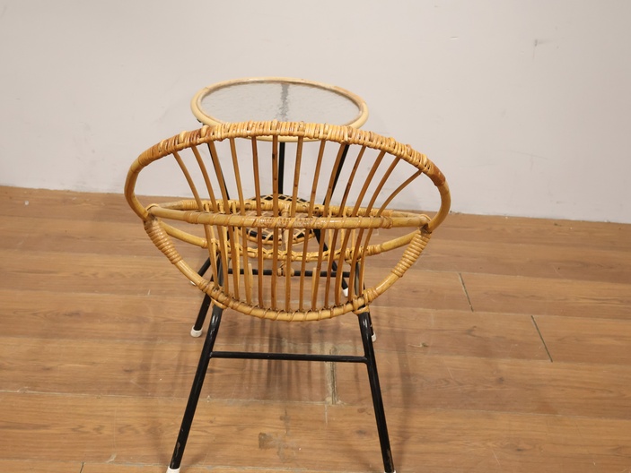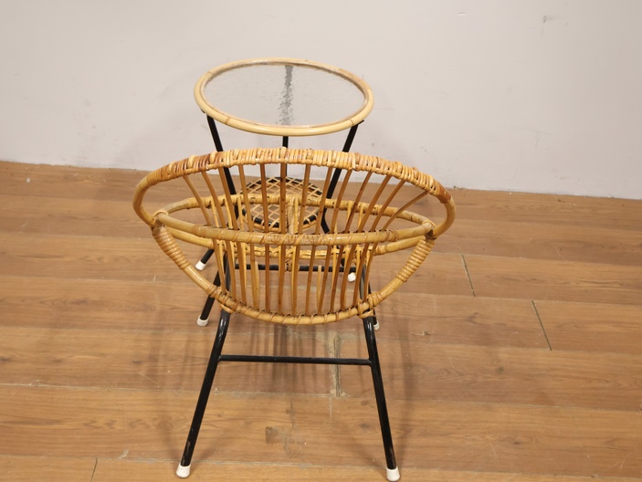 Vintage Rotan Stoel met Bijzettafel door Rohé Noordwolde