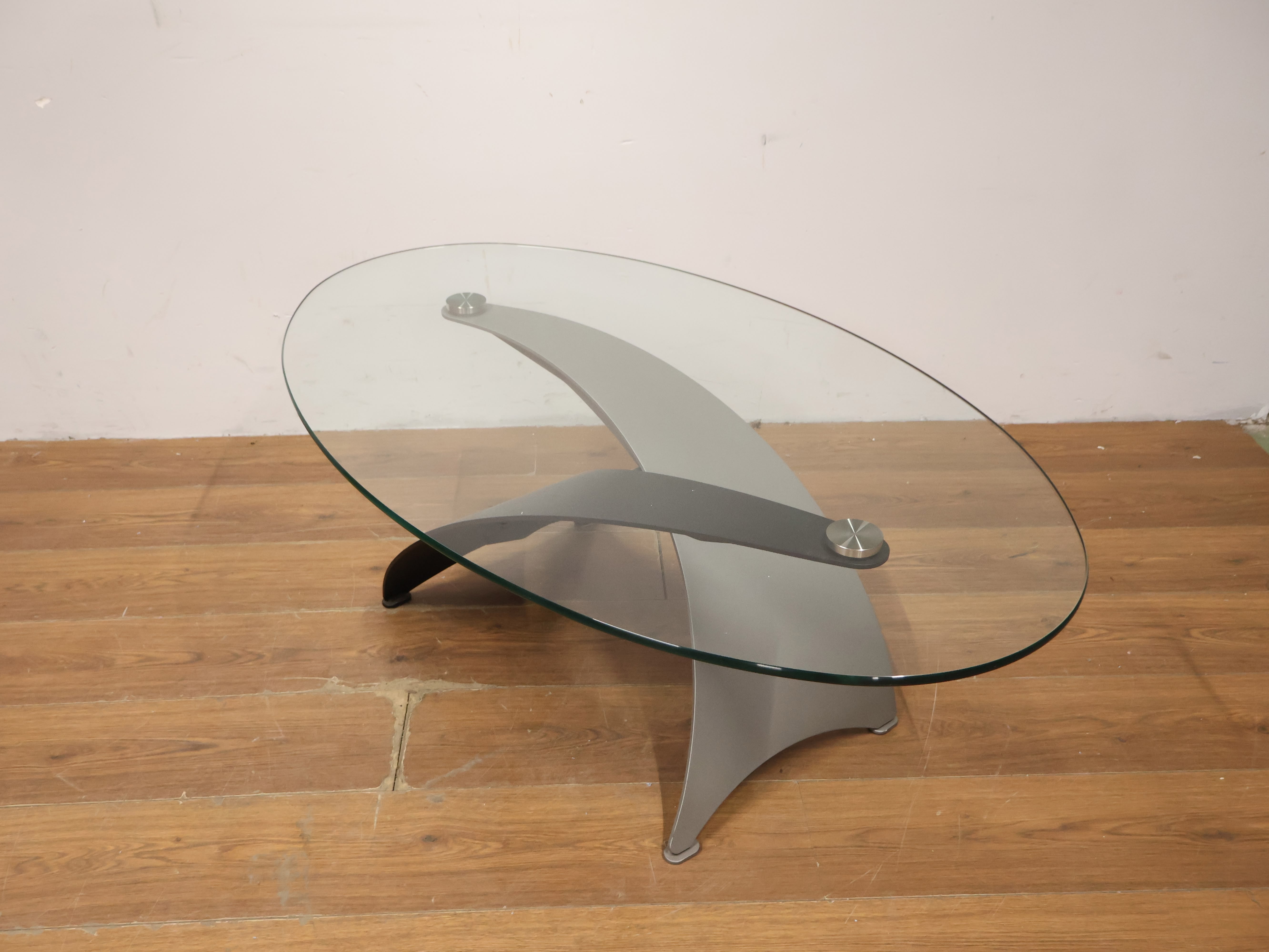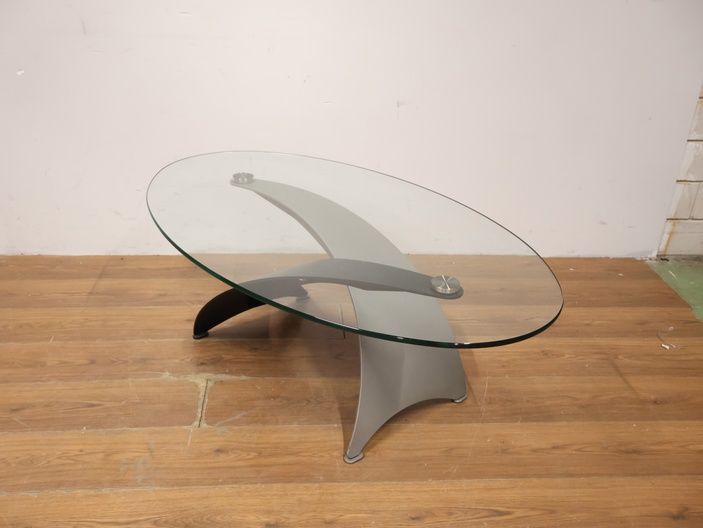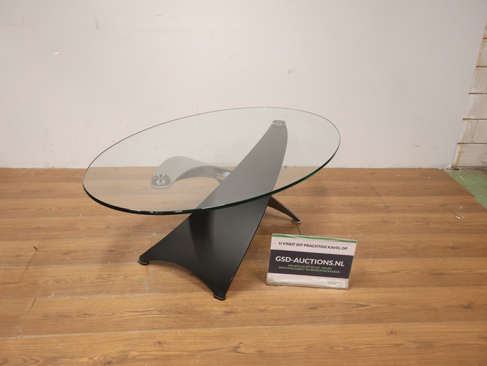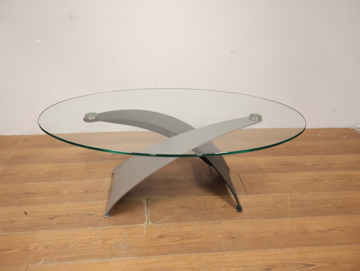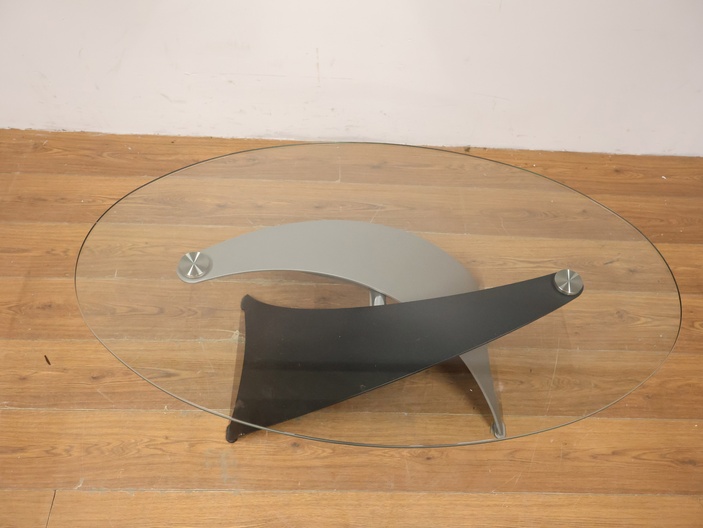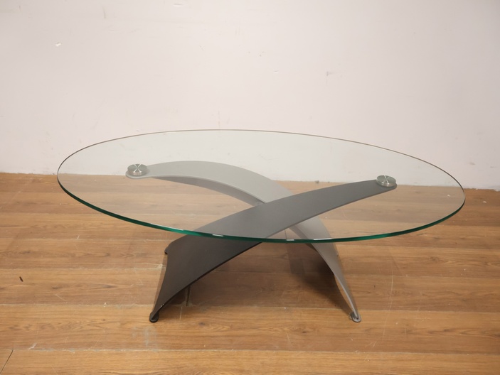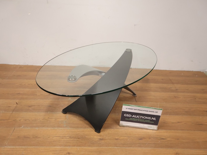 Vintage Designer Salontafel met Ovaal Glazen Blad