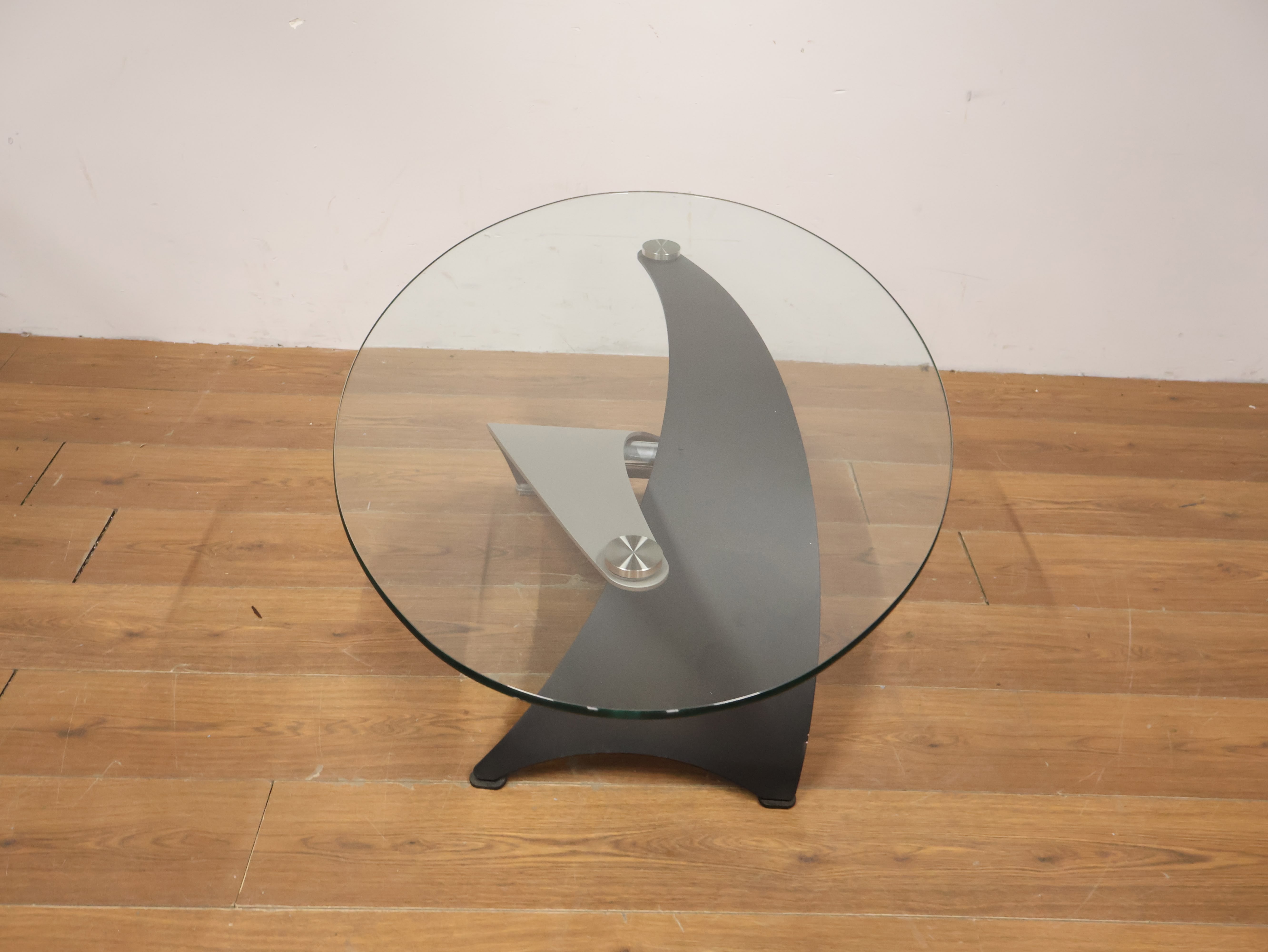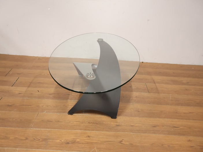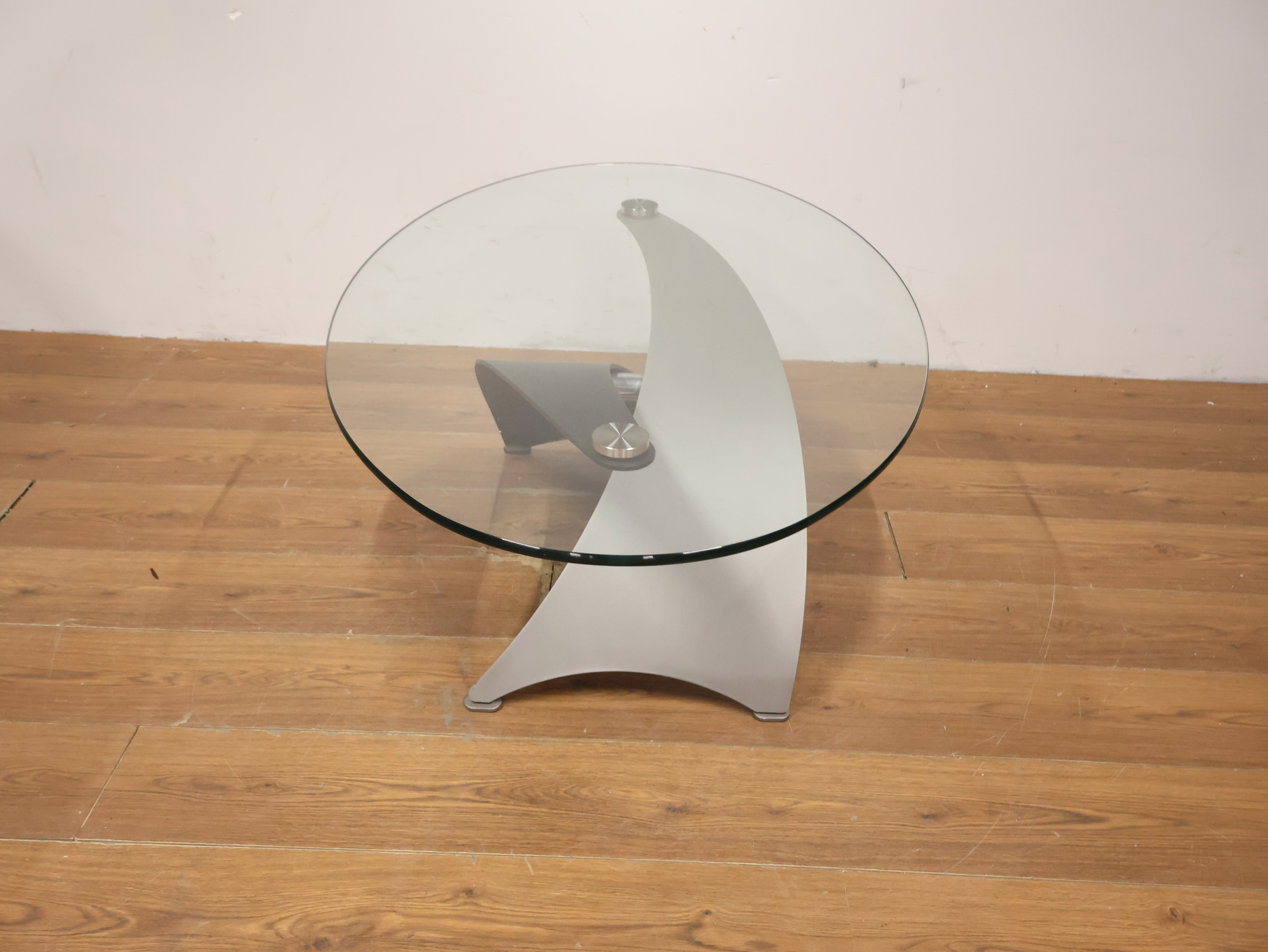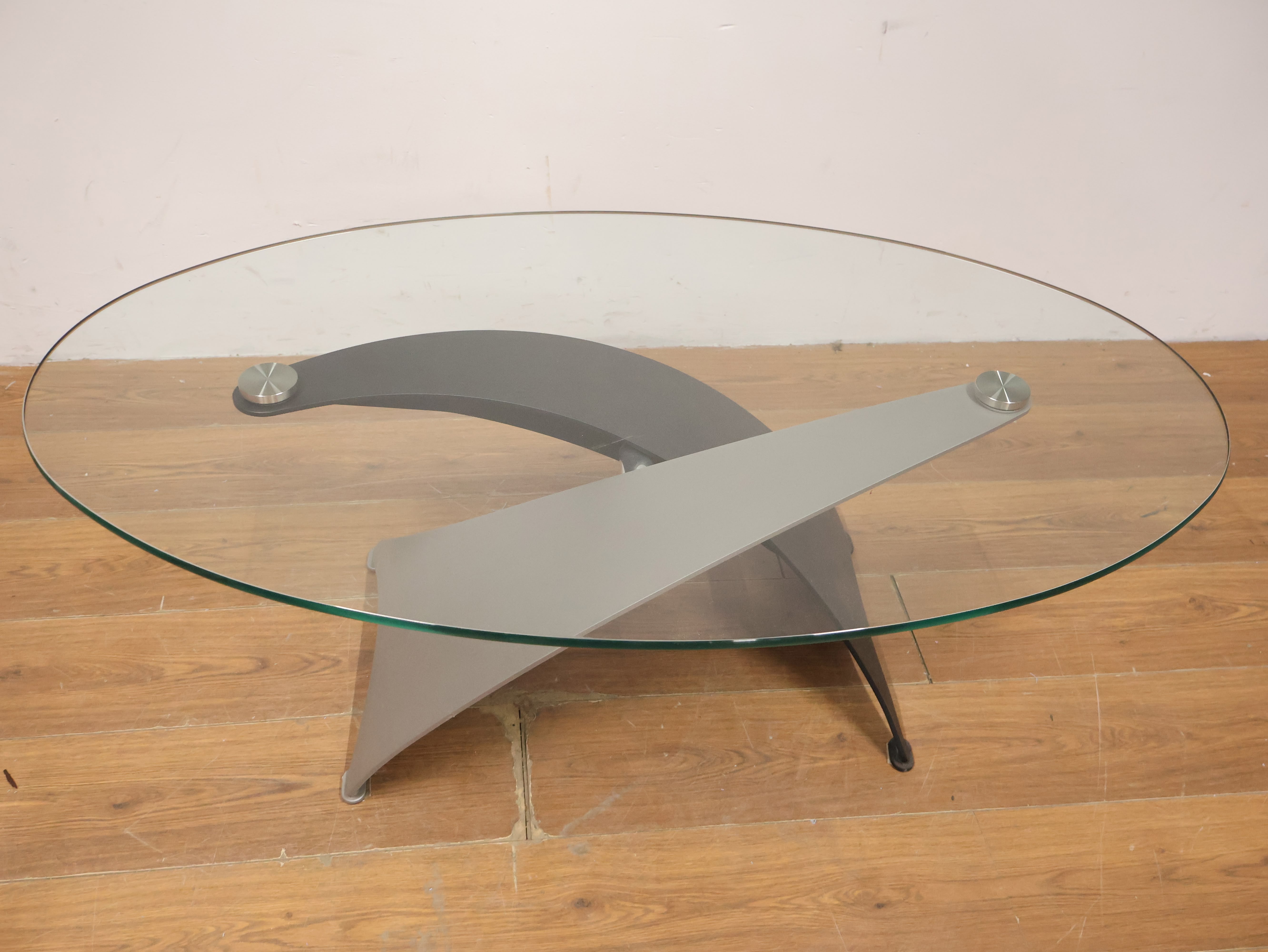 Vintage Designer Salontafel met Ovaal Glazen Blad
