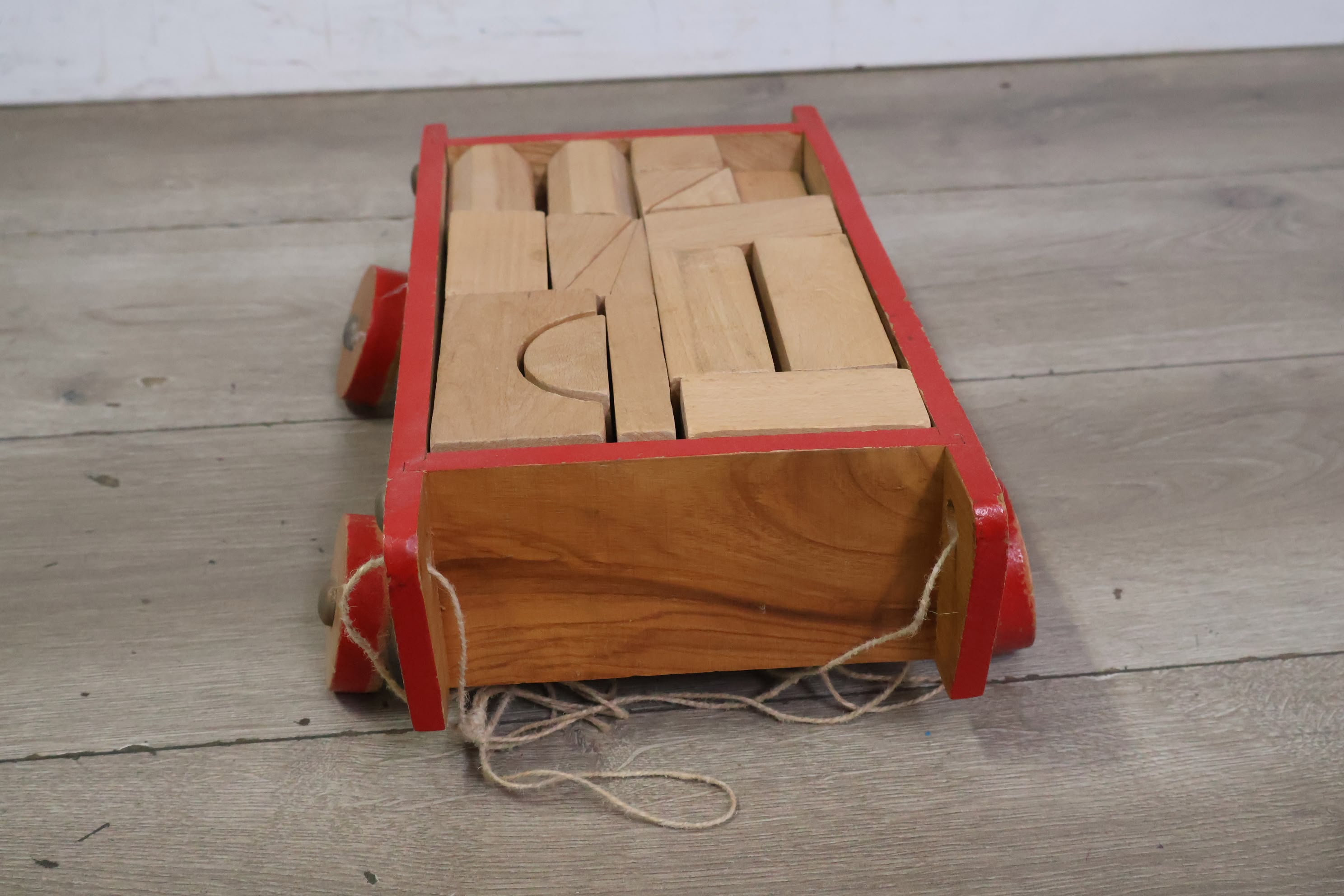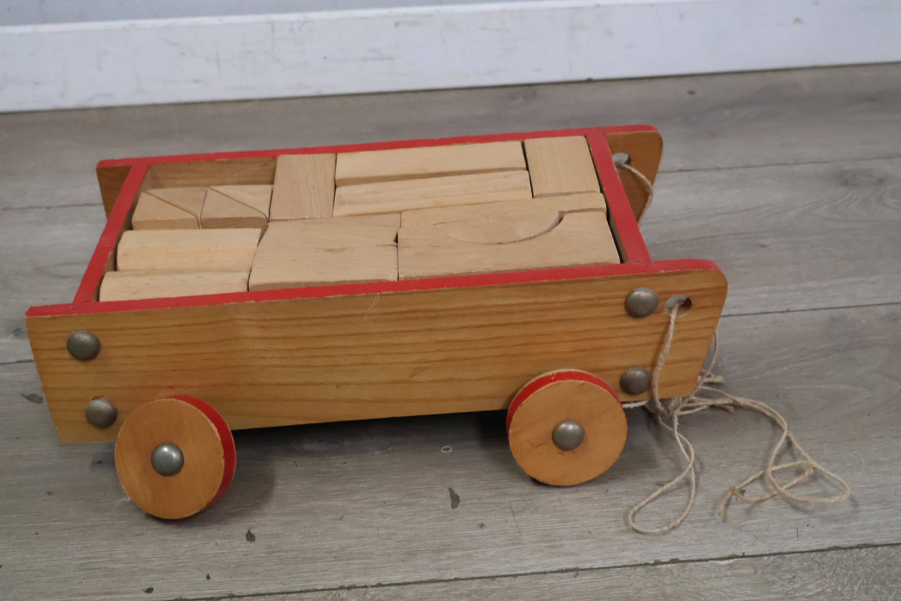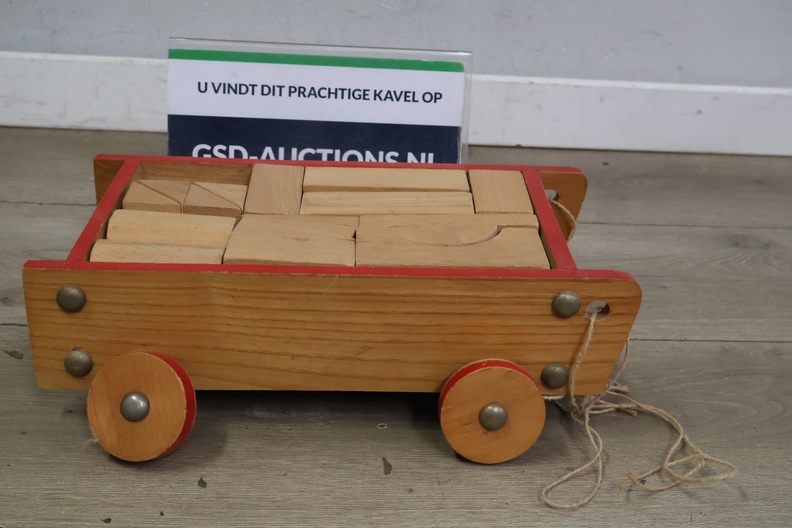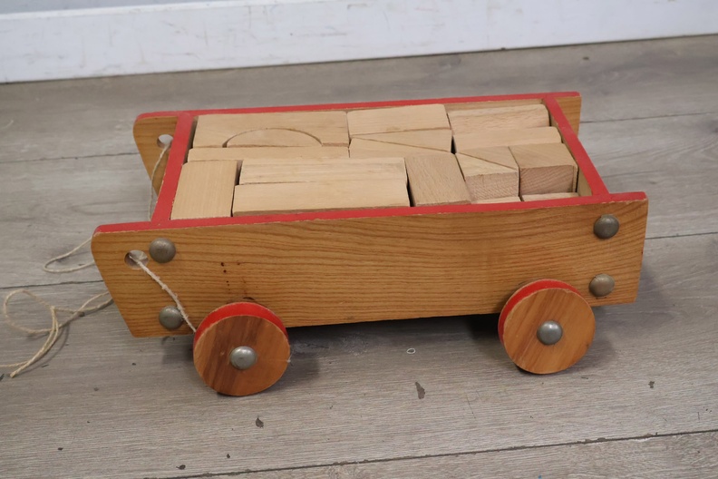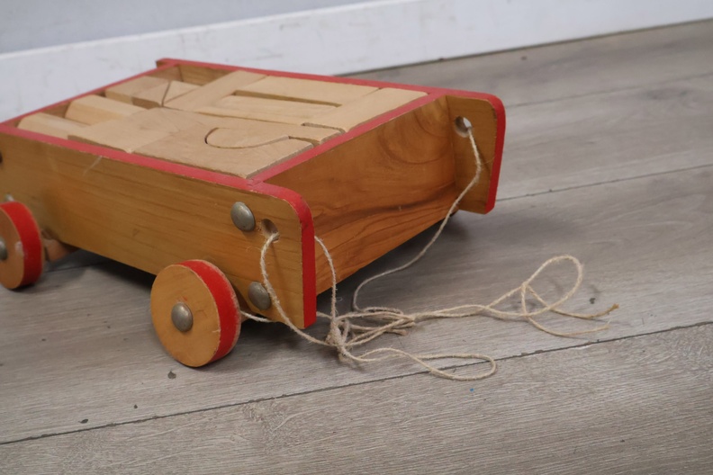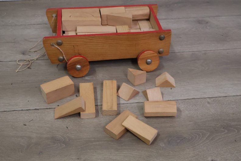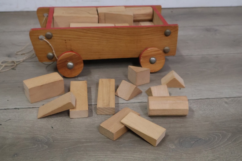 Vintage Houten Blokkenkar met Blokken