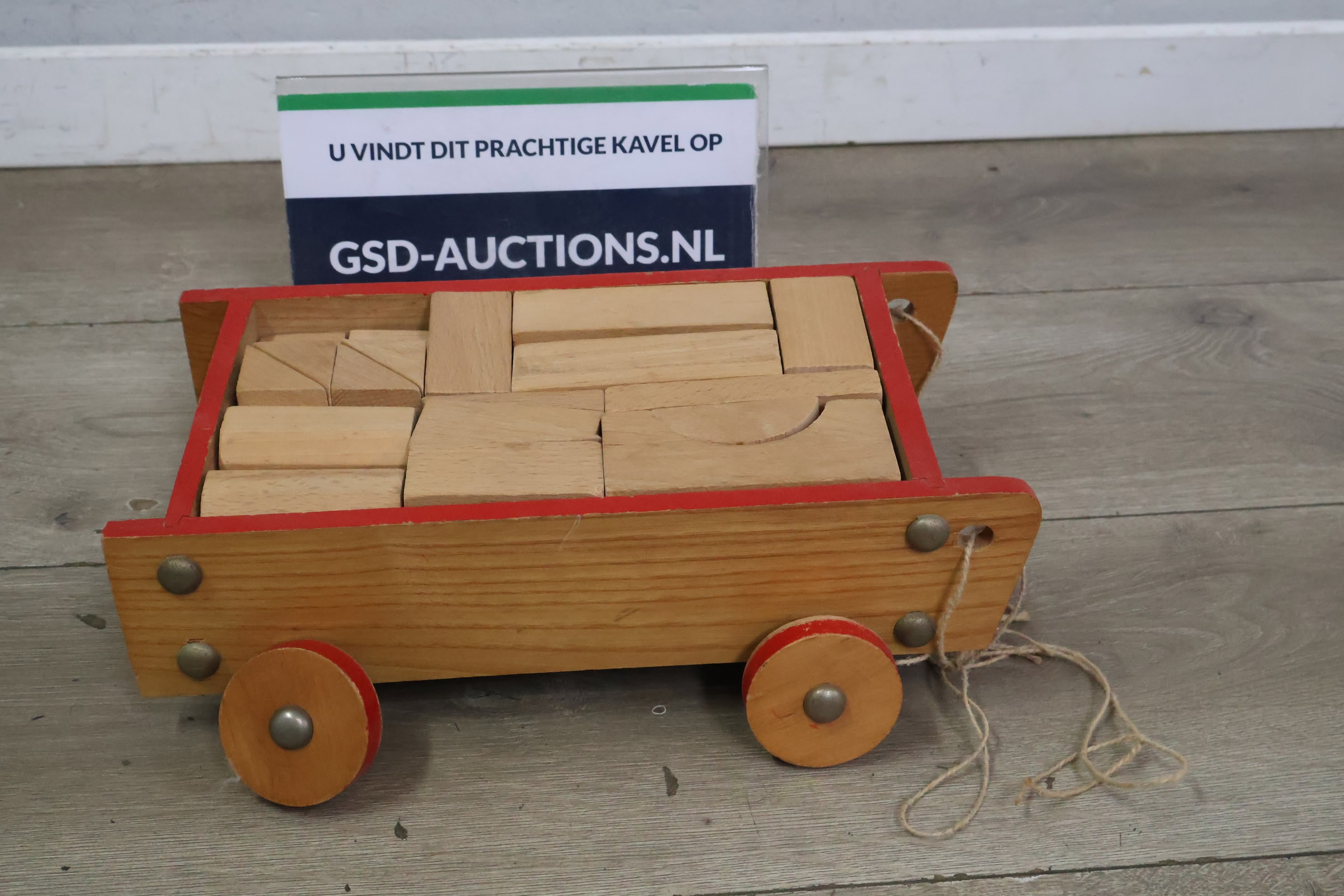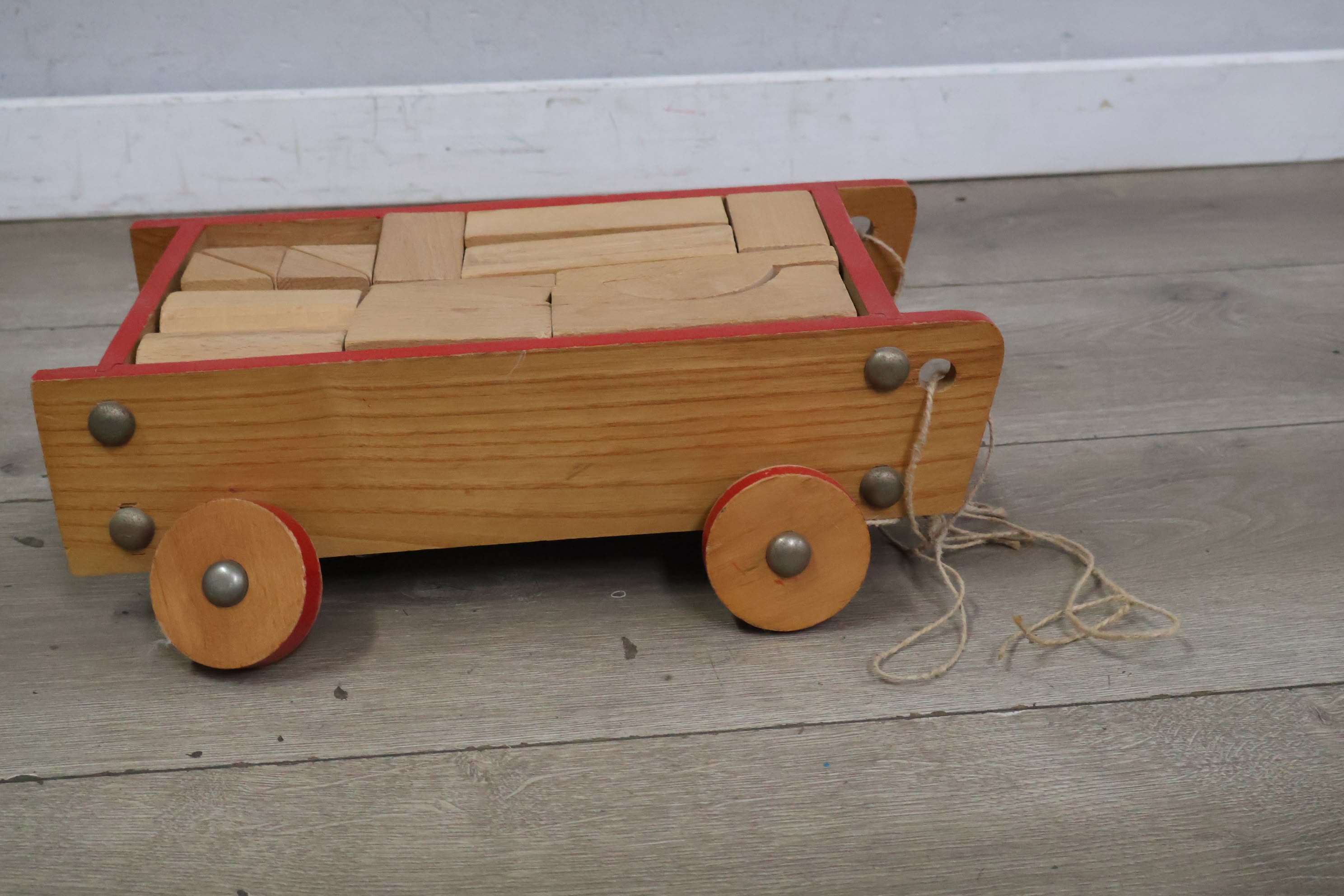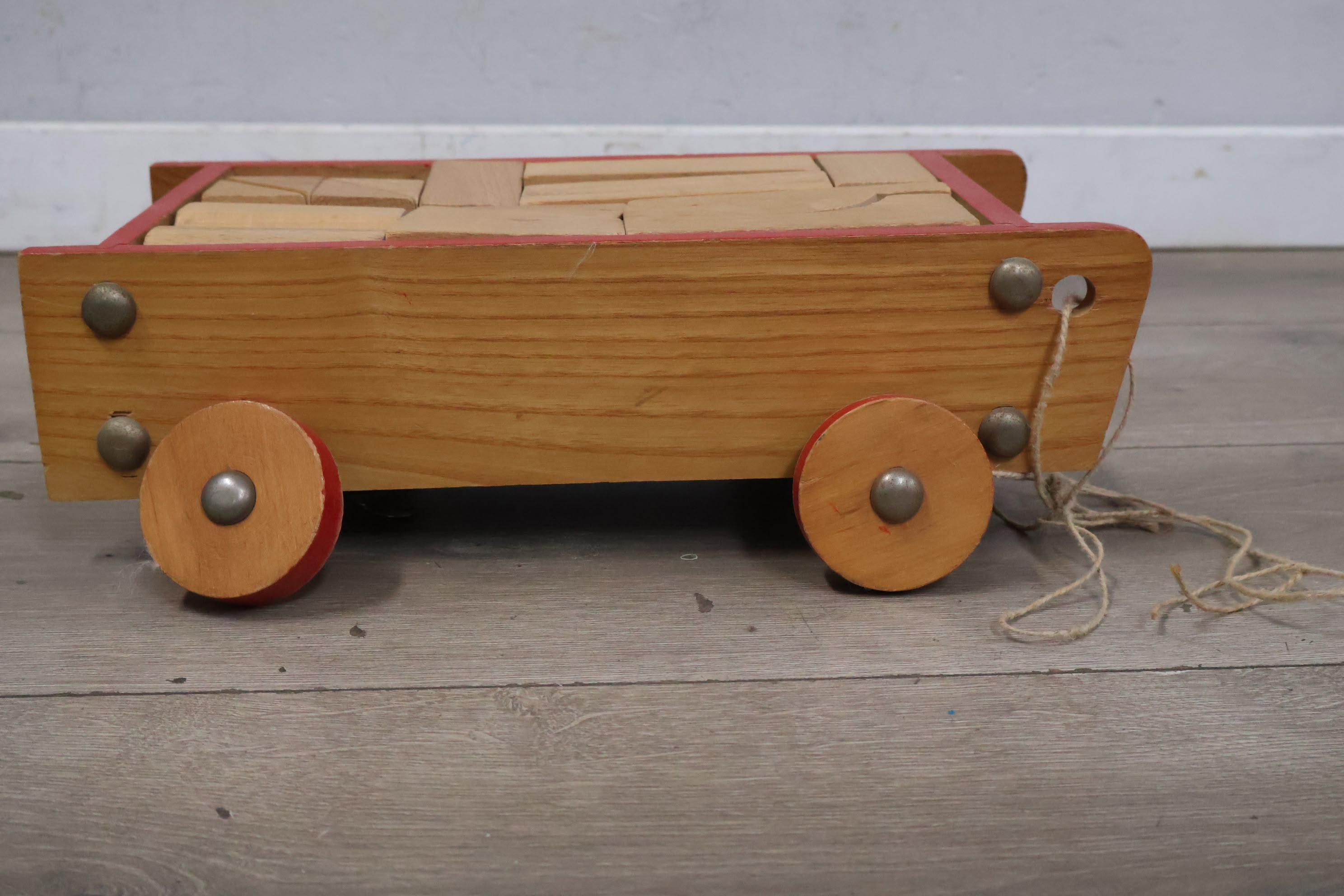 Vintage Houten Blokkenkar met Blokken