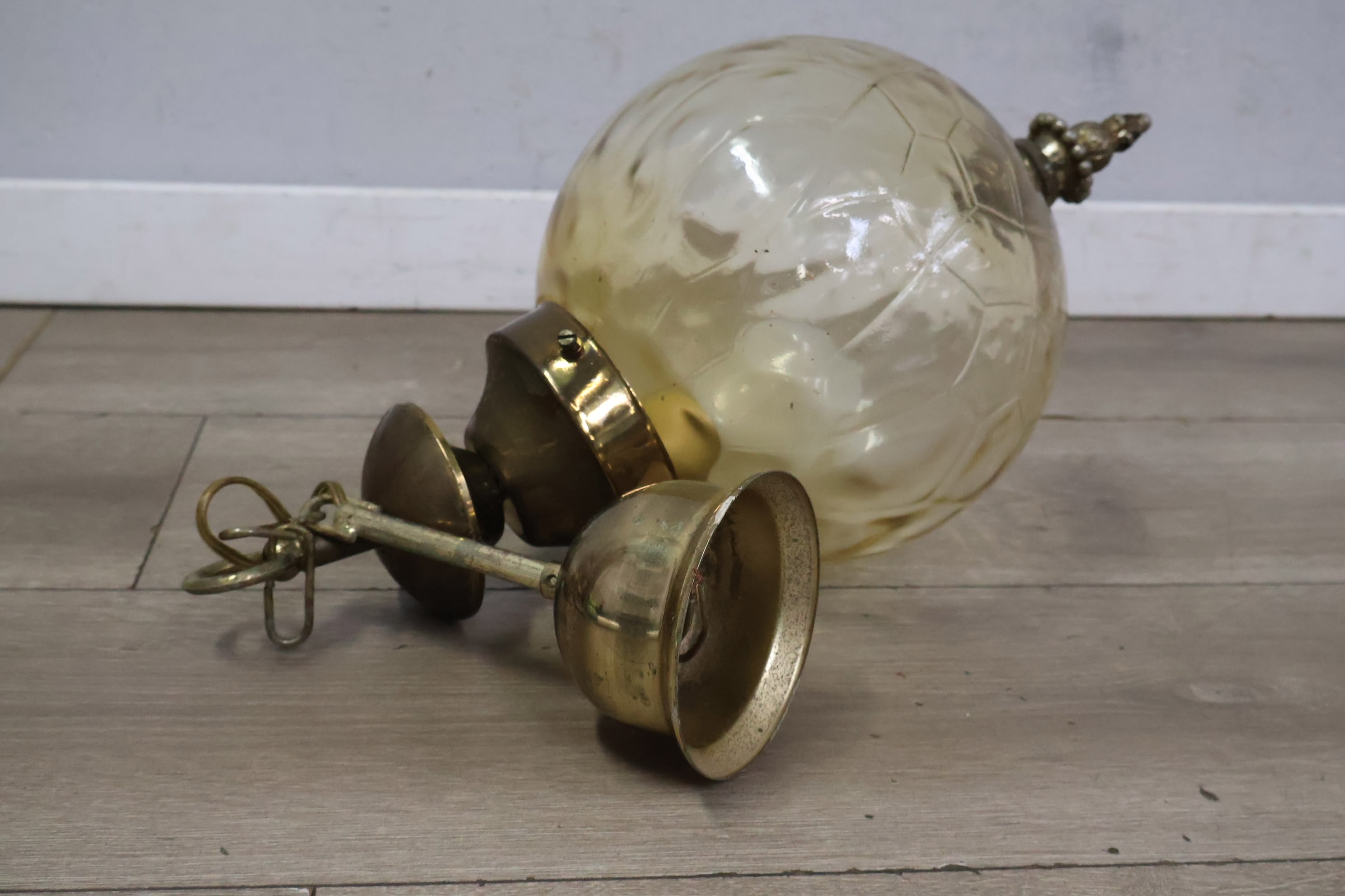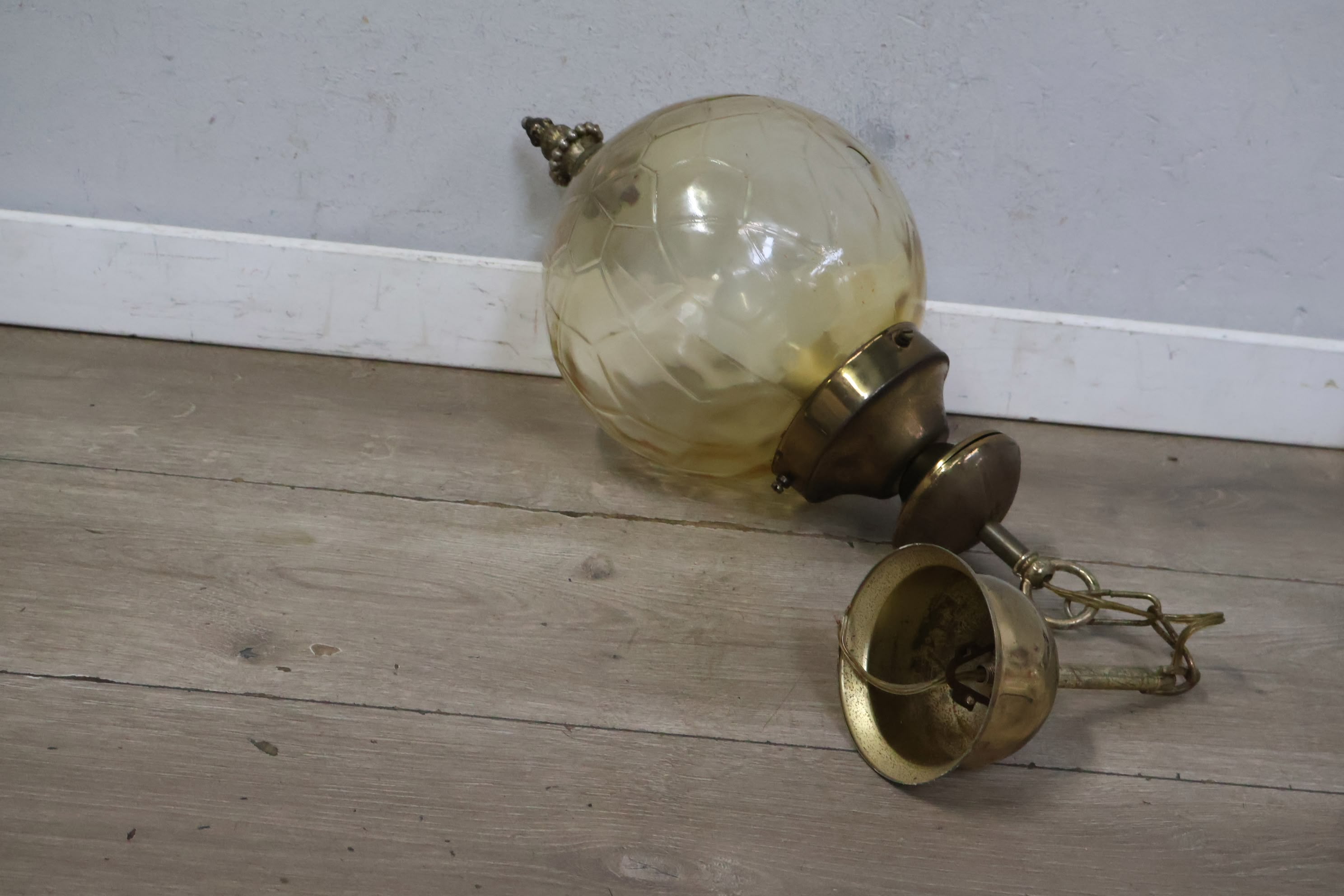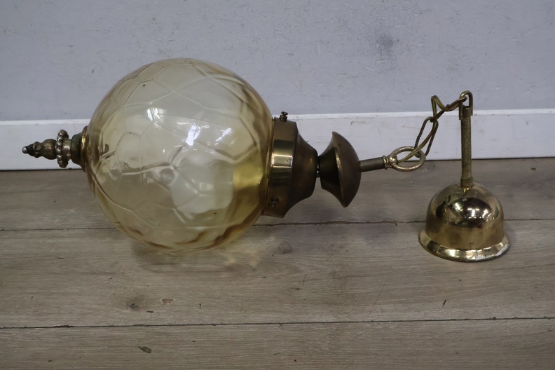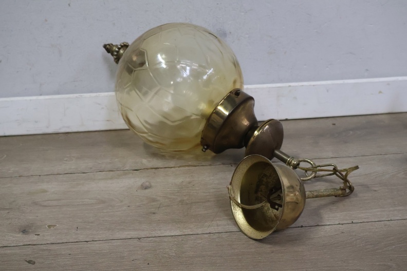 Jaren'60 Cognacglazen Hanglamp met Messing Details