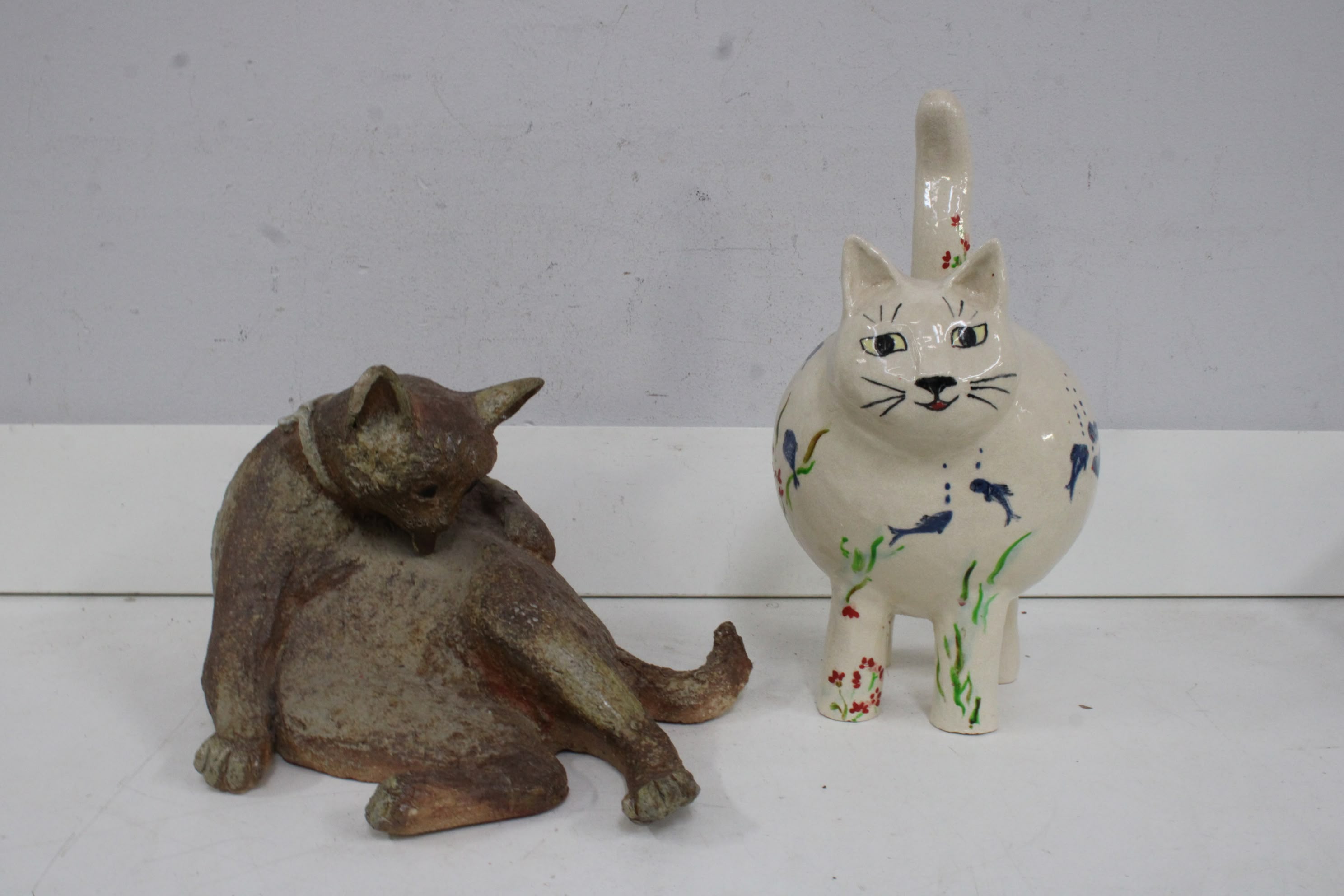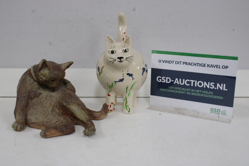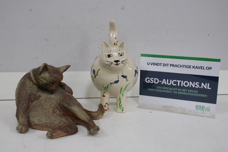 Set van 2 Keramische Kattenbeelden