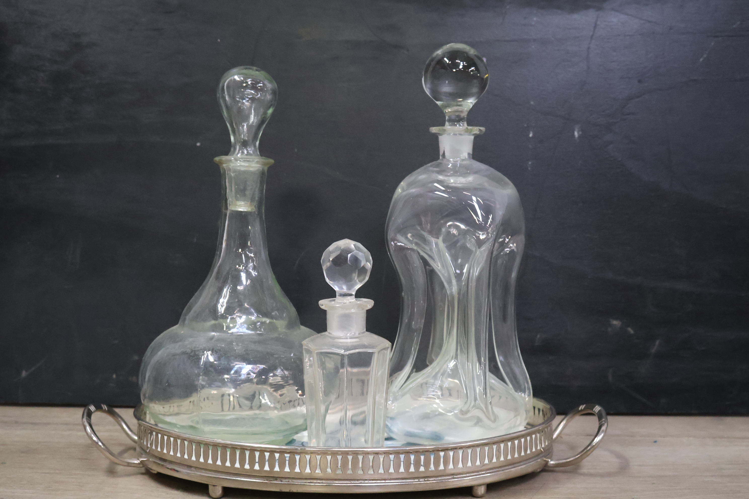 Karaffen 3 stuks op een dienblad