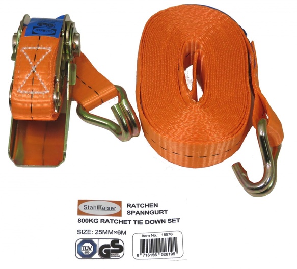 Spanband 6 mtr. met ratel/haken 800 kg.