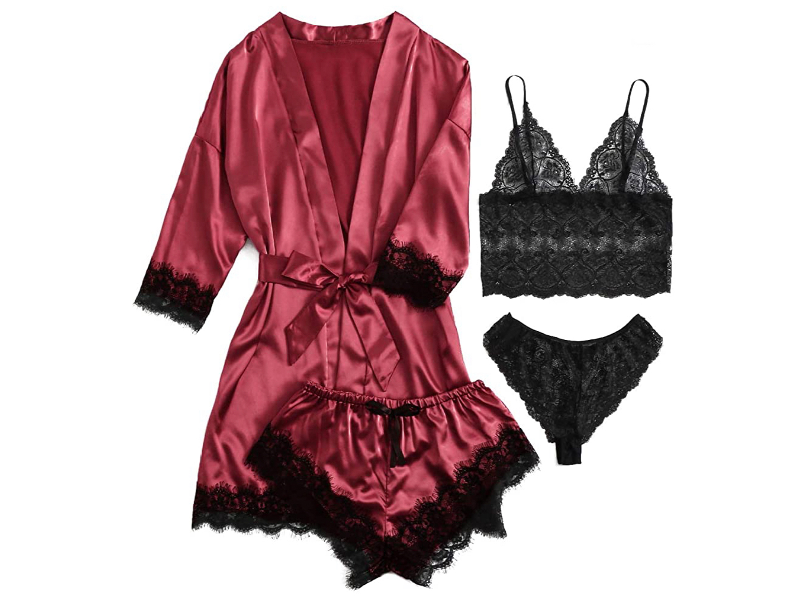 - In de verpakking: ochtendjas + top + kort broekje + slip