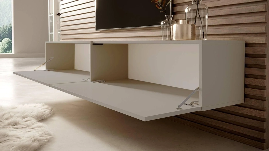 De kast heeft een eenvoudige vorm, die wordt geaccentueerd door een verticale inzet in het midden van de kast. Deze stijlvolle TV-meubel zal ongetwijfeld het pronkstuk zijn van elke woonkamer. De Emma heeft twee ruime opbergvakken die perfect zijn voor het opbergen van consoles, extra kabels, of andere kleine voorwerpen. Een extra voordeel van de Emma is dat ze aan de muur bevestigd wordt, wat ervoor zorgt dat je er makkelijk onder schoon kunt maken!