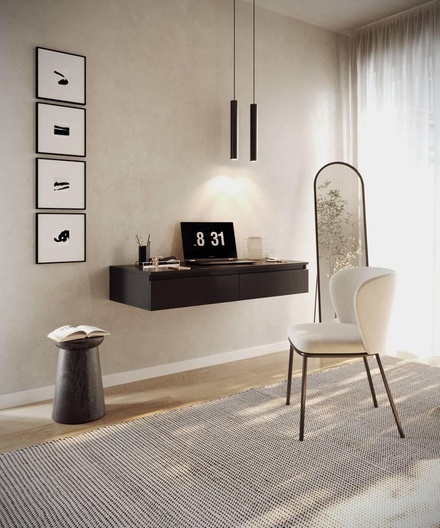 Bent u op zoek naar een comfortabele kaptafel die past in een avant-garde, chique interieur? Bemmi combineert modern design met duurzaamheid en functionaliteit en wordt daarmee een uitstekende keuze voor wie niet alleen op zoek is naar stijl, maar ook naar een uitstekende standaard. Gemaakt van hoge kwaliteit spaanplaa, is ontworpen om bestand te zijn tegen dagelijks gebruik en stevigheid te bieden. Langdurige slijtvastheid: ABS-randen garanderen extra bescherming van de randen en beschermen ze tegen schade, wat vooral belangrijk is in intensief gebruikte ruimtes. De mogelijkheid om hem op te hangen zorgt ervoor dat hij weinig ruimte in beslag neemt en de kamer niet rommelig maakt. De kaptafel is uitgerust met twee lades waarin je cosmetica of sieraden kunt opbergen, zodat je de orde kunt bewaren en rommel tot een minimum kunt beperken. De Bemmi kaptafel is niet alleen een praktisch meubelstuk, maar ook een elegante toevoeging aan je huis.