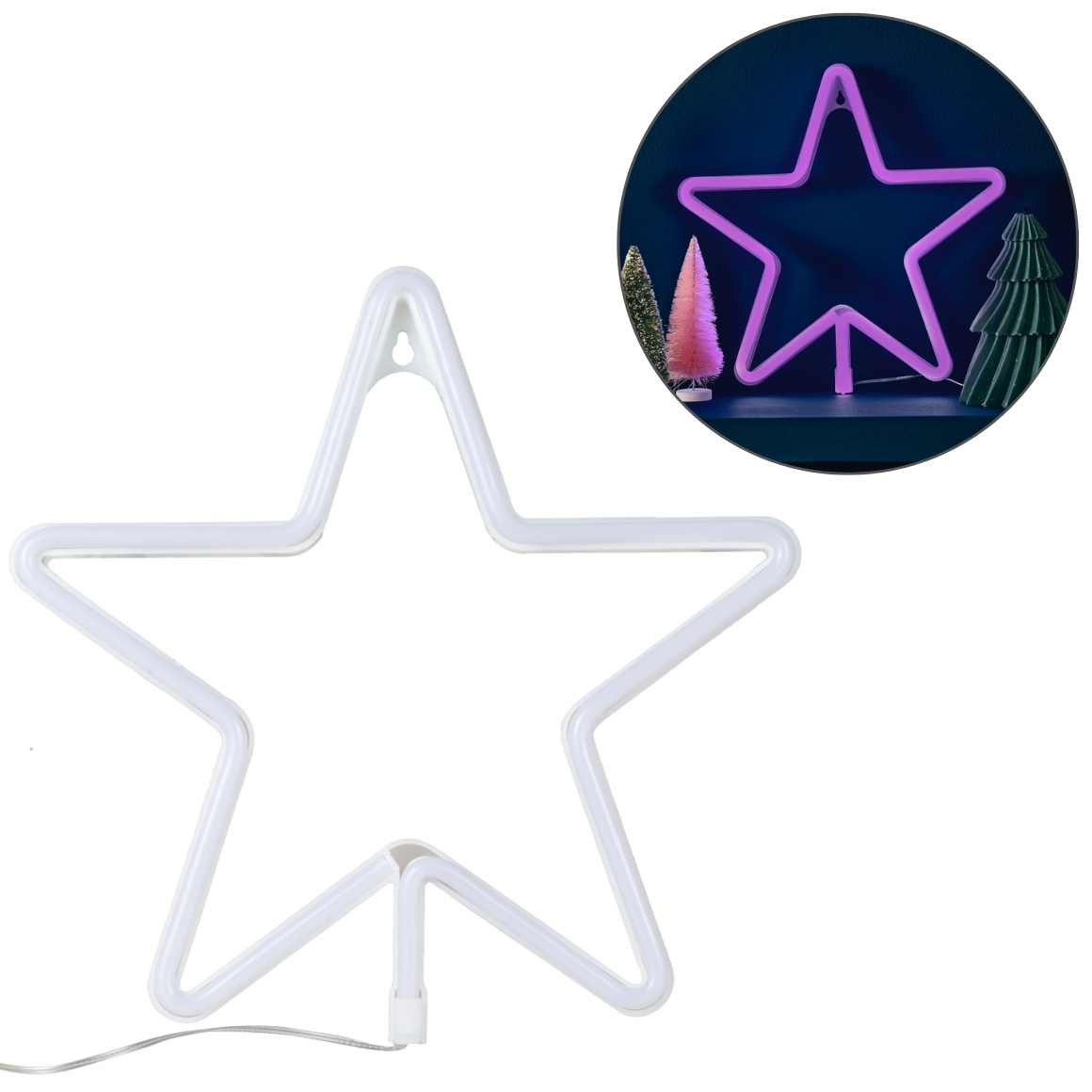 - De grote roze ster is uitgevoerd in modern neon en valt meteen op aan de muur.