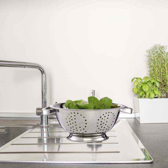 - Stabiele stand op het aanrecht of in de spoelbak door voet