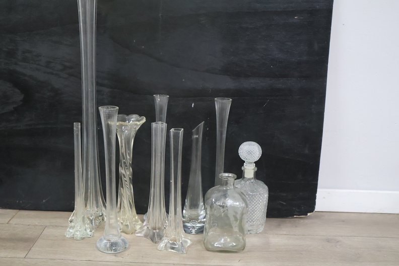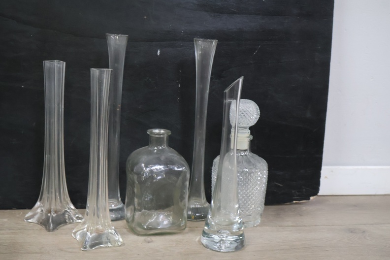 Mix van glazen vazen en karaffen 11 stuks