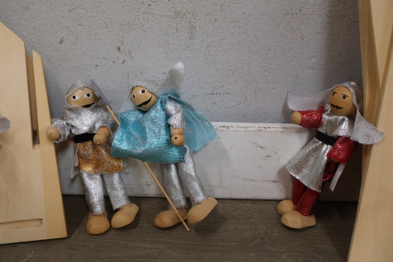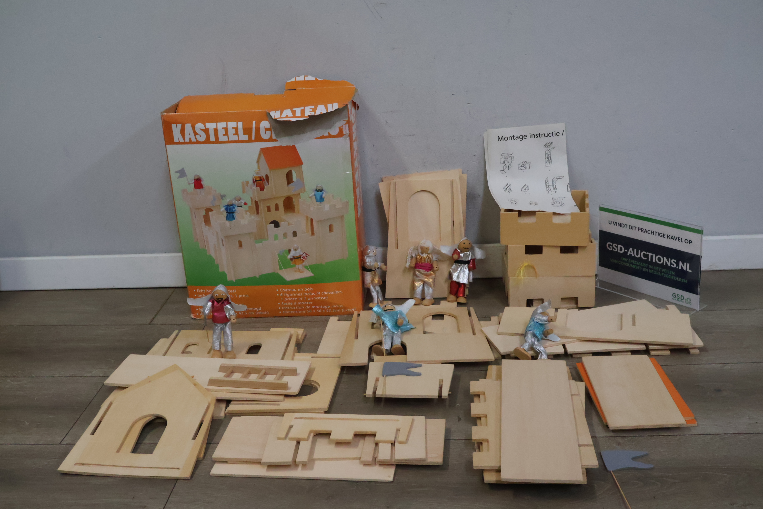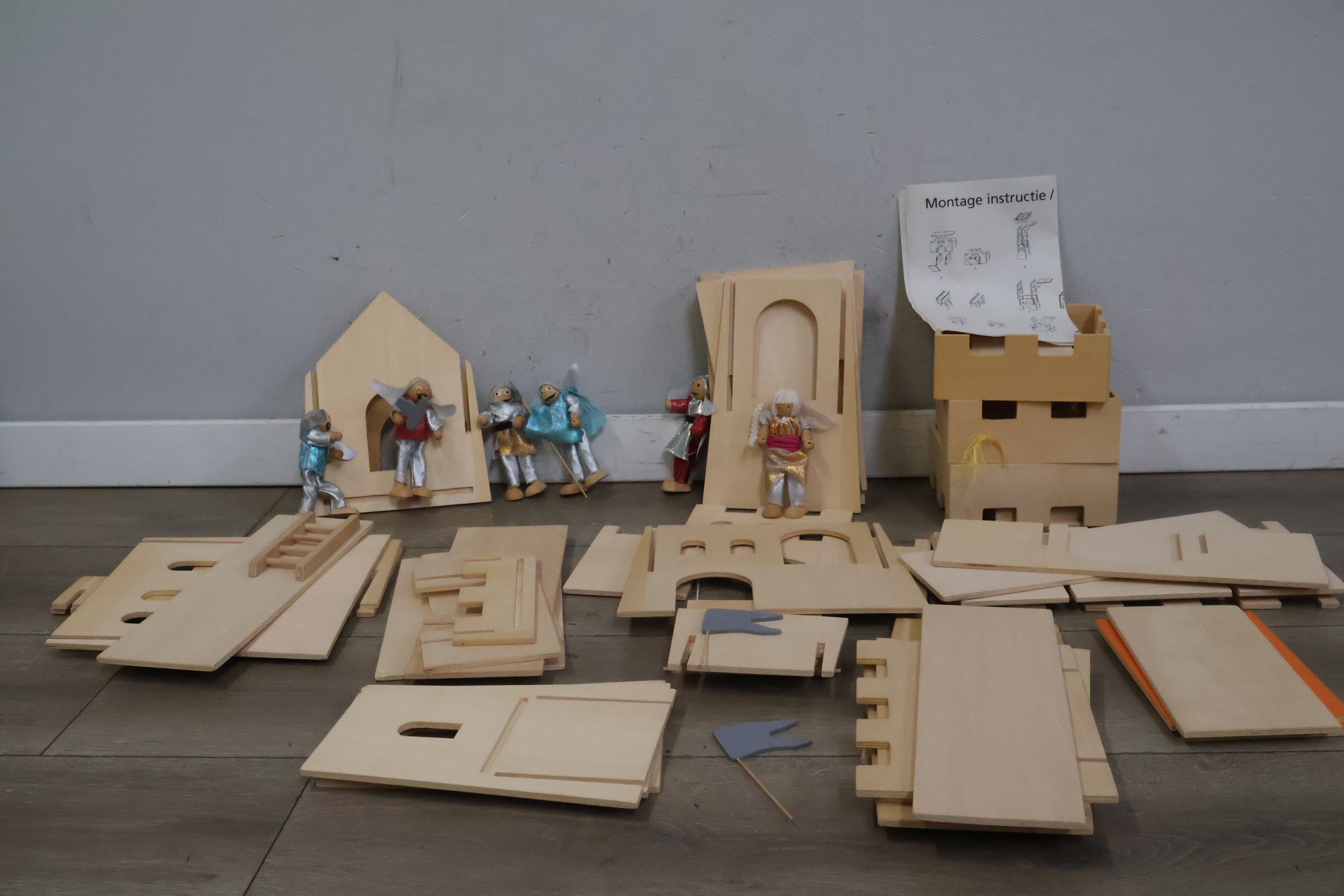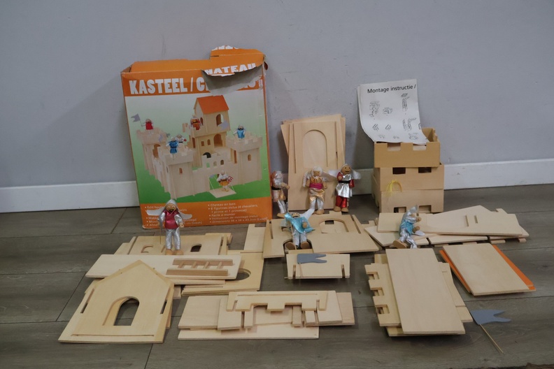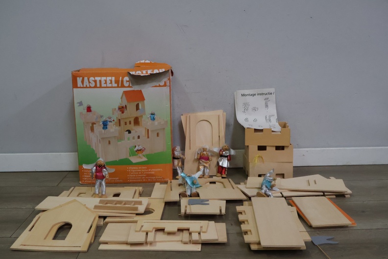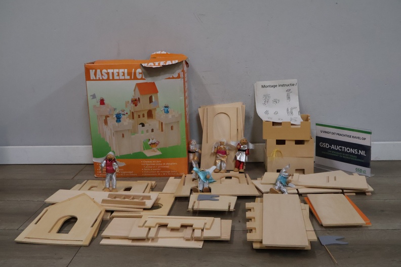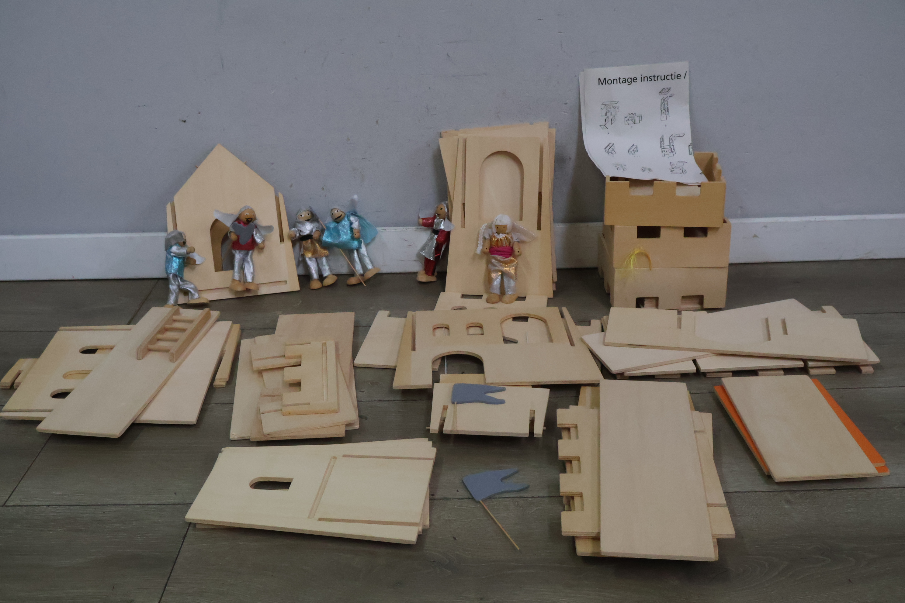 Houten speelgoedkasteel met 4 bijpassende poppetjes