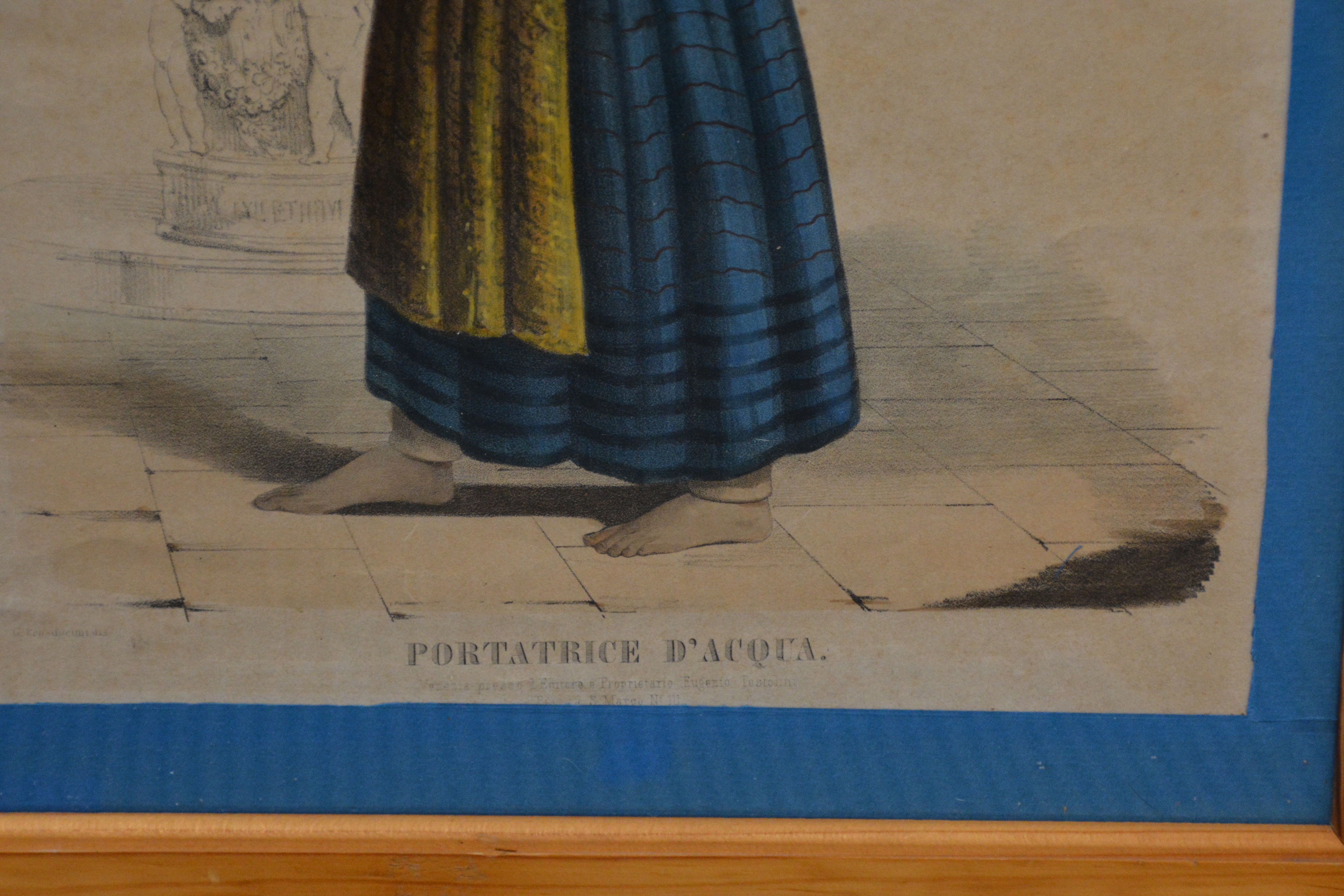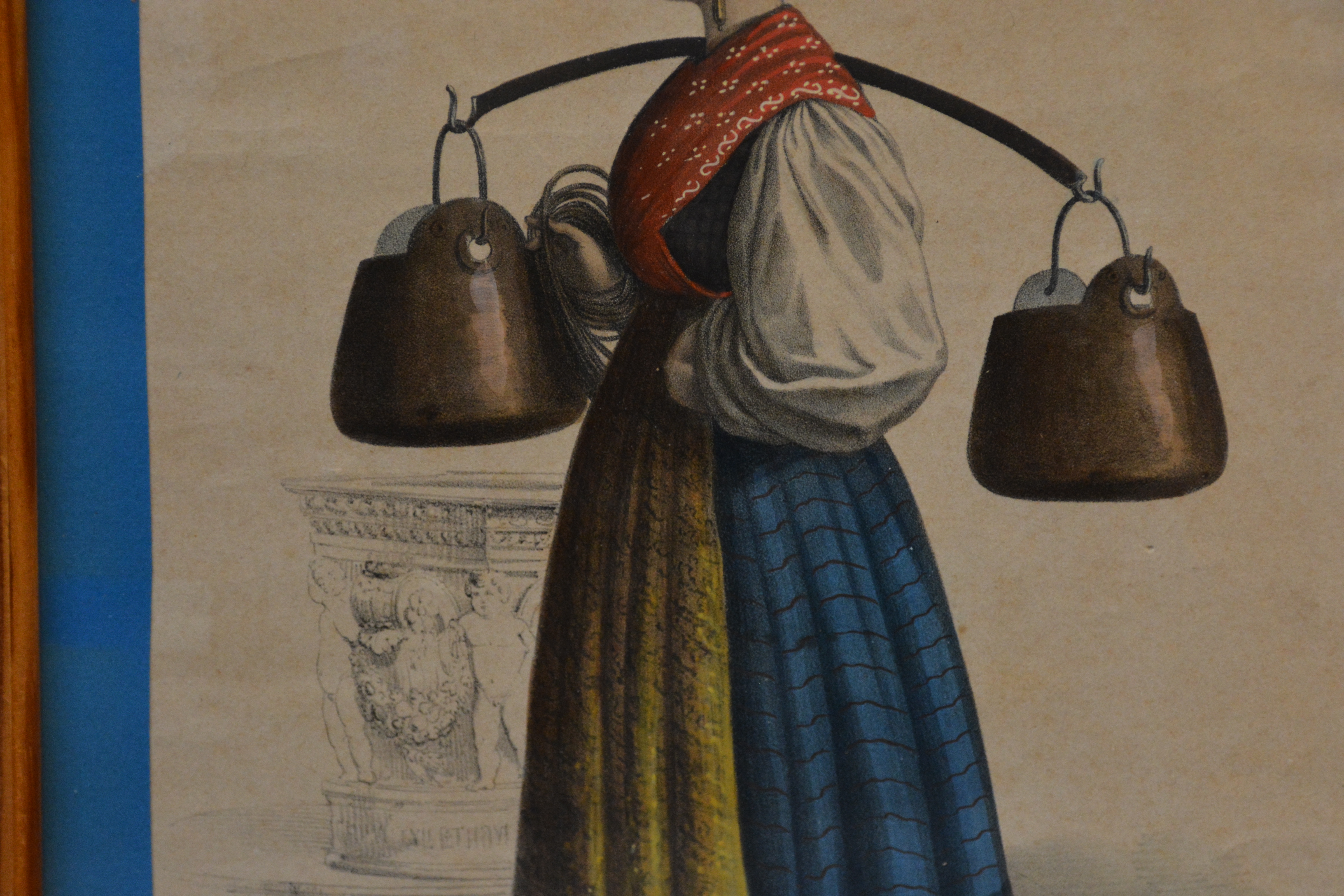 Gekleurde prent van een waterdraagster uit Venetië, 1844.