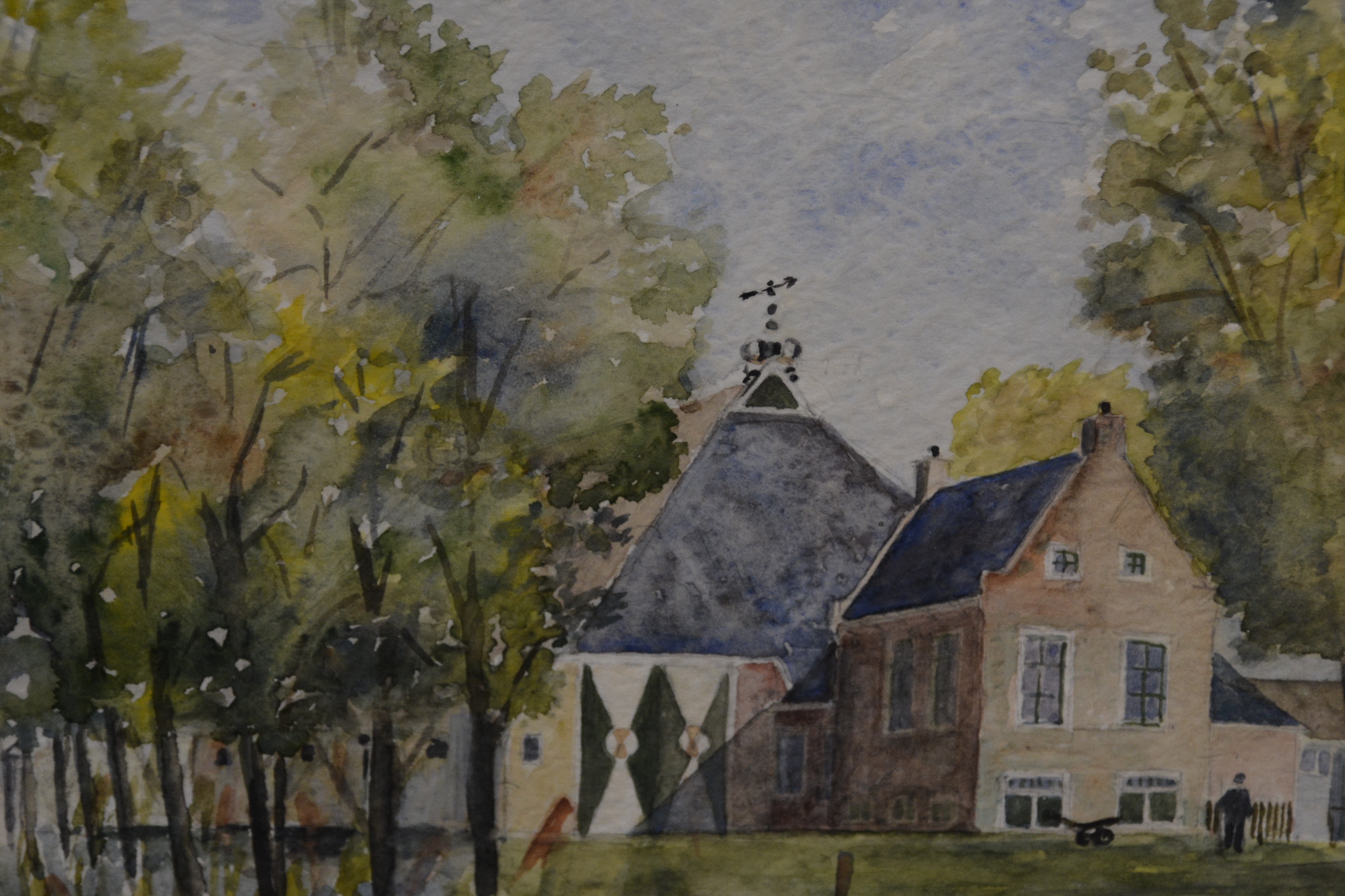 Aquarel van een boerderij, 1971, Van der Stad.