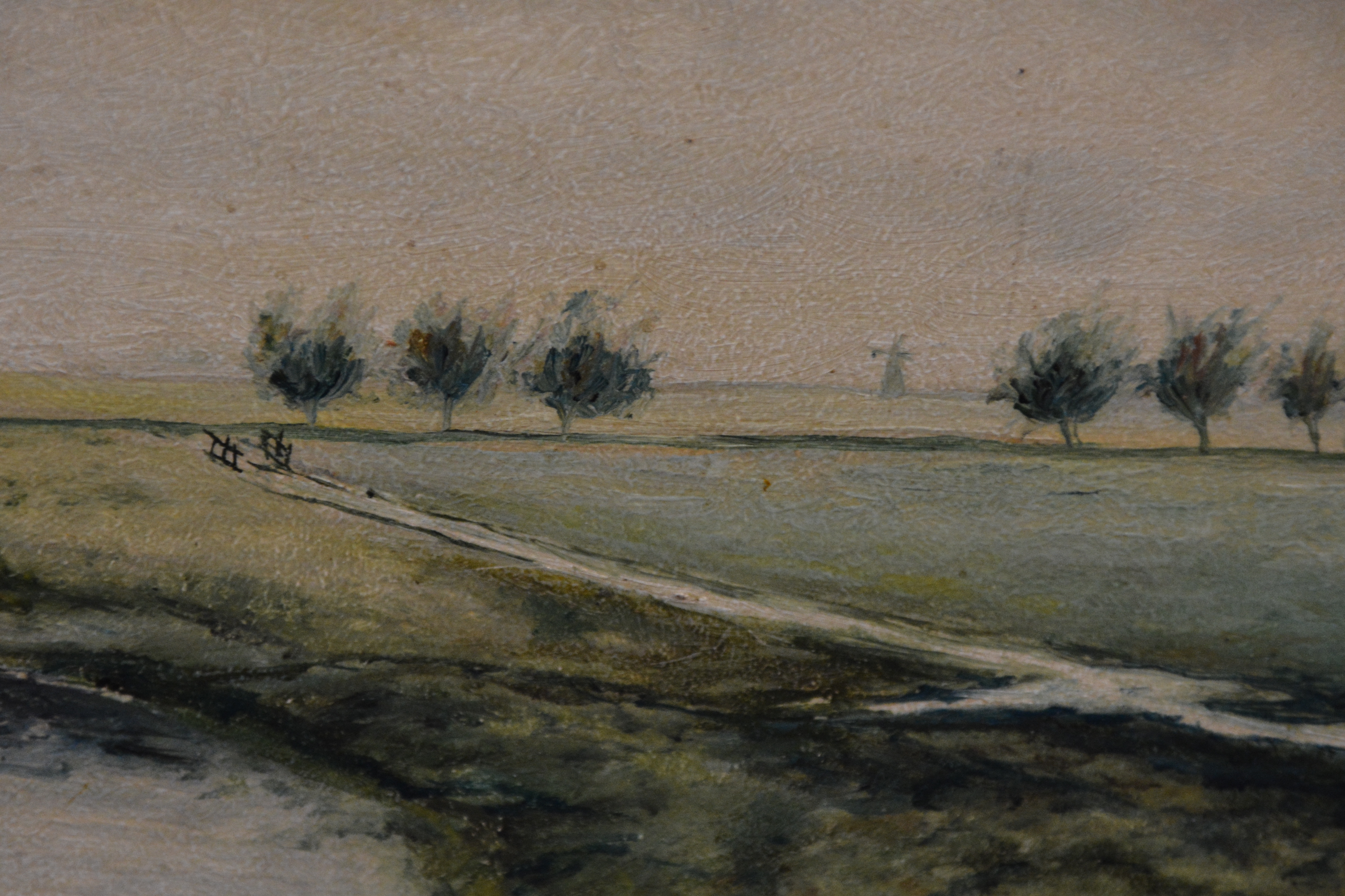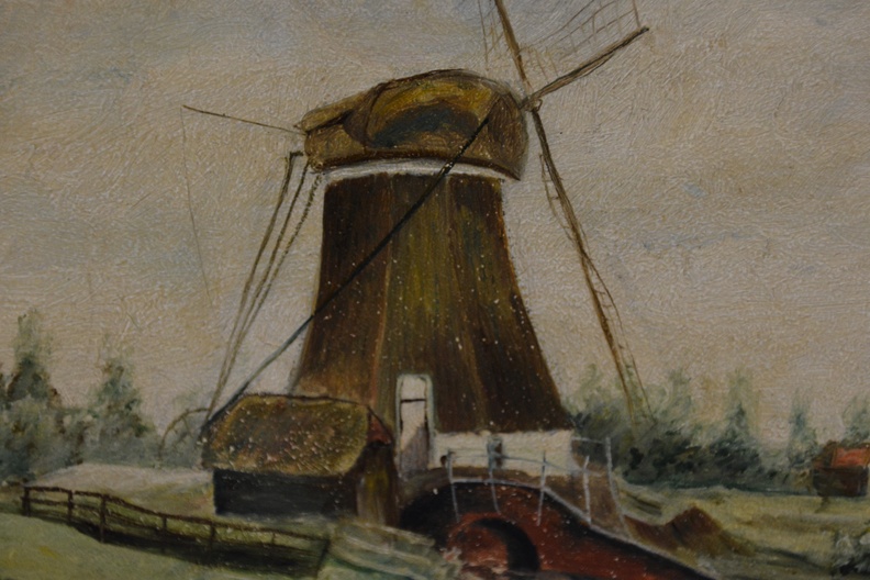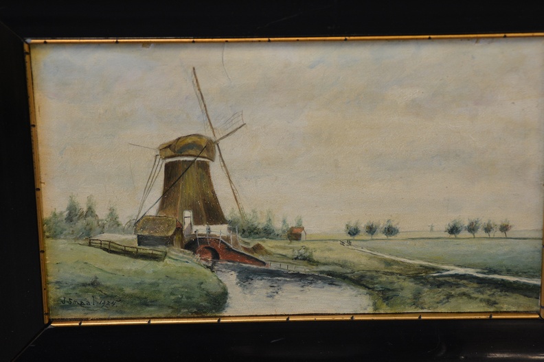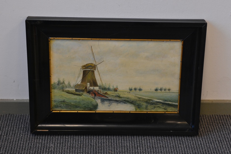 Uit 1924. Prachtig polderlandschap met molen van J. Smaal. Met fraaie lijst. In goede staat.