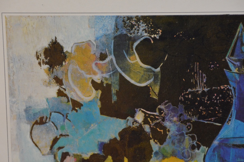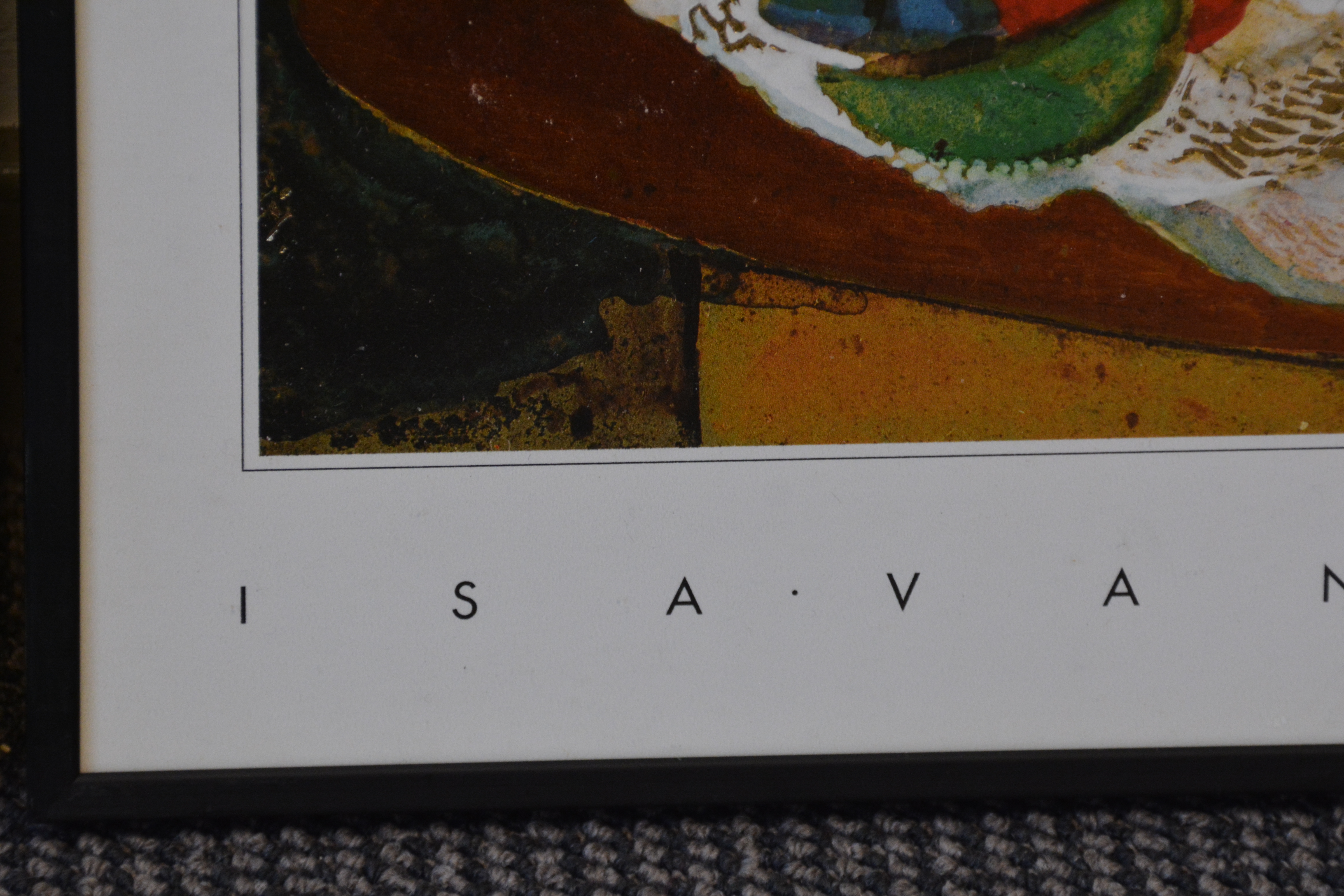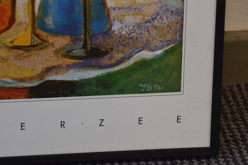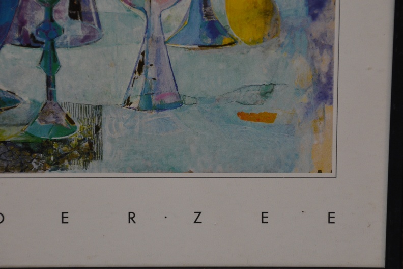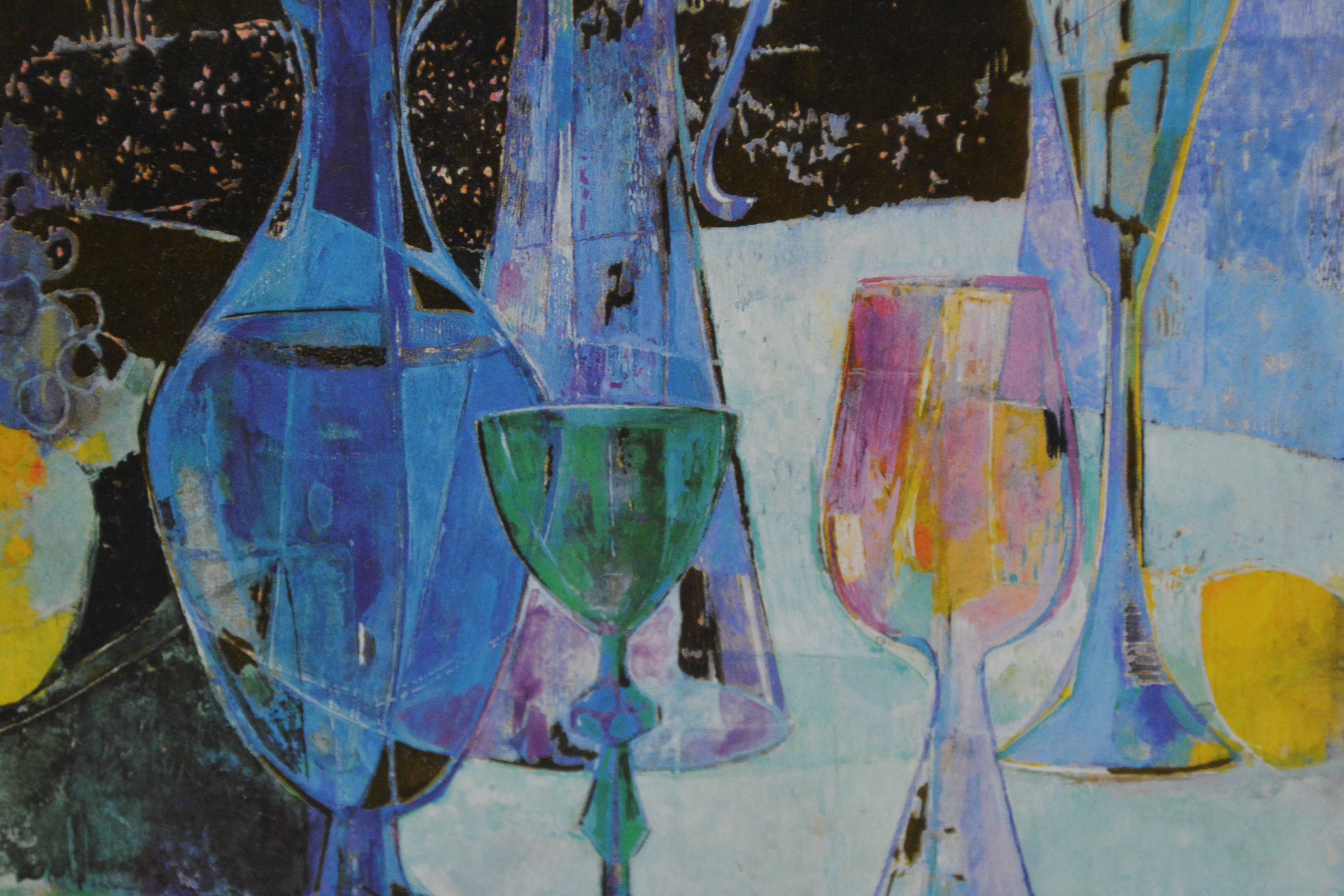 2 Ingelijst artprints. Goudkleurige achtergronden. Vrolijk en kleurig werk. In goede staat.