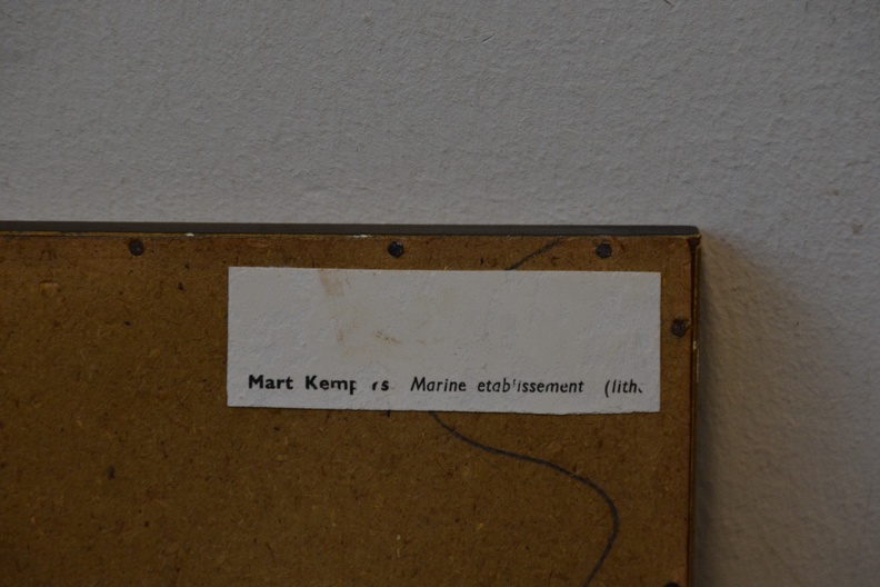 Ingelijste litho van Mart Kempers: 'Marine establishment'.