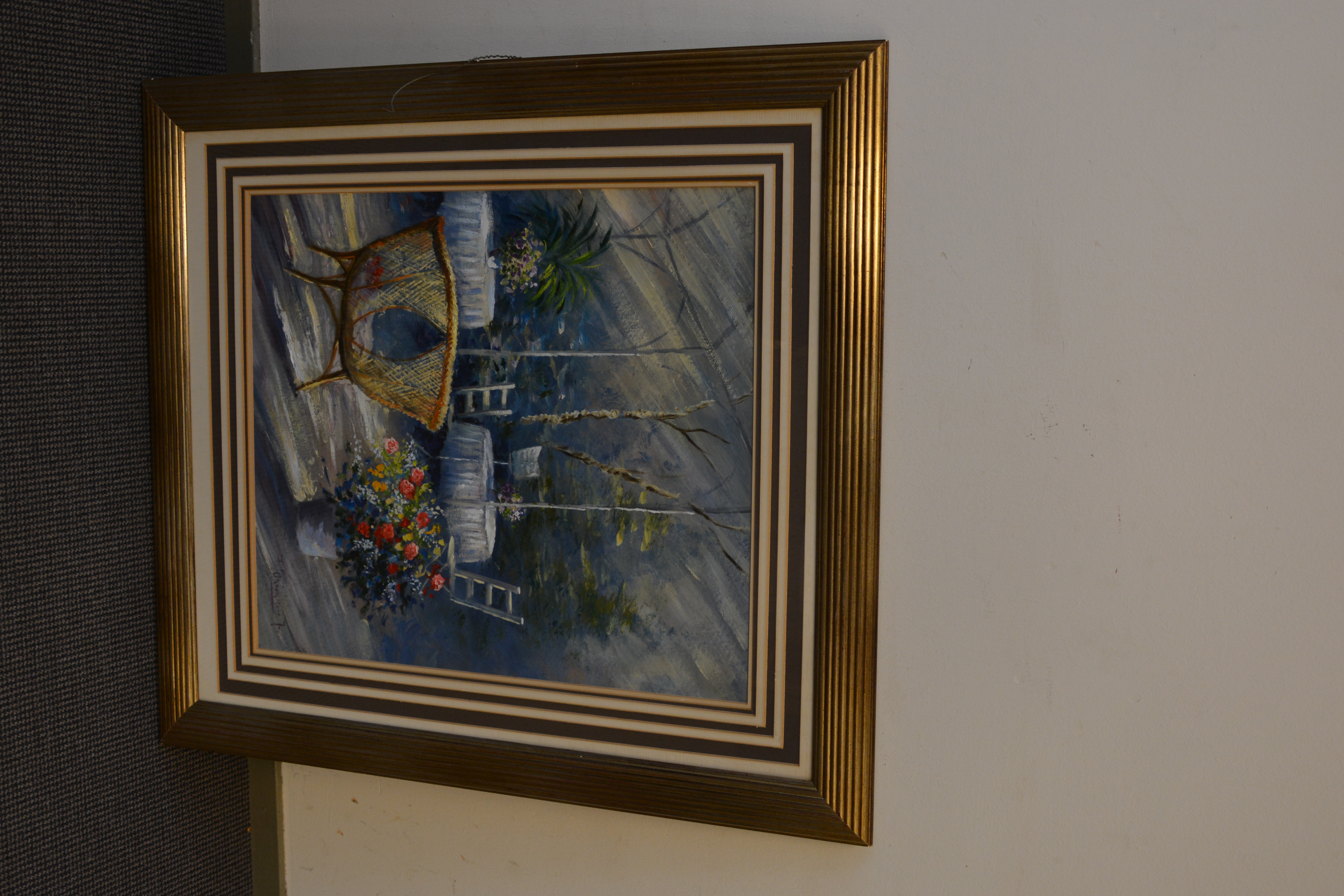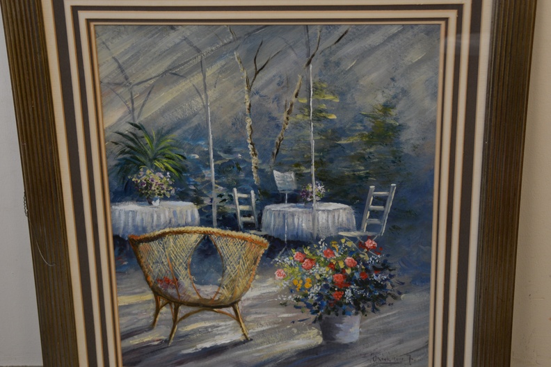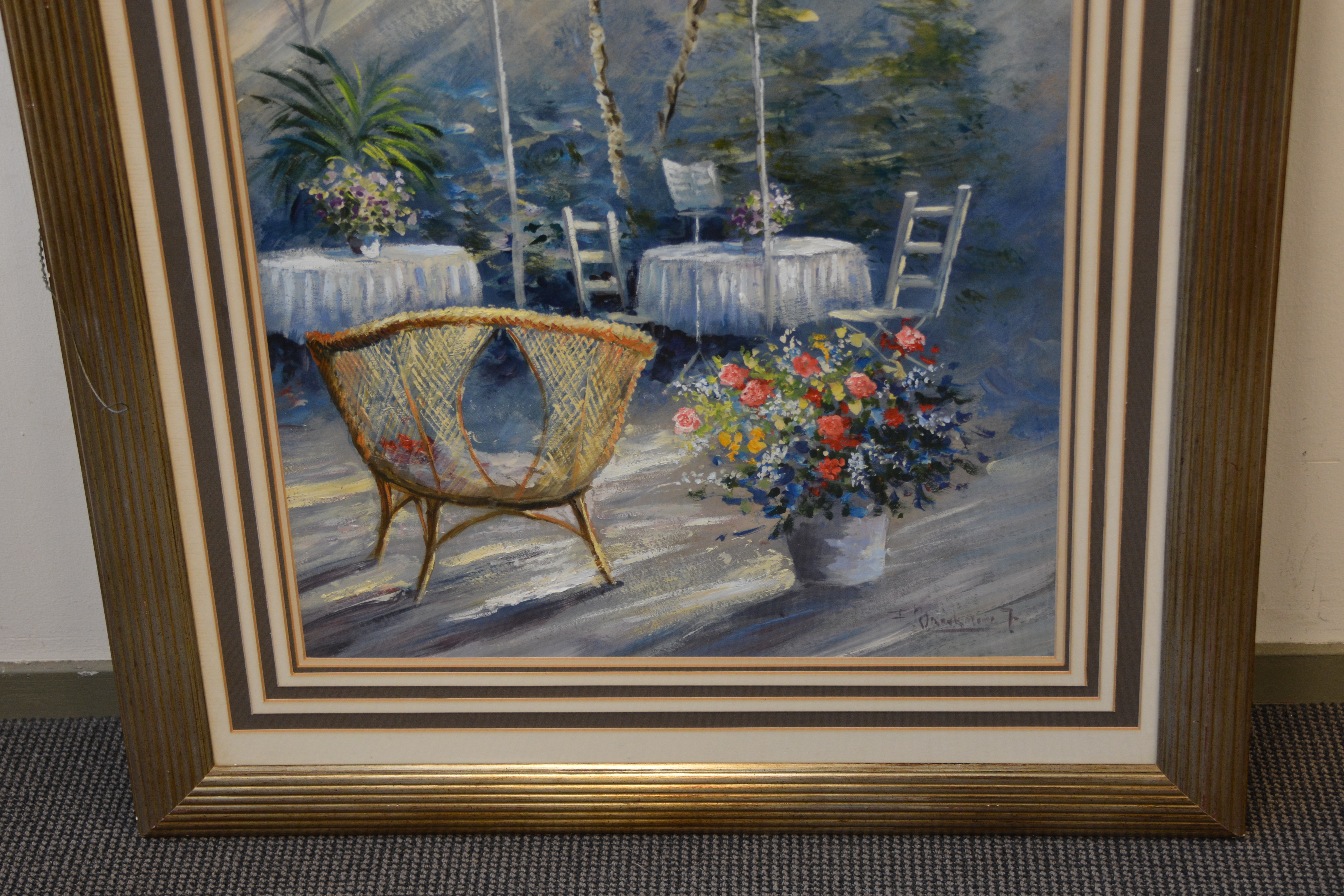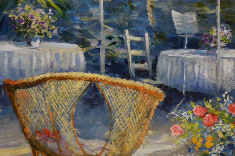 Schilderij met gemengde techniek: Tuinkamer/terras.