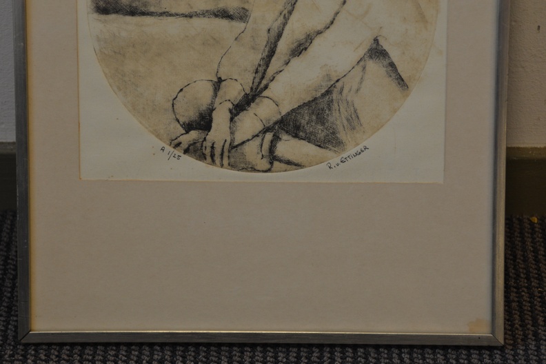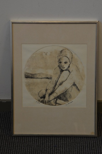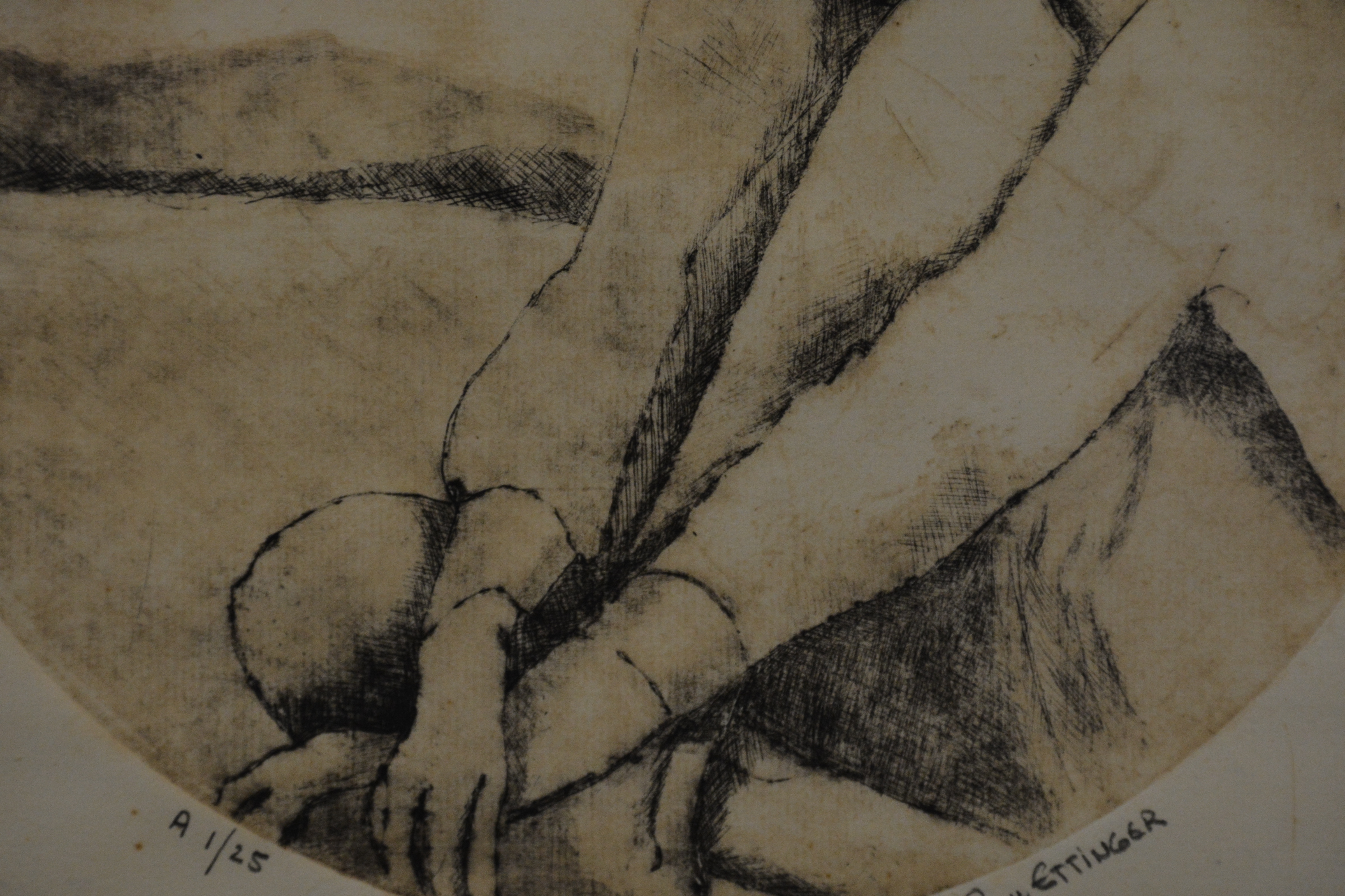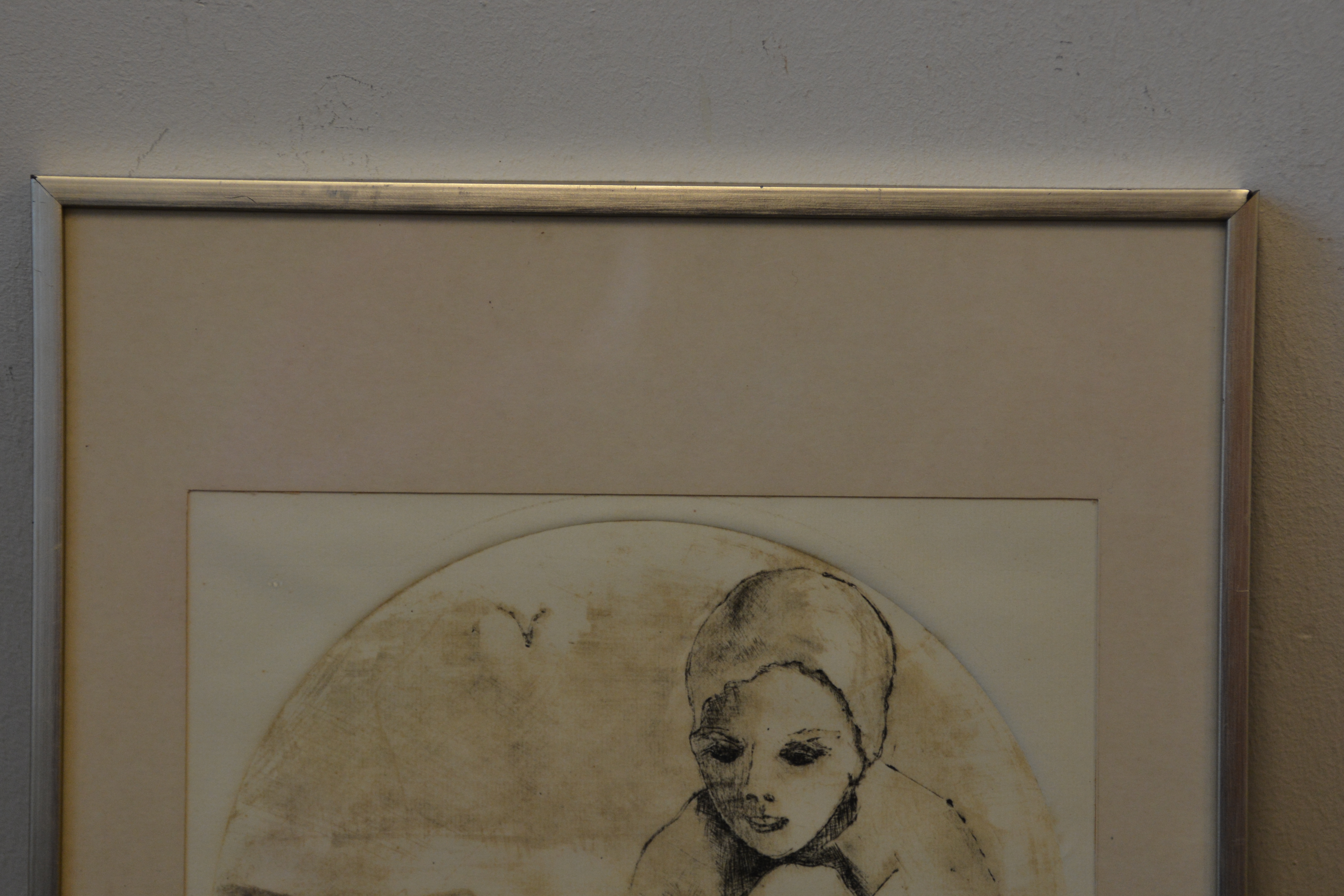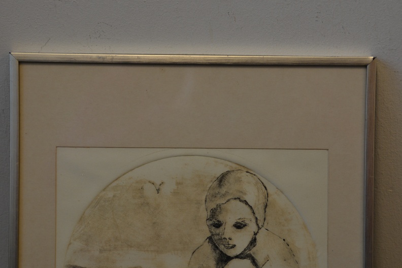 Ingelijste ets: Vrouw met badmuts, no. 1/25 stuks.