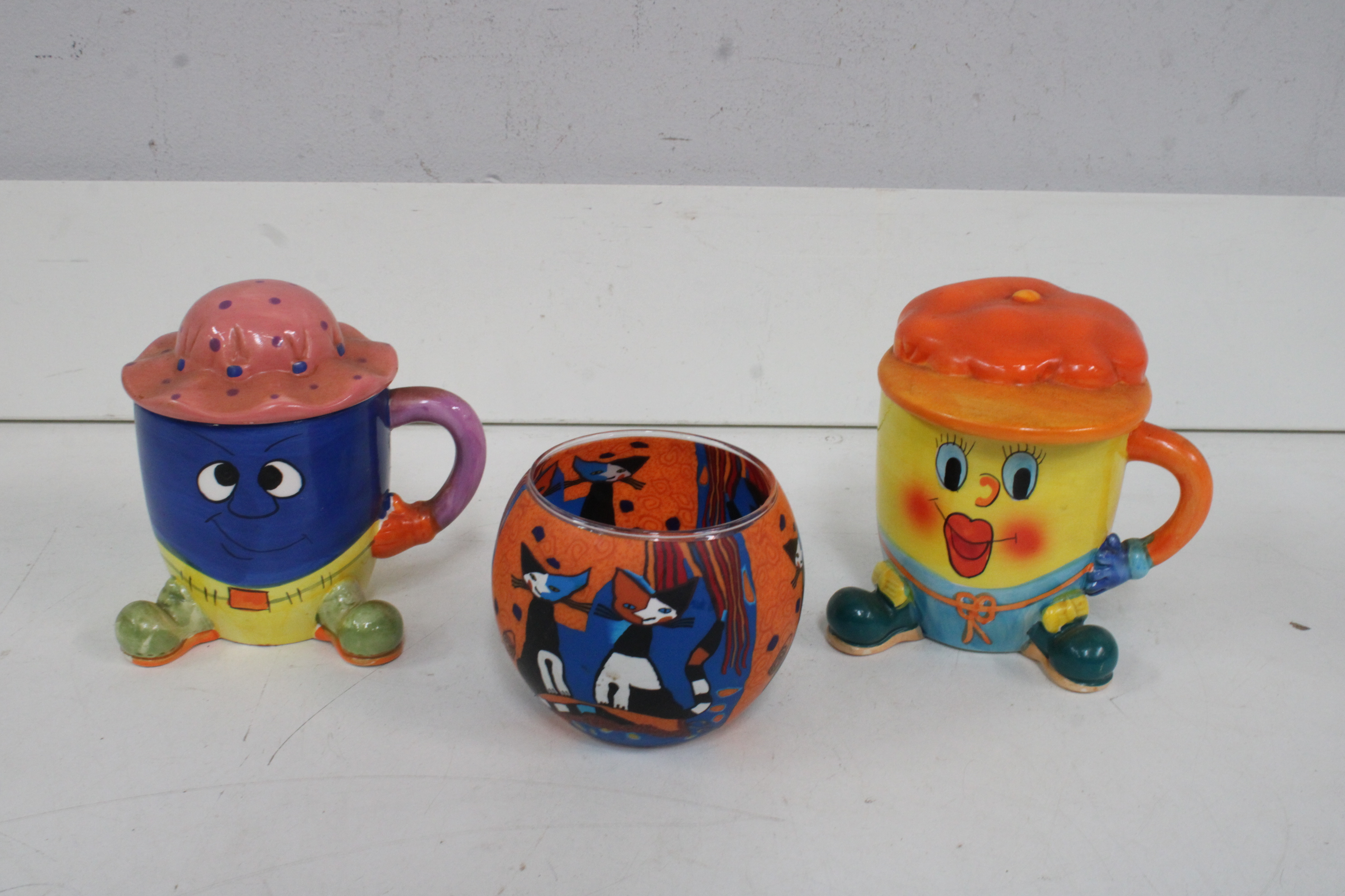 Set van 2 Kleurrijke Keramische Mokken met Theelichthouder'