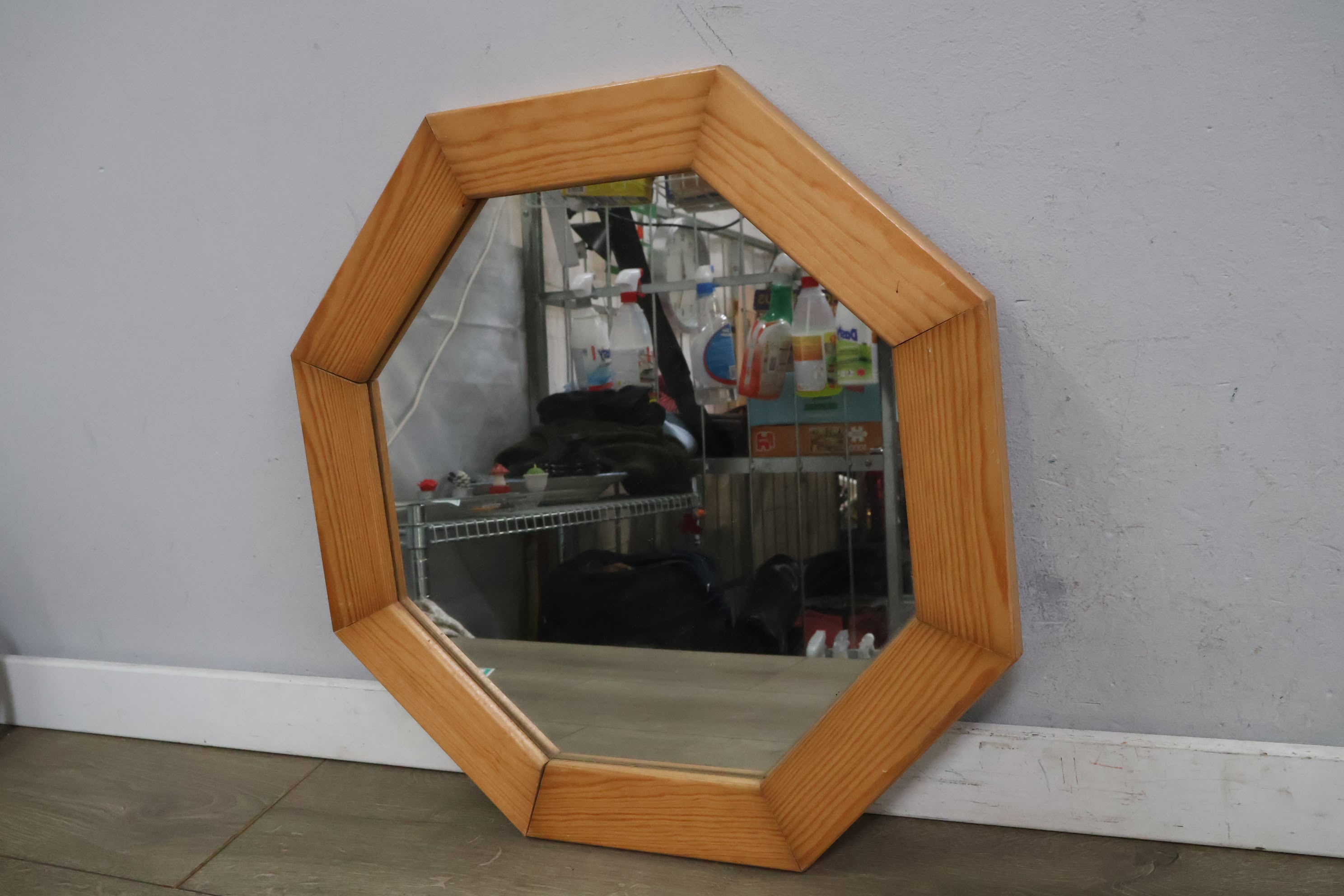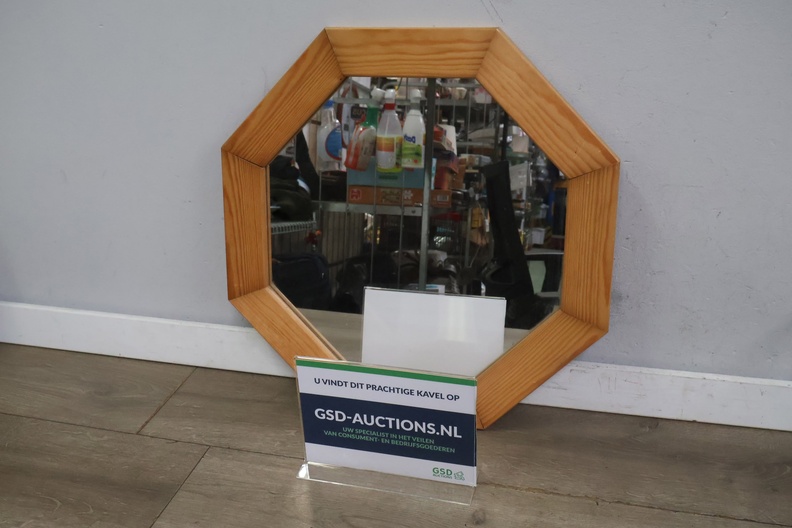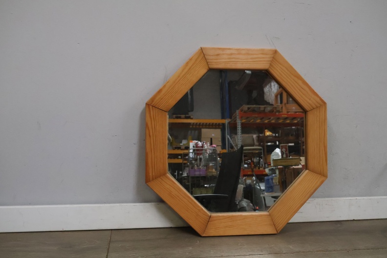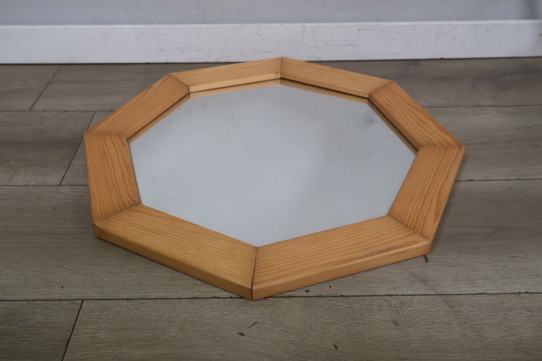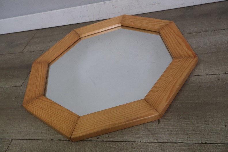 Vintage Hexagoon Wandspiegel in Houten Frame