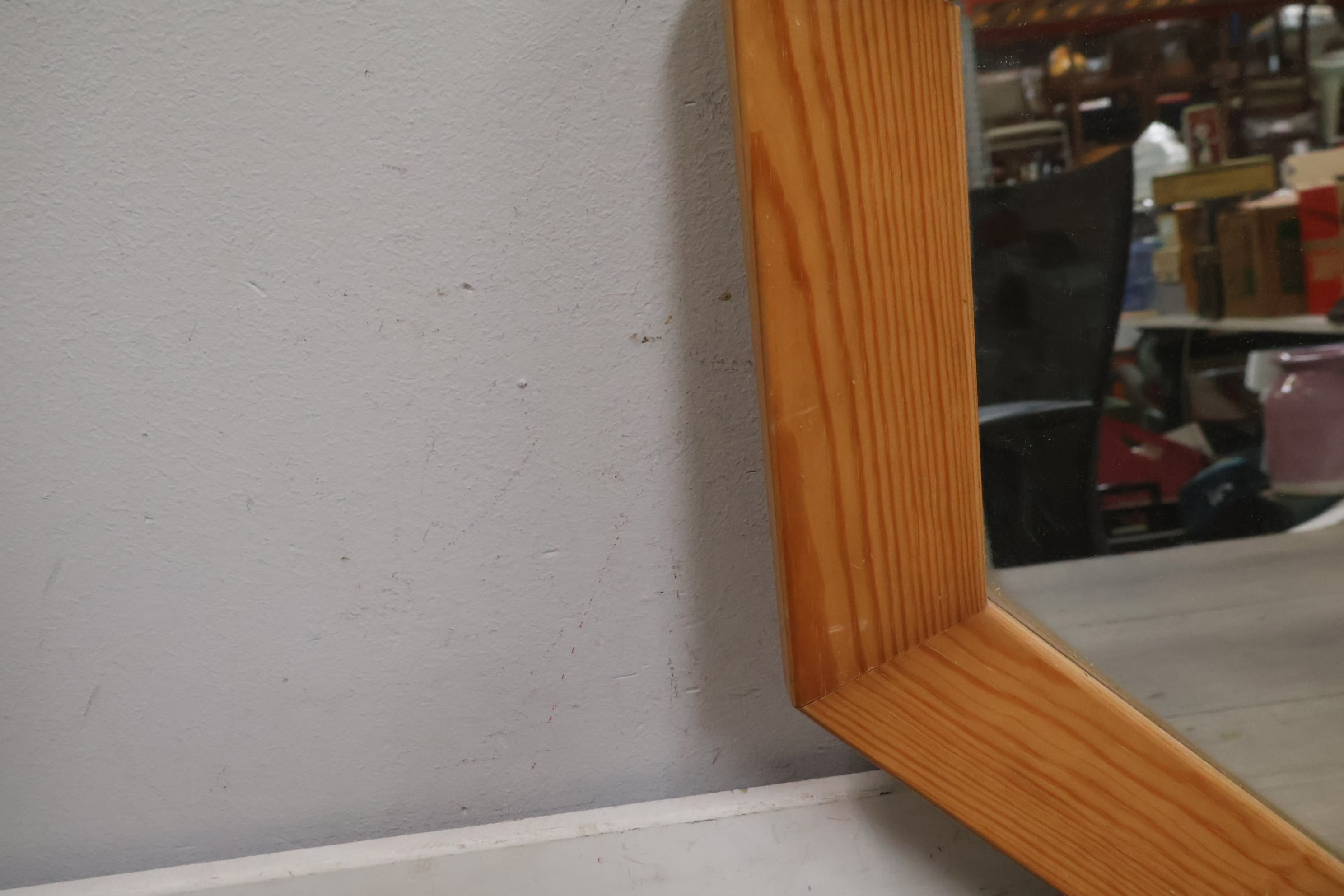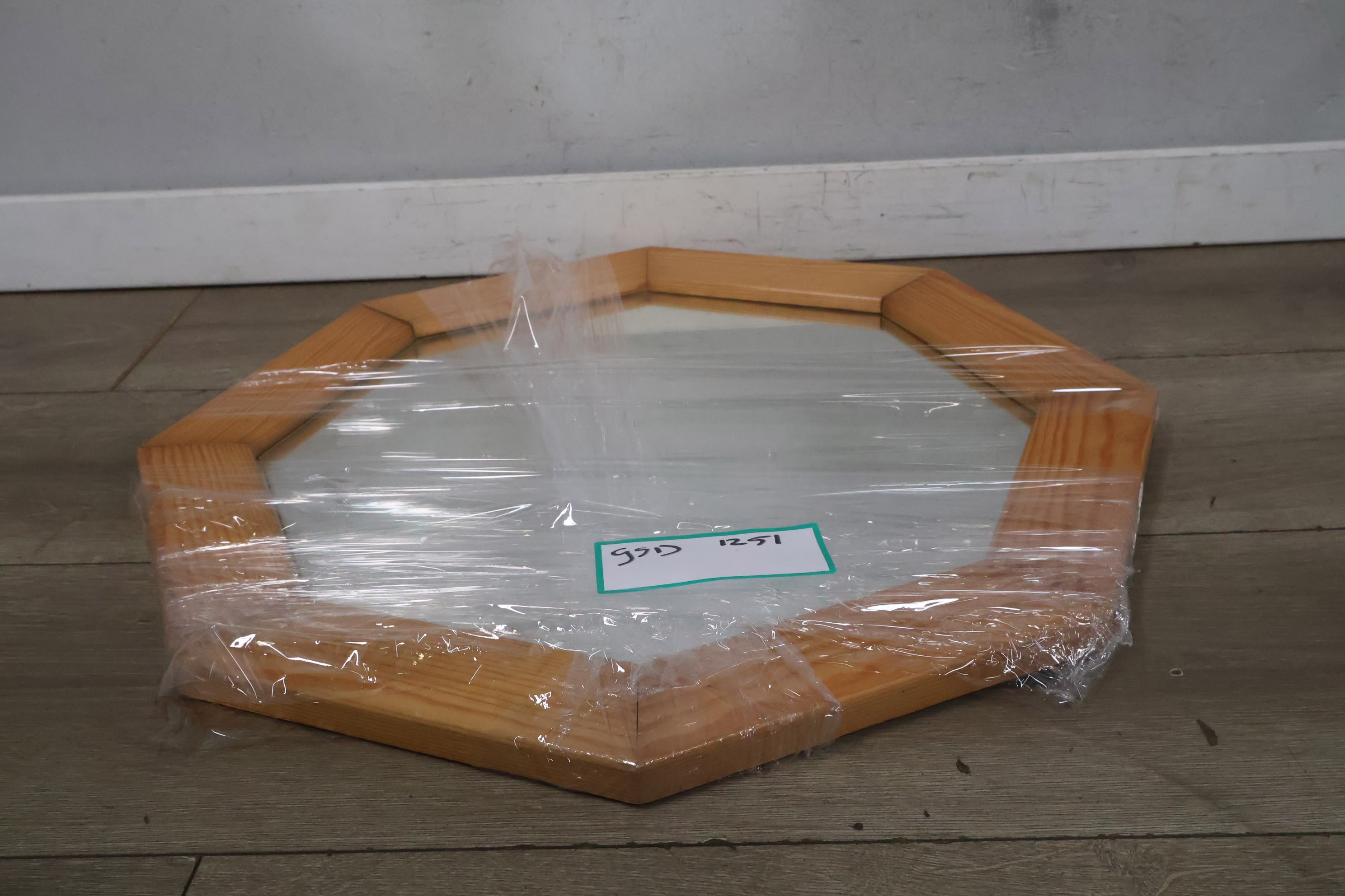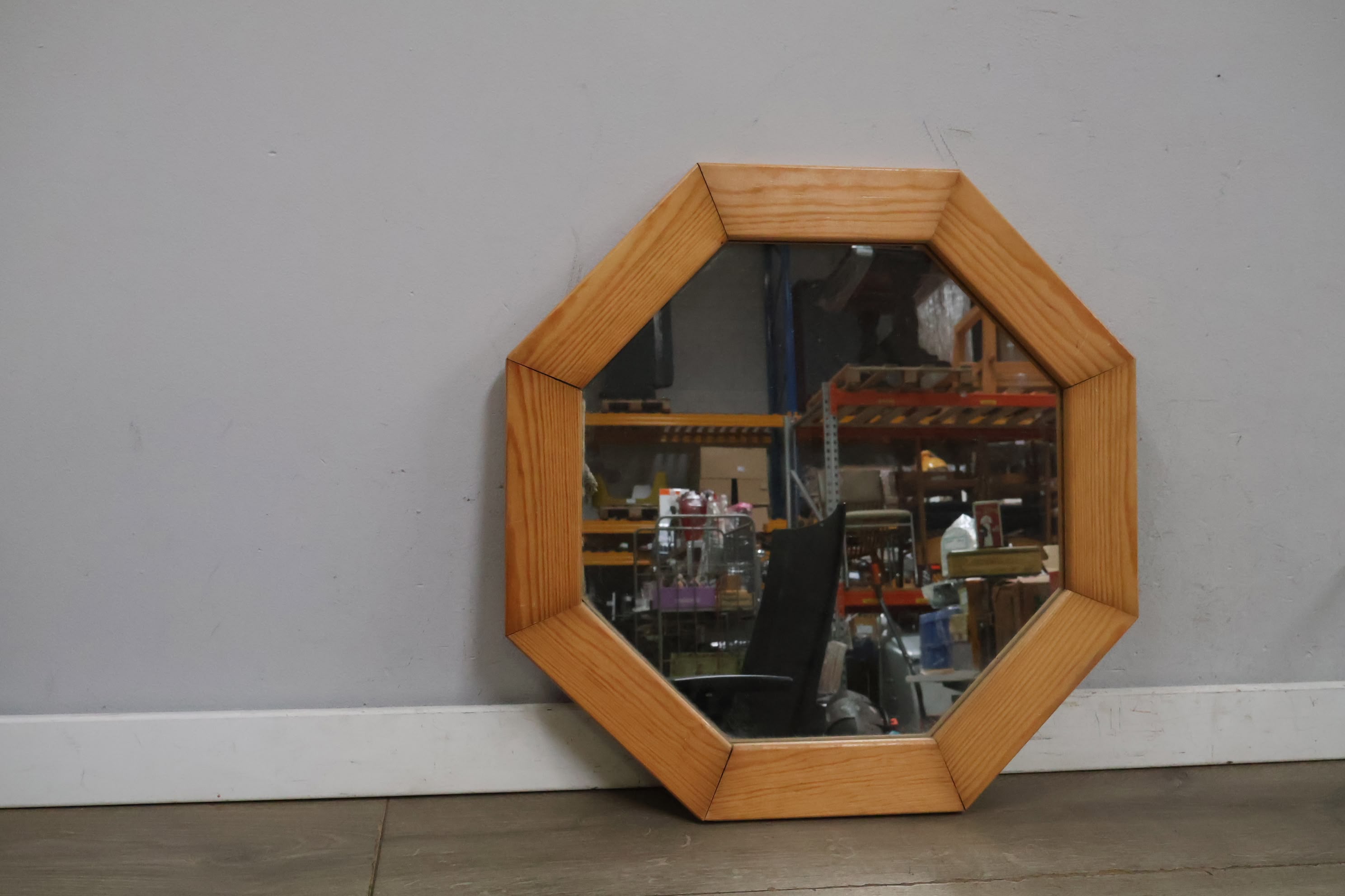 Vintage Hexagoon Wandspiegel in Houten Frame