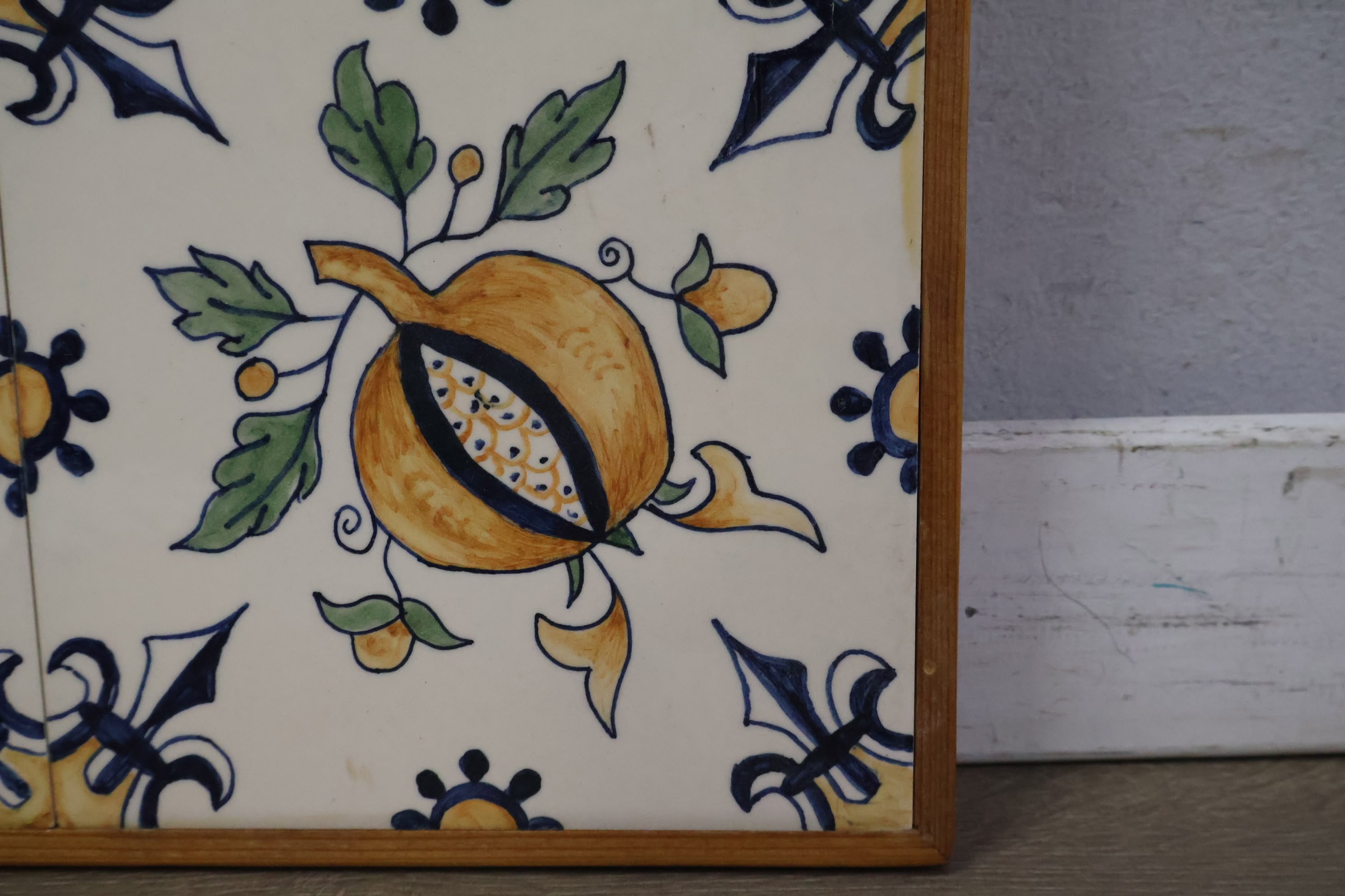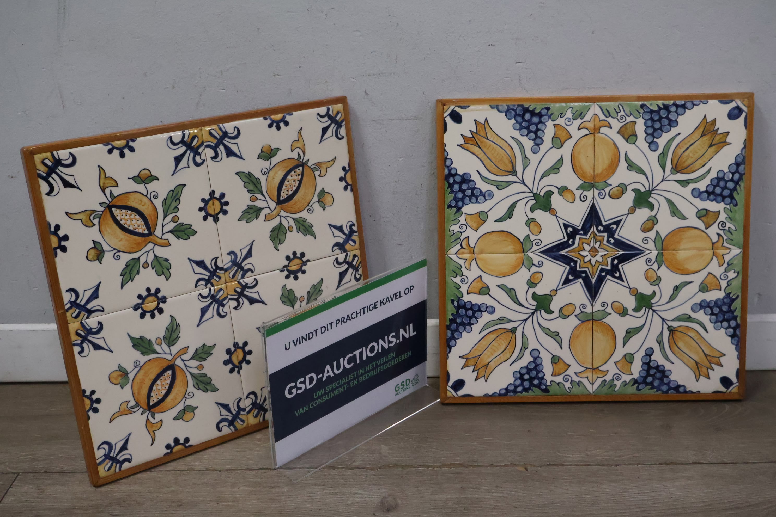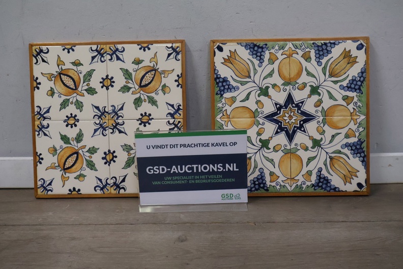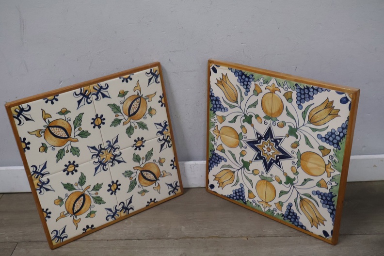 Vintage Ingelijste Delfts Polychroom Wandtegels