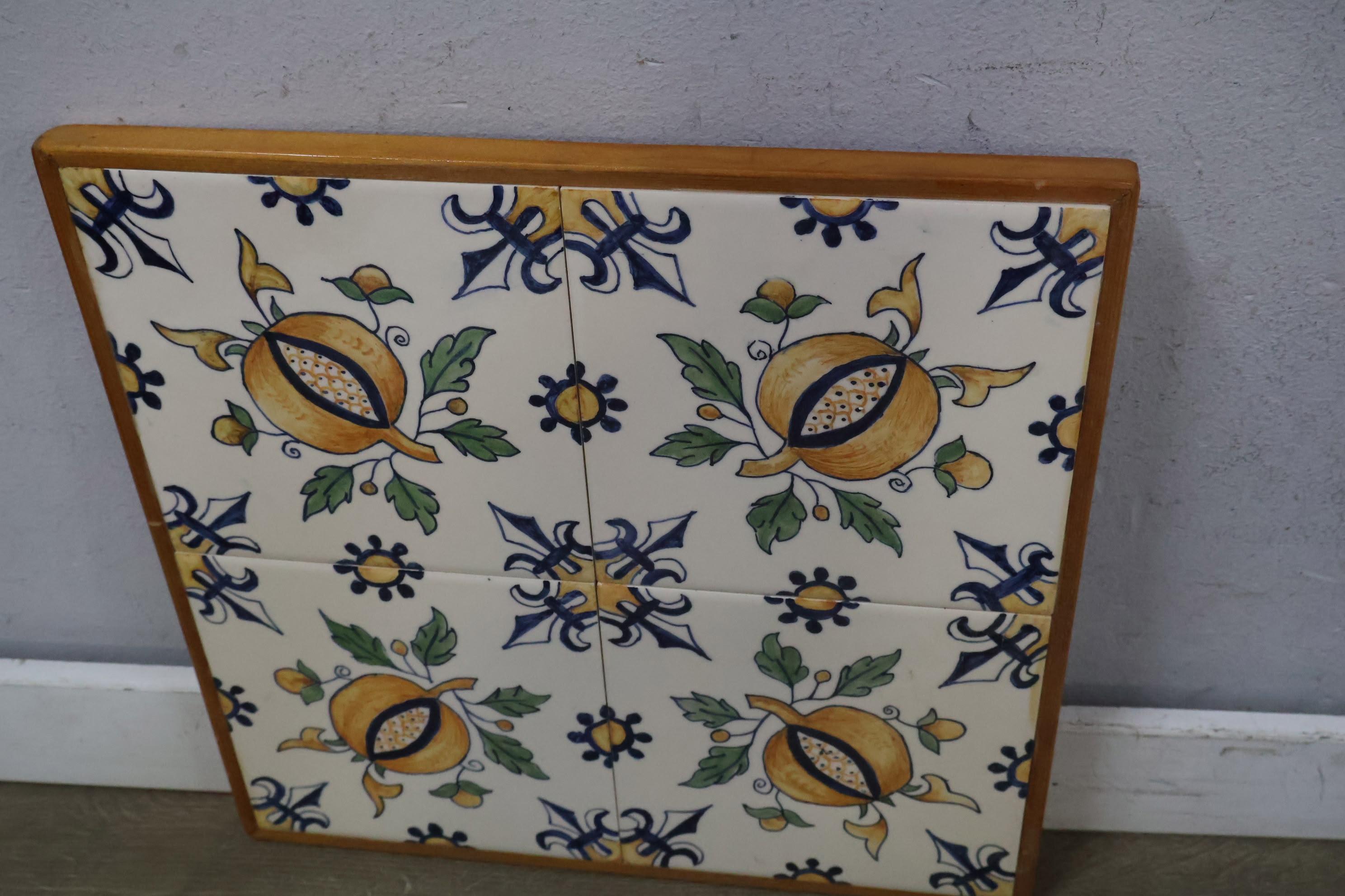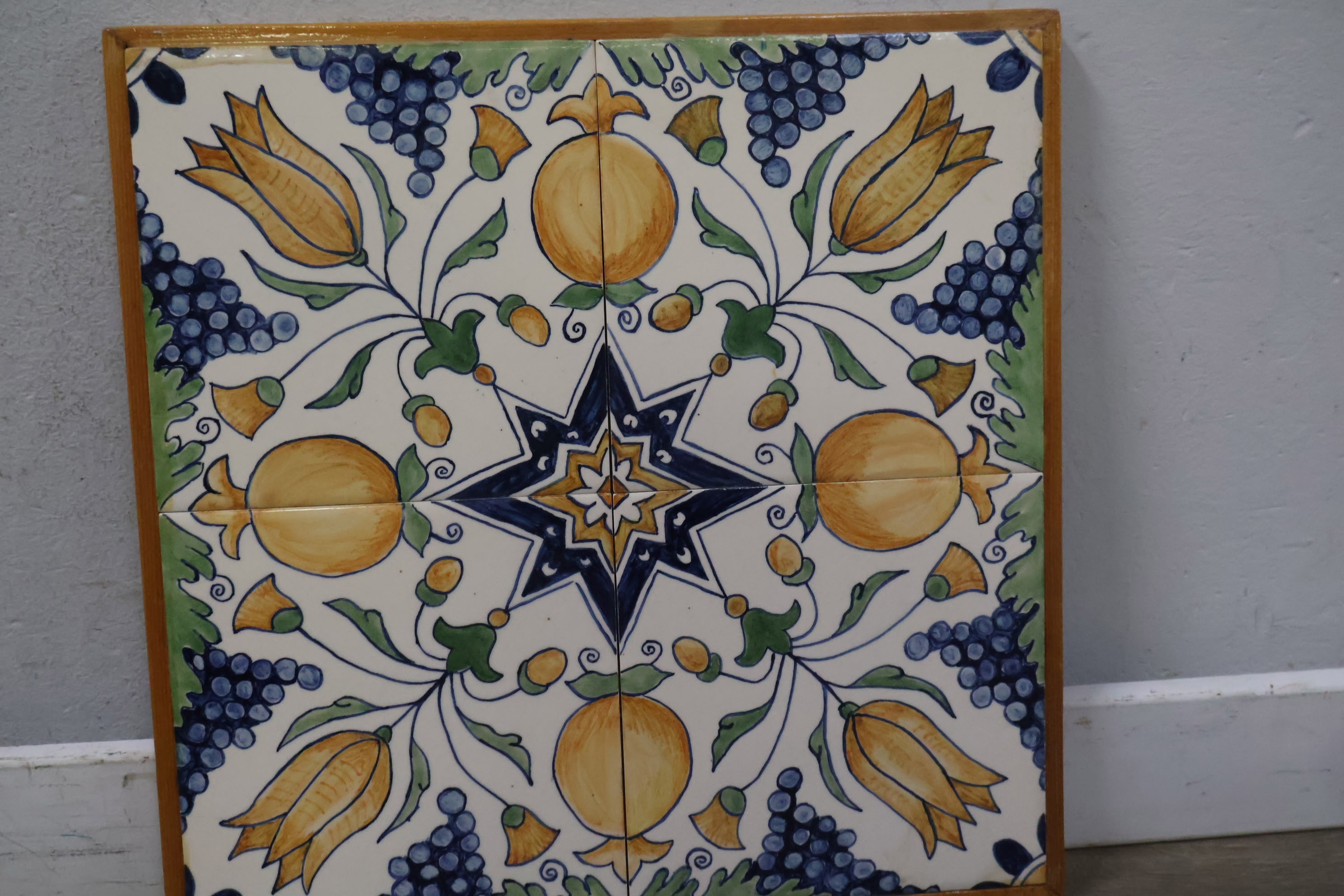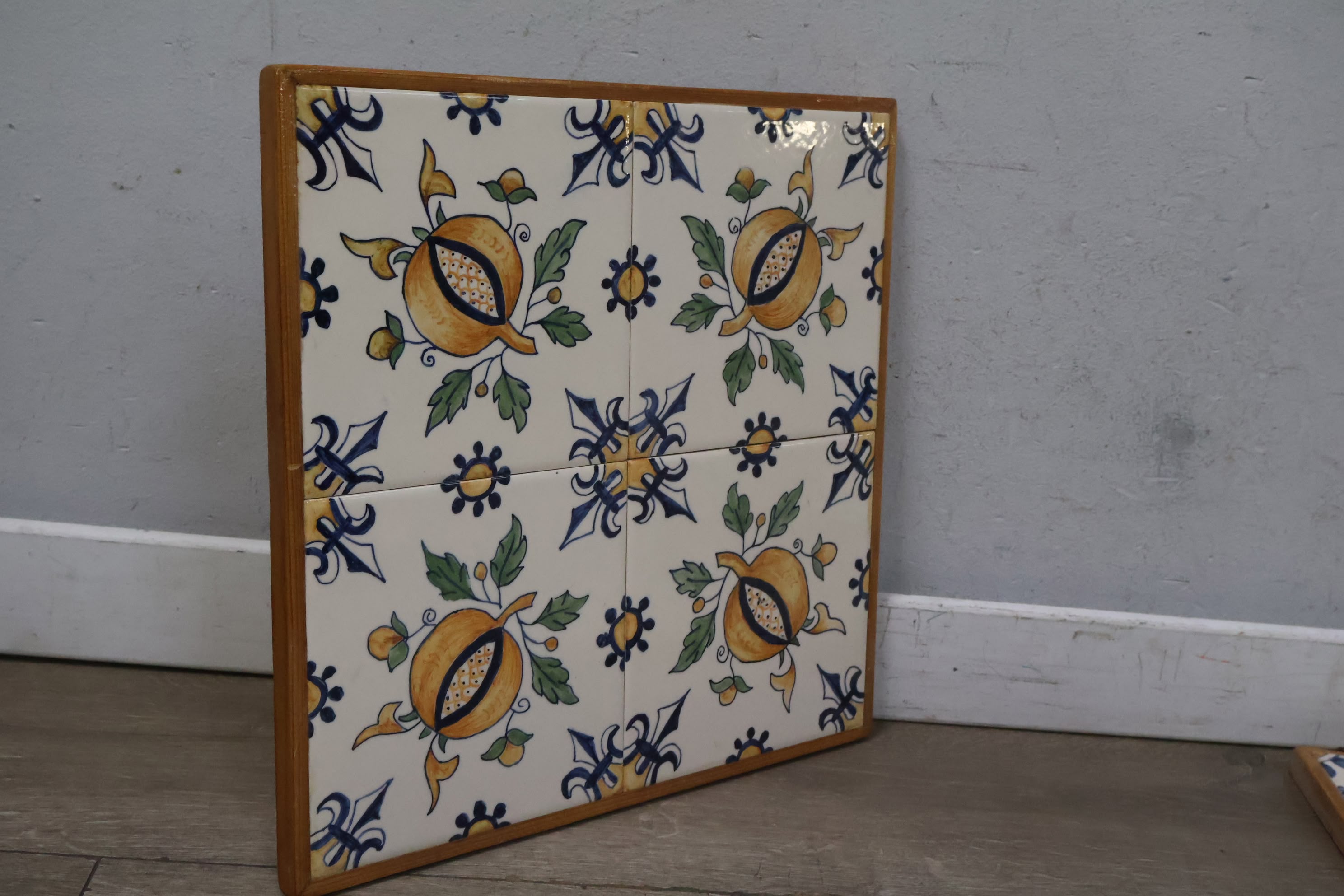 Vintage Ingelijste Delfts Polychroom Wandtegels