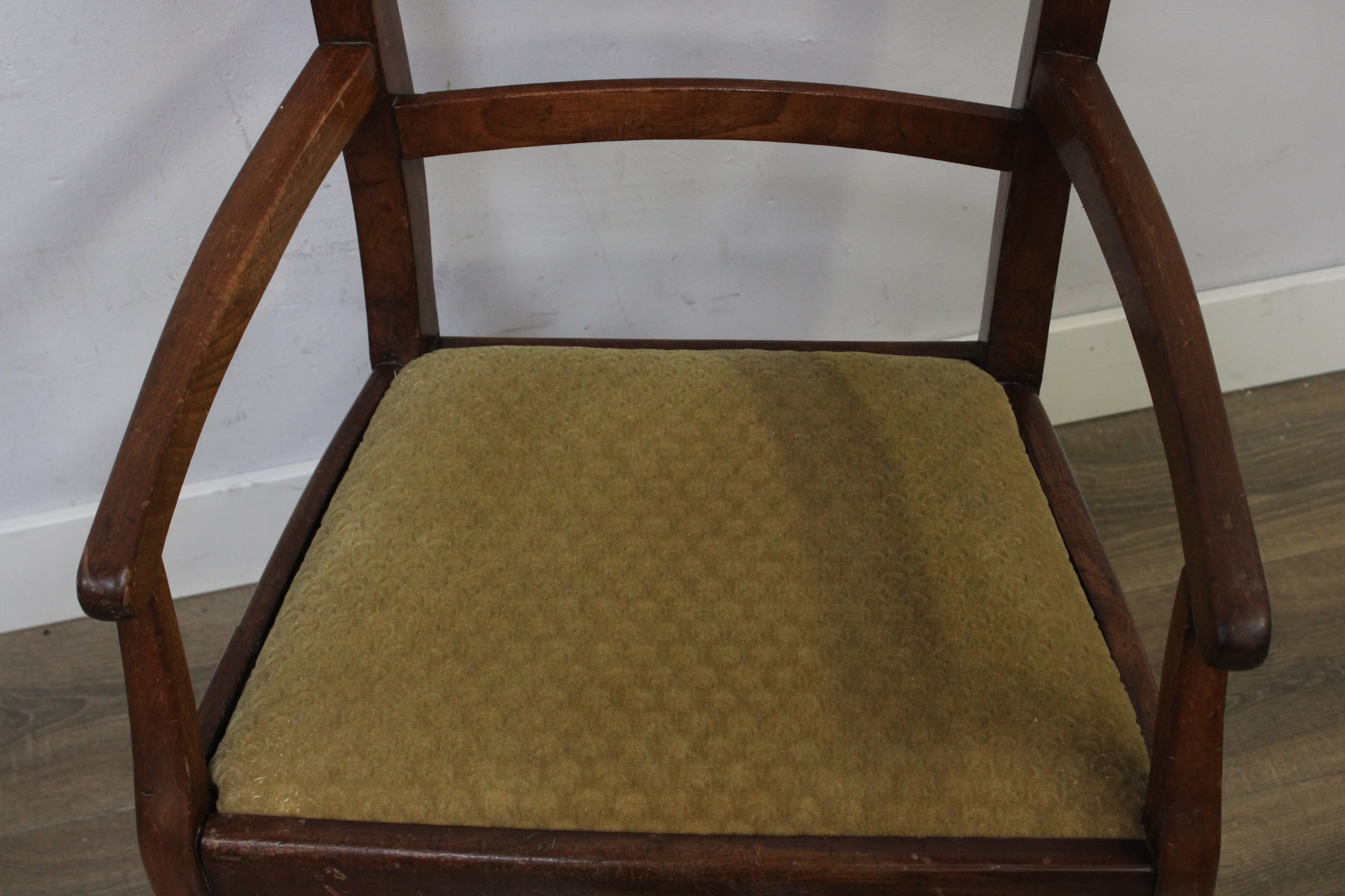 Art-Deco Houten Stoel met Groene Zitting