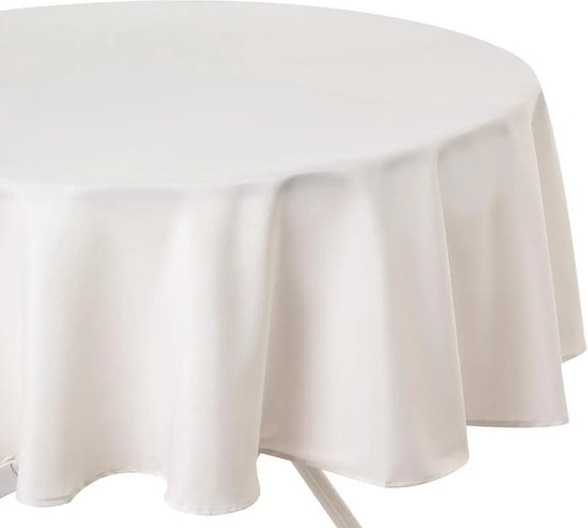 Tafelkleed rond in een mooie kleur ivoor wit. Het tafelkleed is vlekbestendig en dient afgenomen te worden met een vochtige doek. Formaat in diameter: 180 cm. Materiaal: Polyester. Aangeraden wordt dit tafellaken met de hand te wassen.
