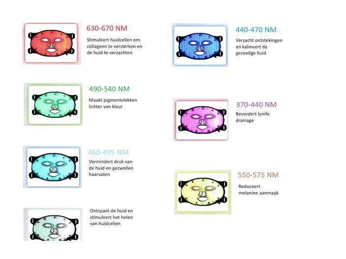 Dit masker bevat 7 soorten licht, welke zorgen voor verschillende energie. De samenwerking op verschillende niveaus bevordert de perfecte integratie van de huid- en energiemoleculen, openen de onderste laag van de huid en zorgt uiteindelijk voor een stralende en gezonde huid!