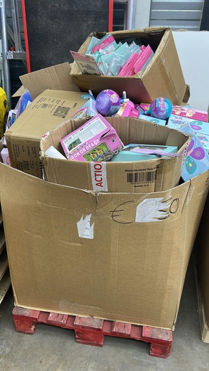 Het betreft een mysteriepallet van ca. 120 x 80 x 110 cm.