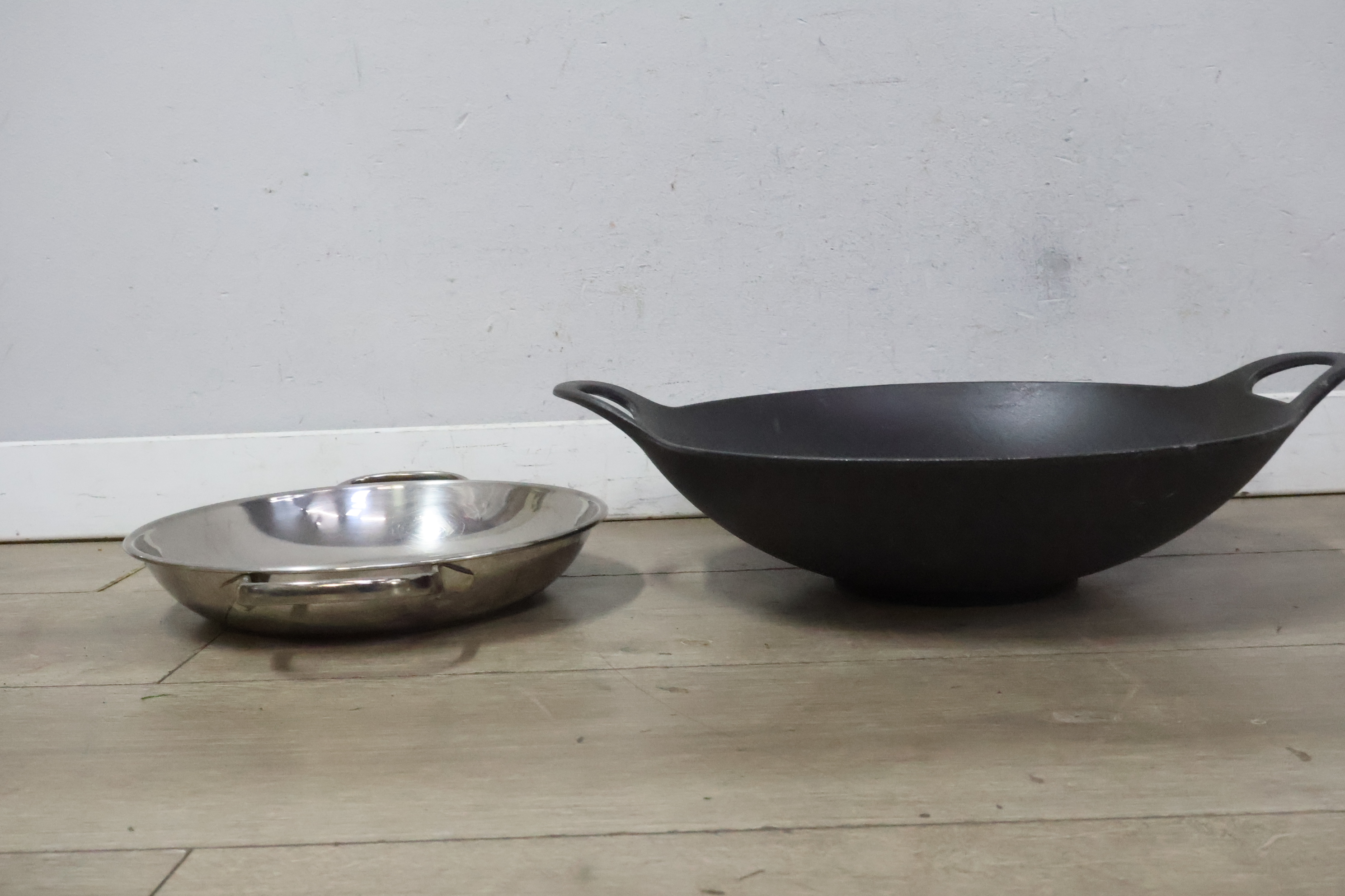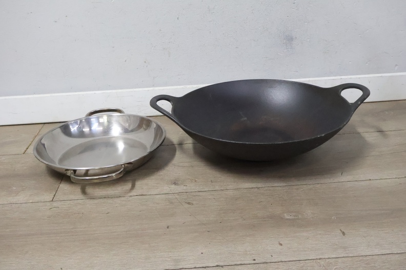 Gietijzeren wokpan en RVS Pan