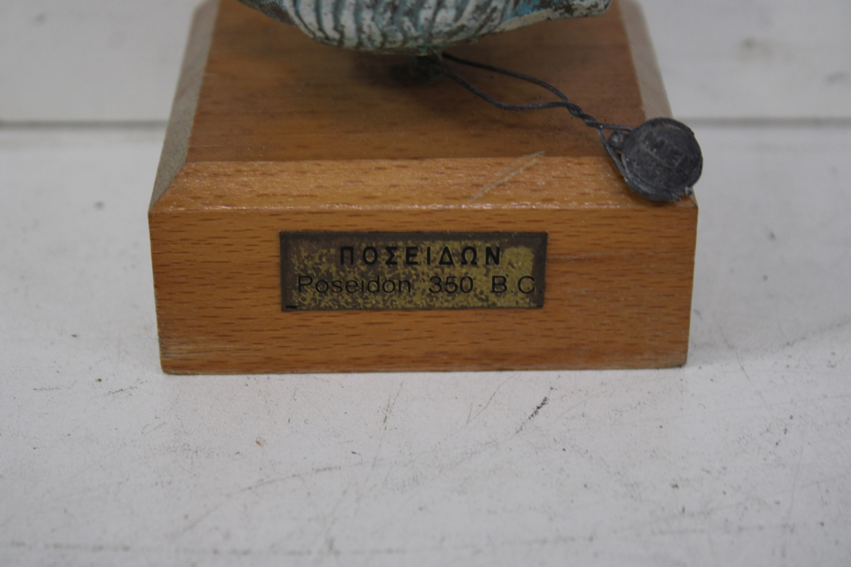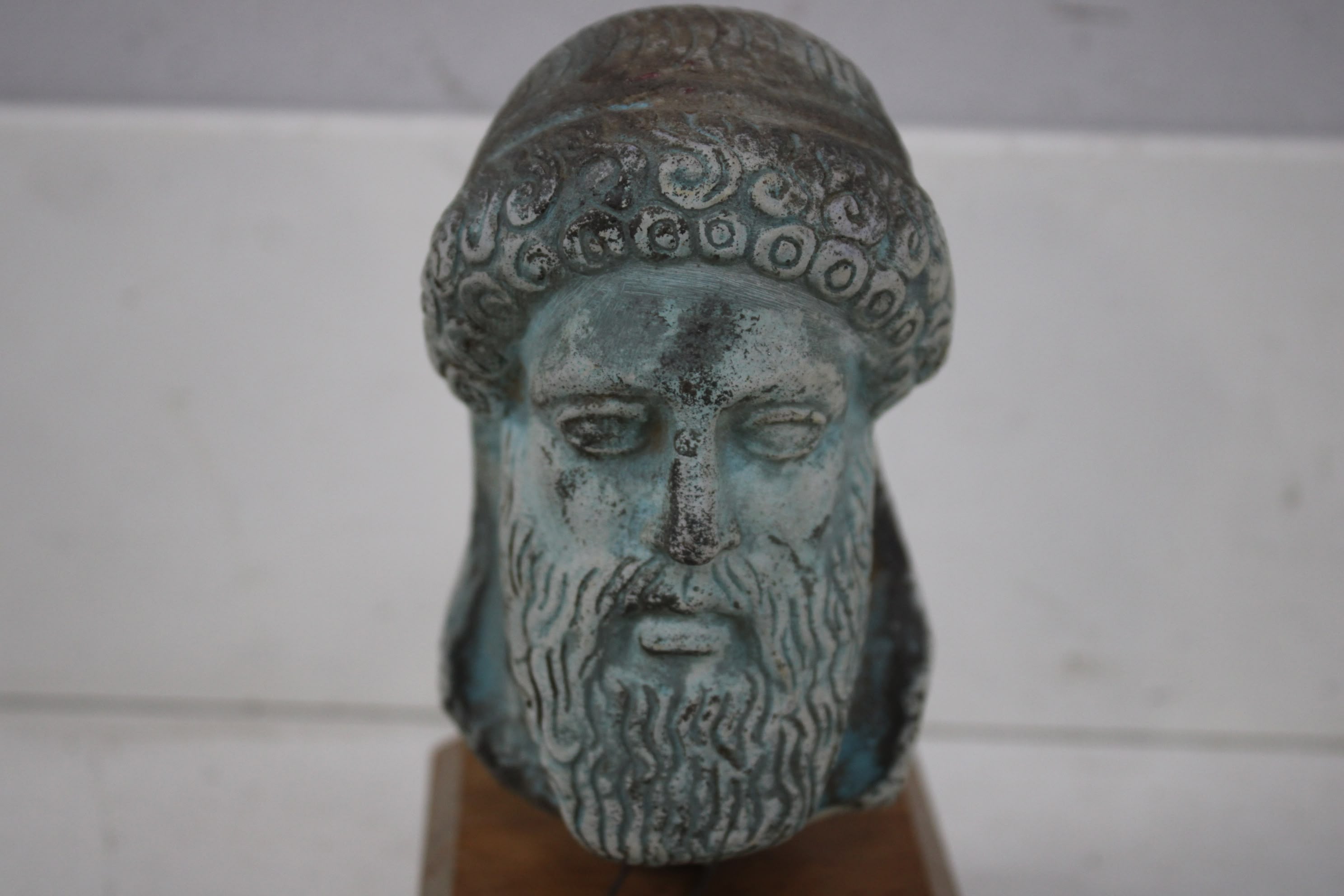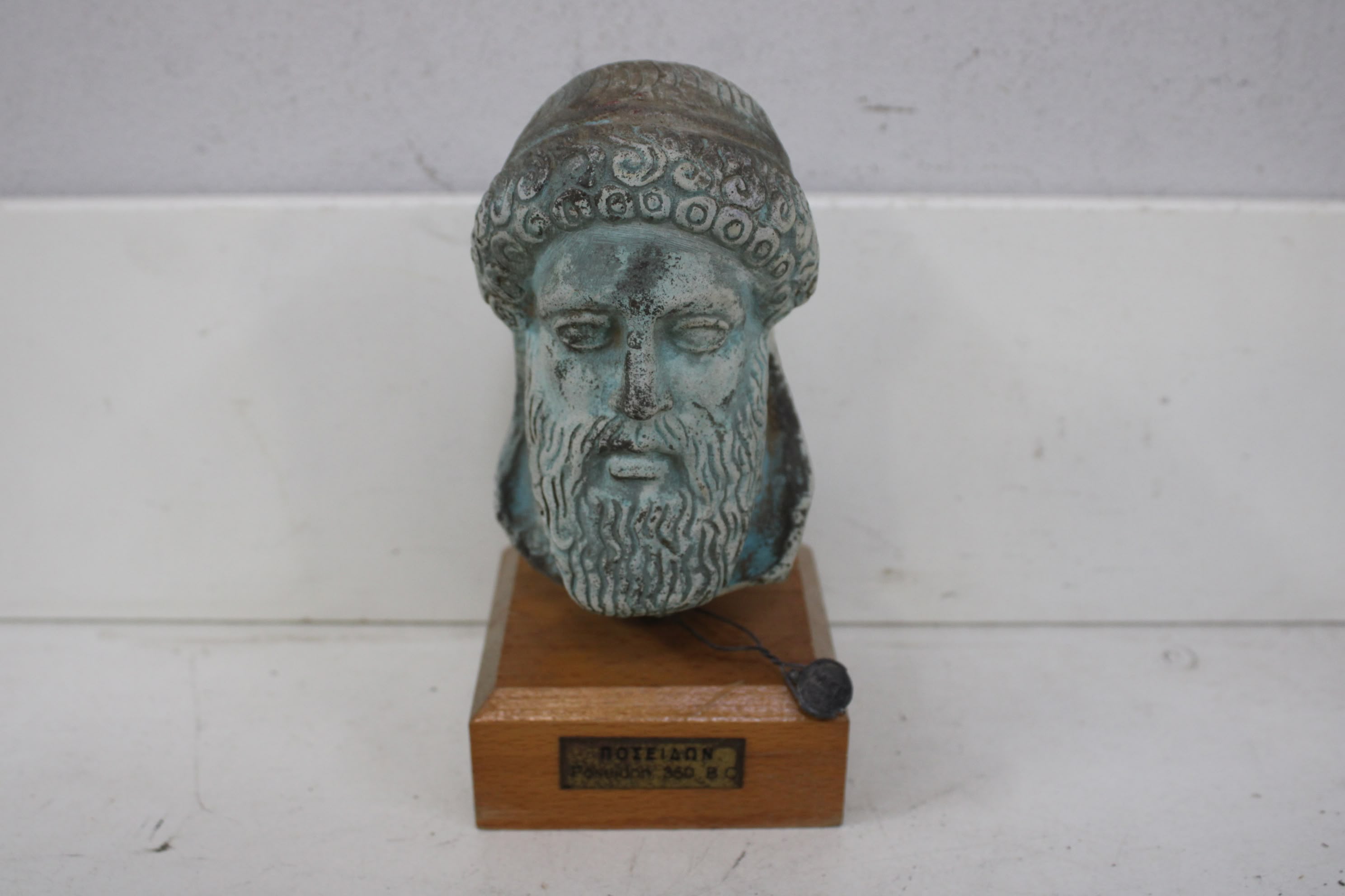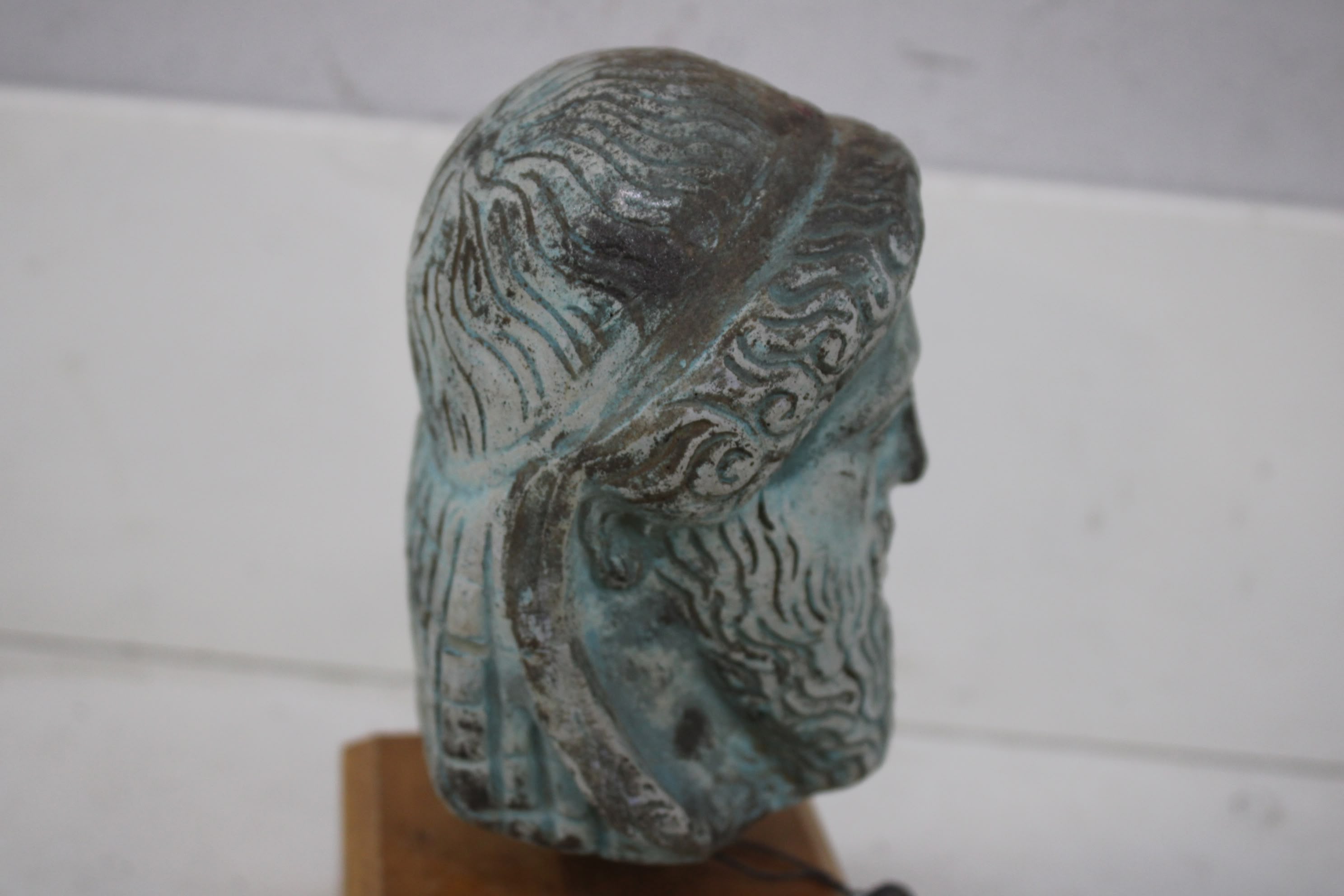 Vintage Poseidon Buste op Houten Sokkel