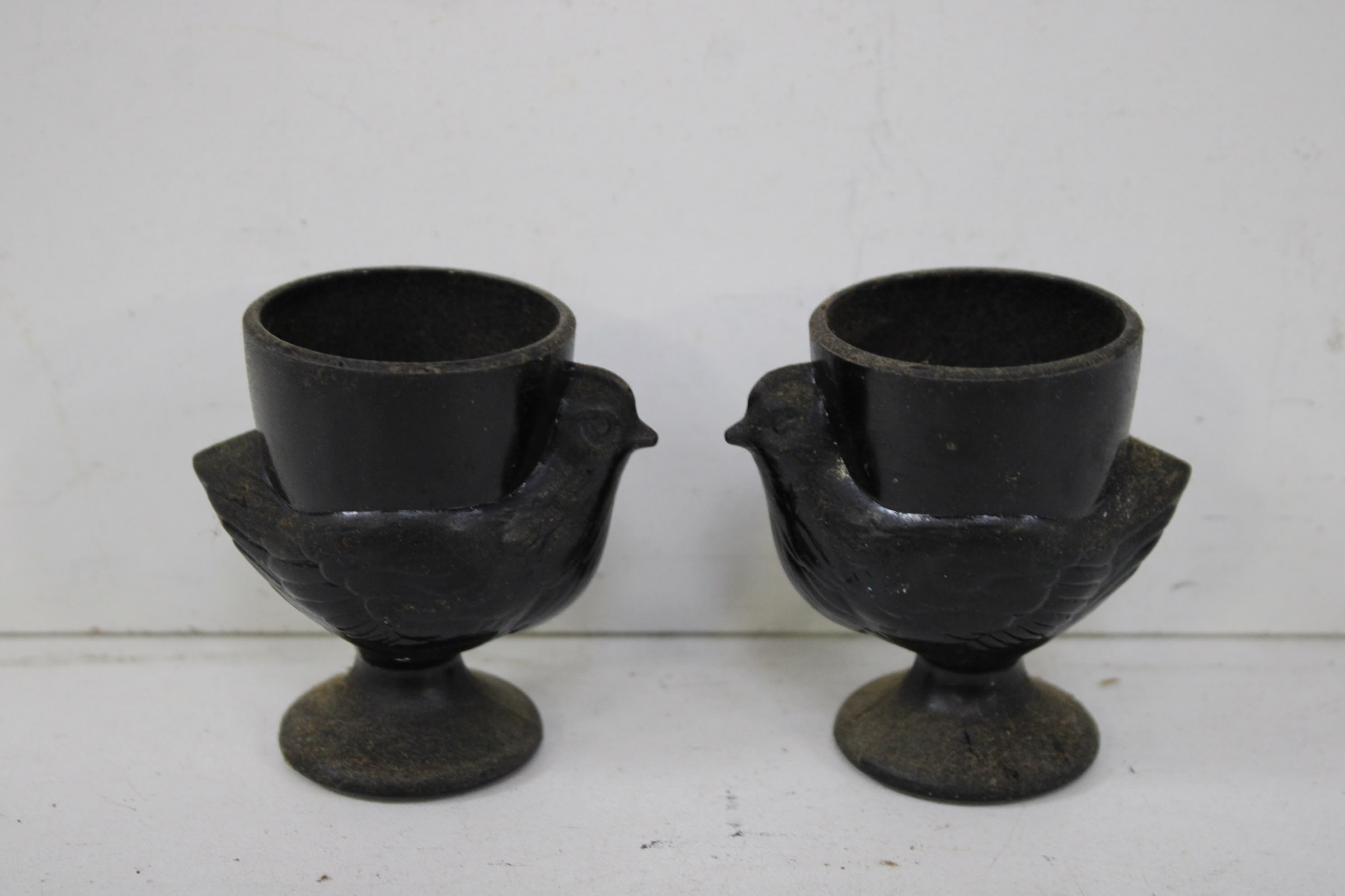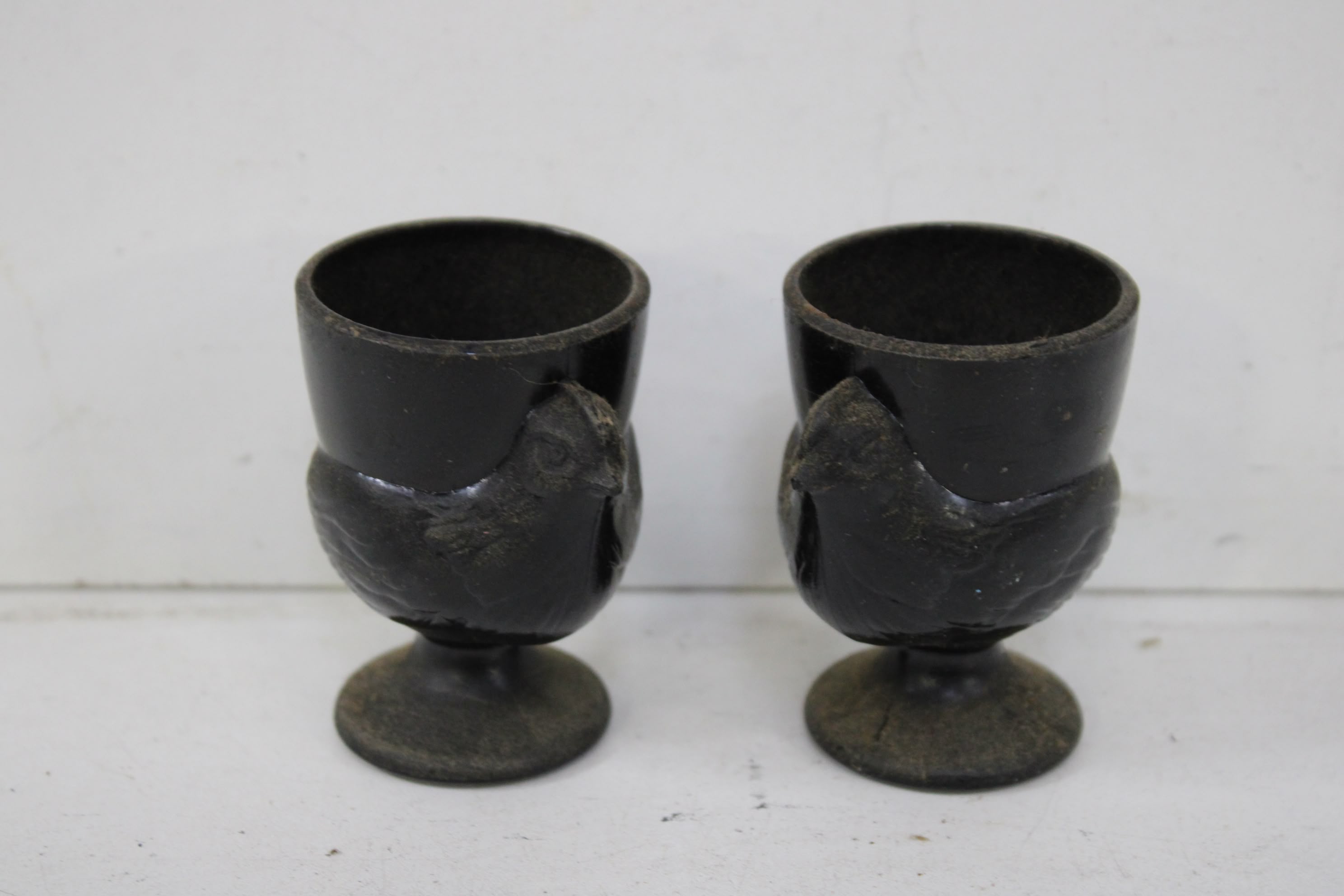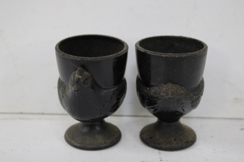 Set van 2 Vintage Zwarte Kip-Eierdoppen