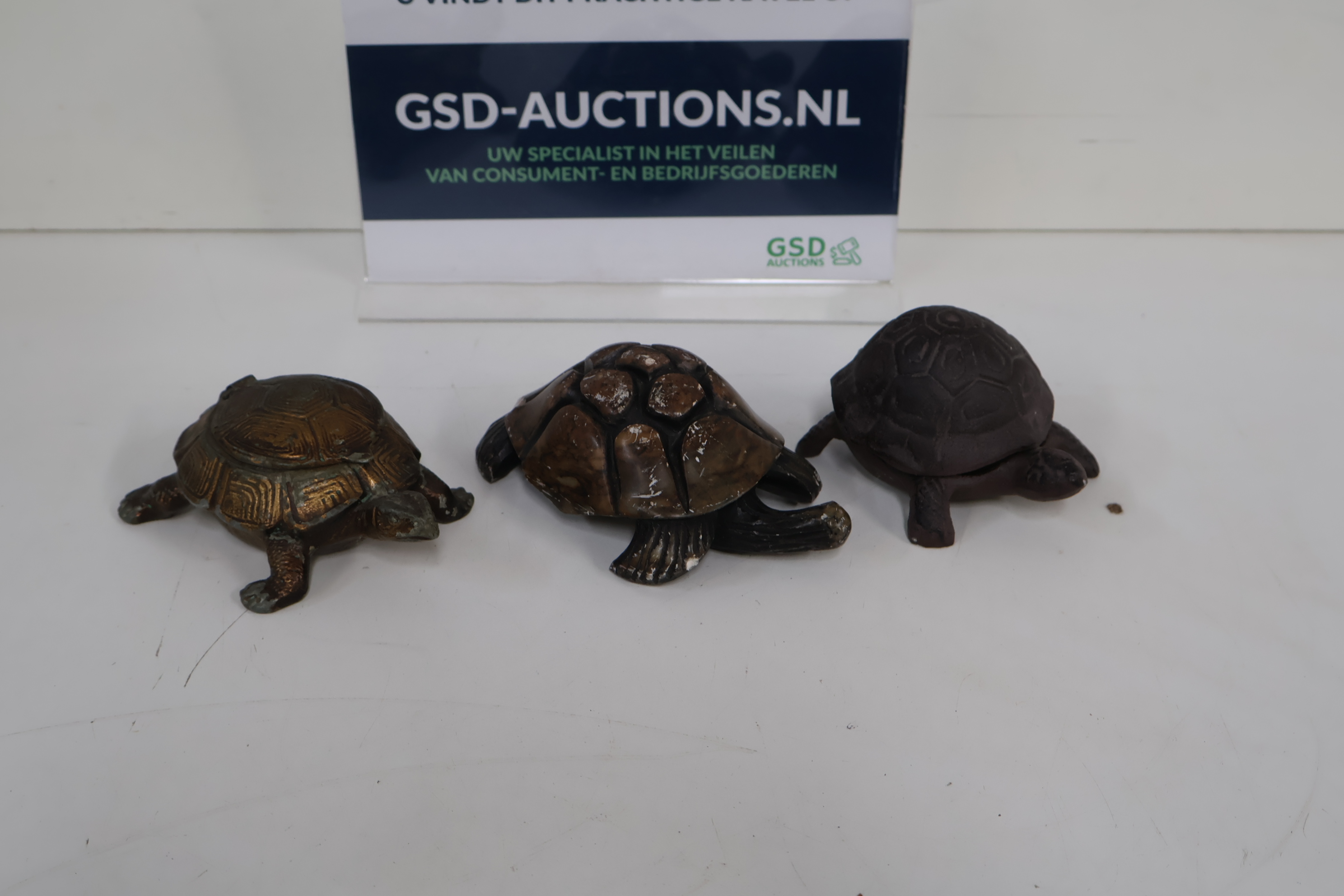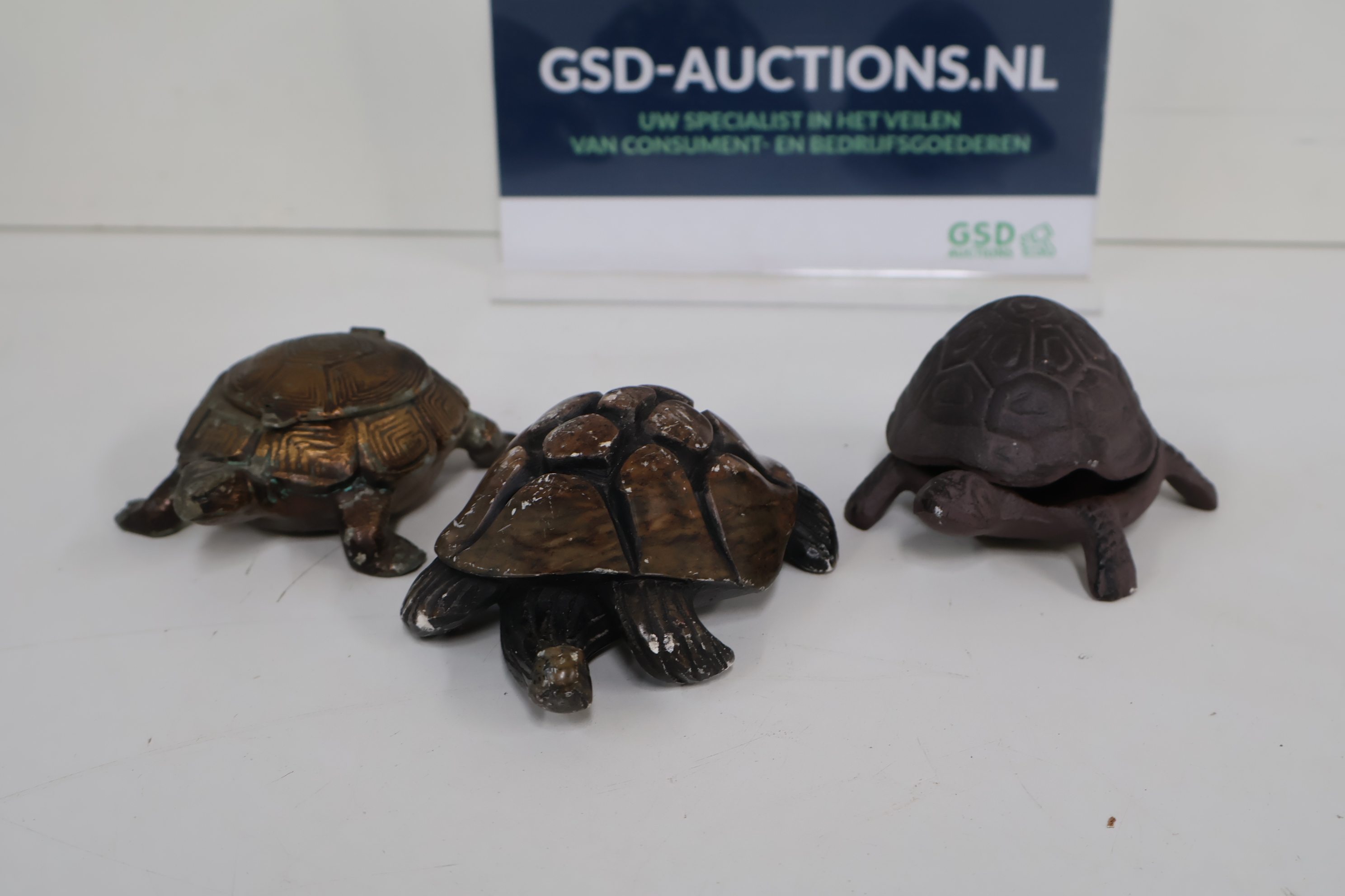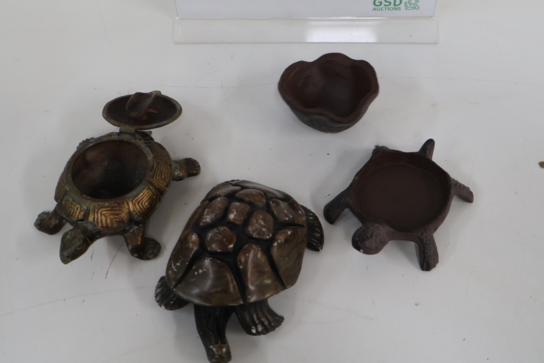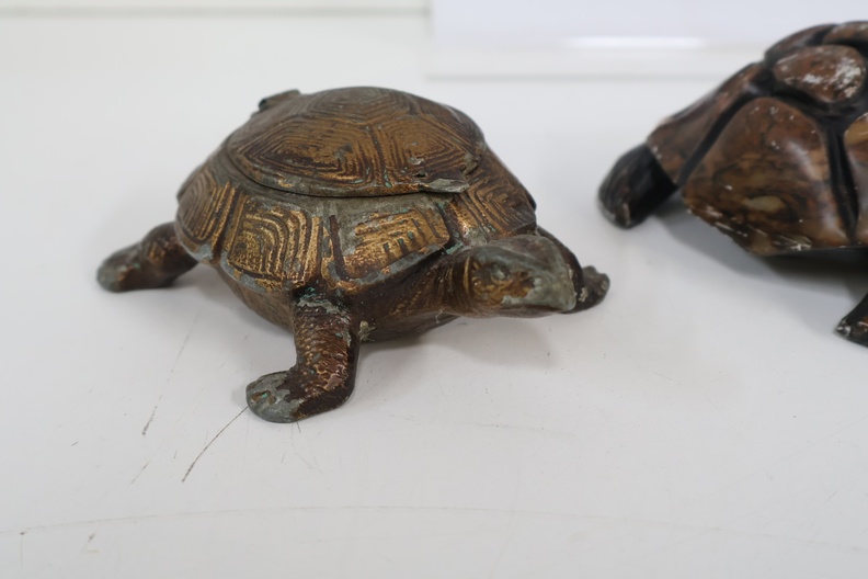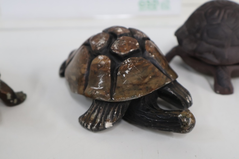 3 Decoratieve Schildpadden - Gietijzer, Steen, Messing